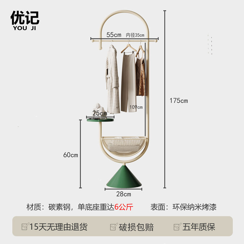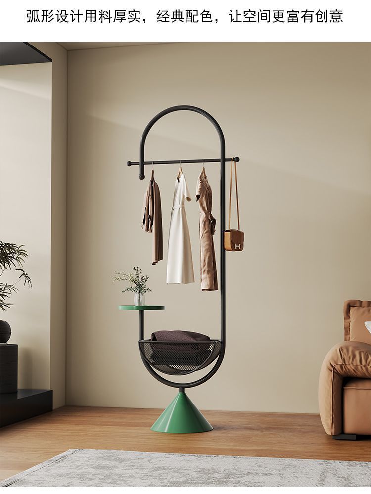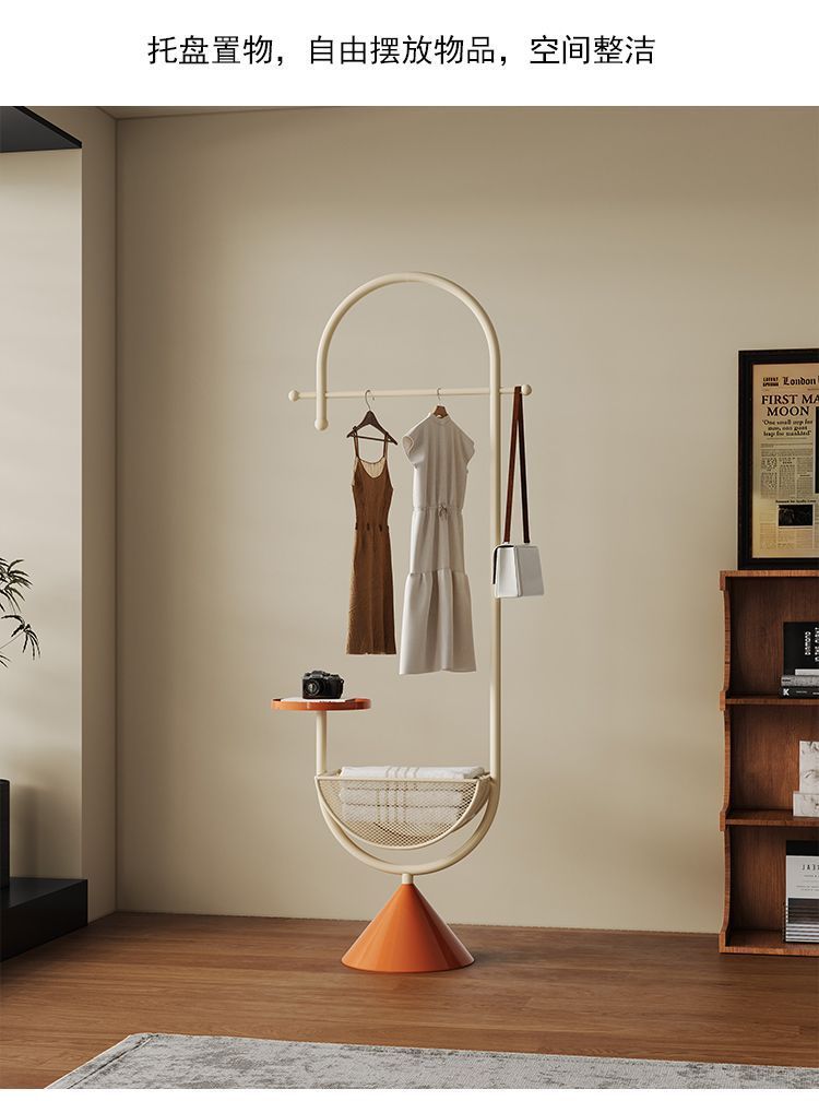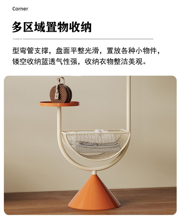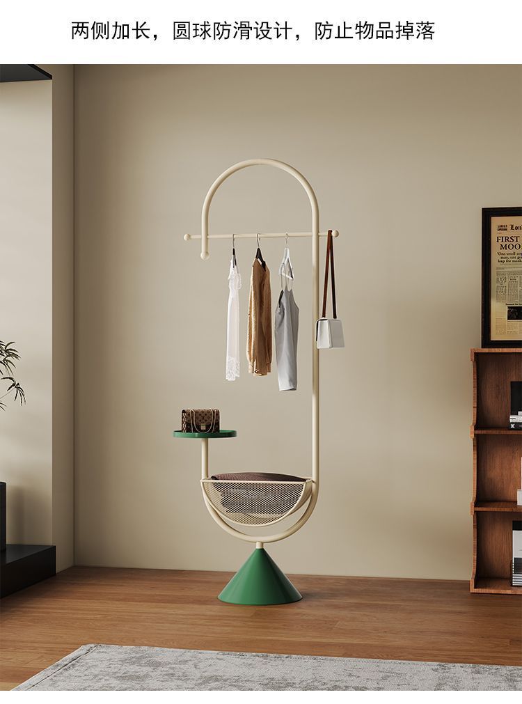 더러운 옷 바구니가 있는 철제 침대 옆 옷걸이, 현관 바닥 옷걸이, 가방 걸이, 거실 크림 스타일 코트 랙스토어 가기