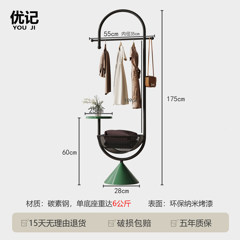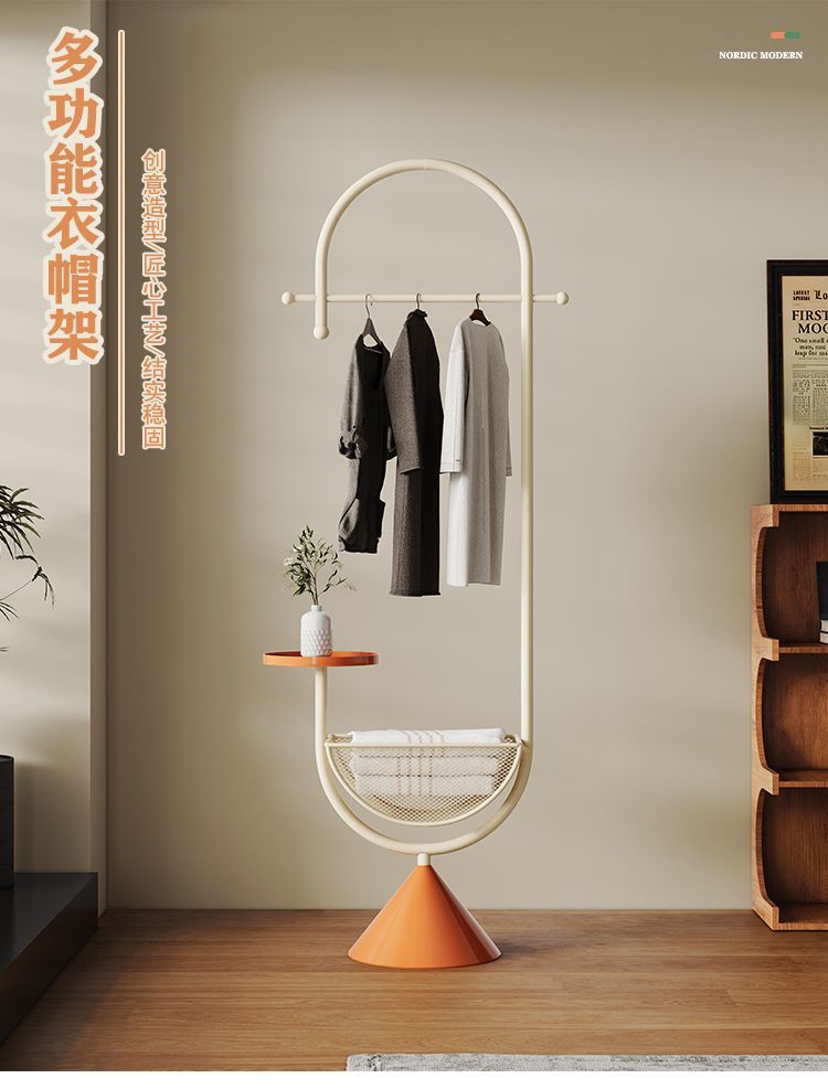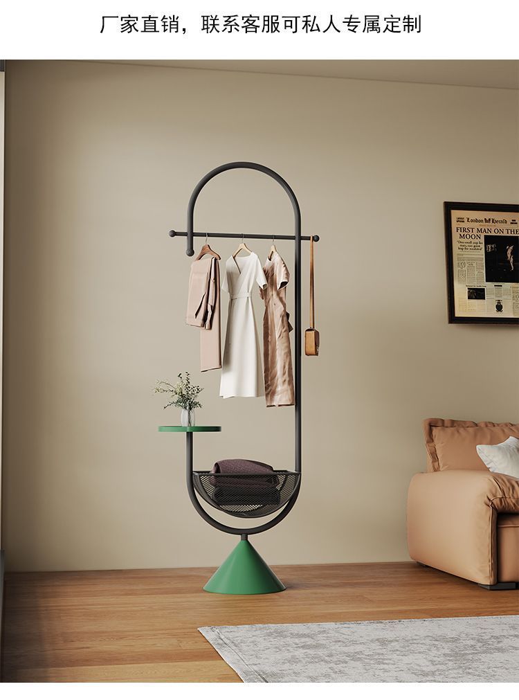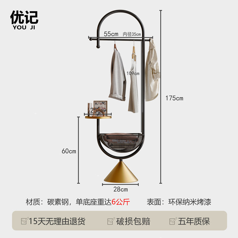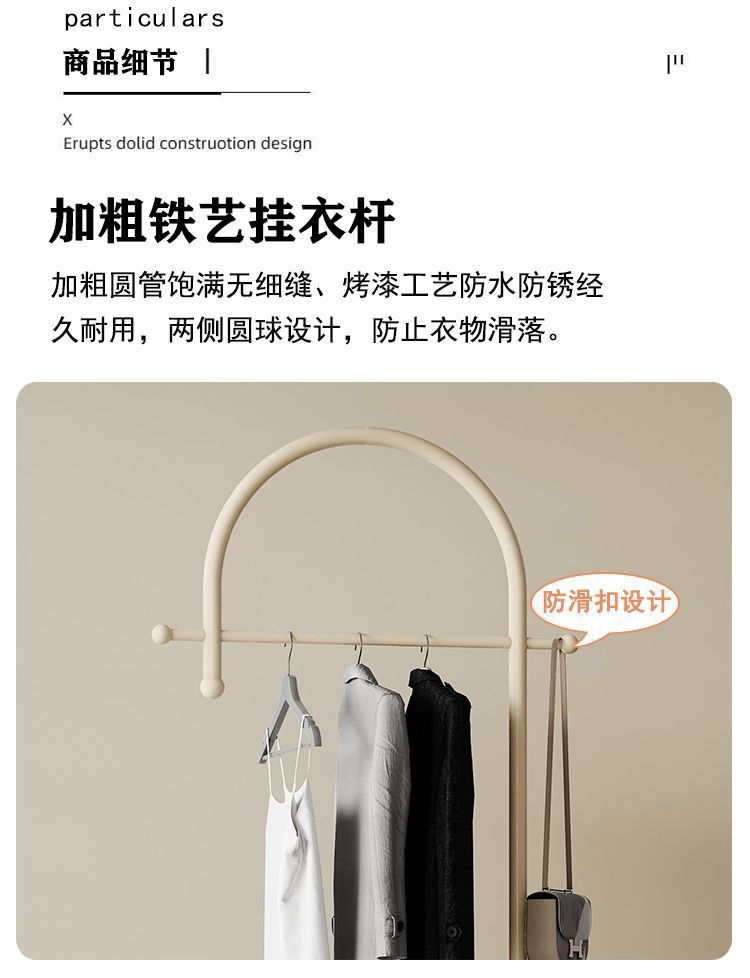 더러운 옷 바구니가 있는 철제 침대 옆 옷걸이, 현관 바닥 옷걸이, 가방 걸이, 거실 크림 스타일 코트 랙스토어 가기