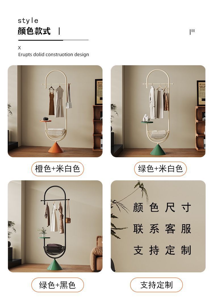 더러운 옷 바구니가 있는 철제 침대 옆 옷걸이, 현관 바닥 옷걸이, 가방 걸이, 거실 크림 스타일 코트 랙
