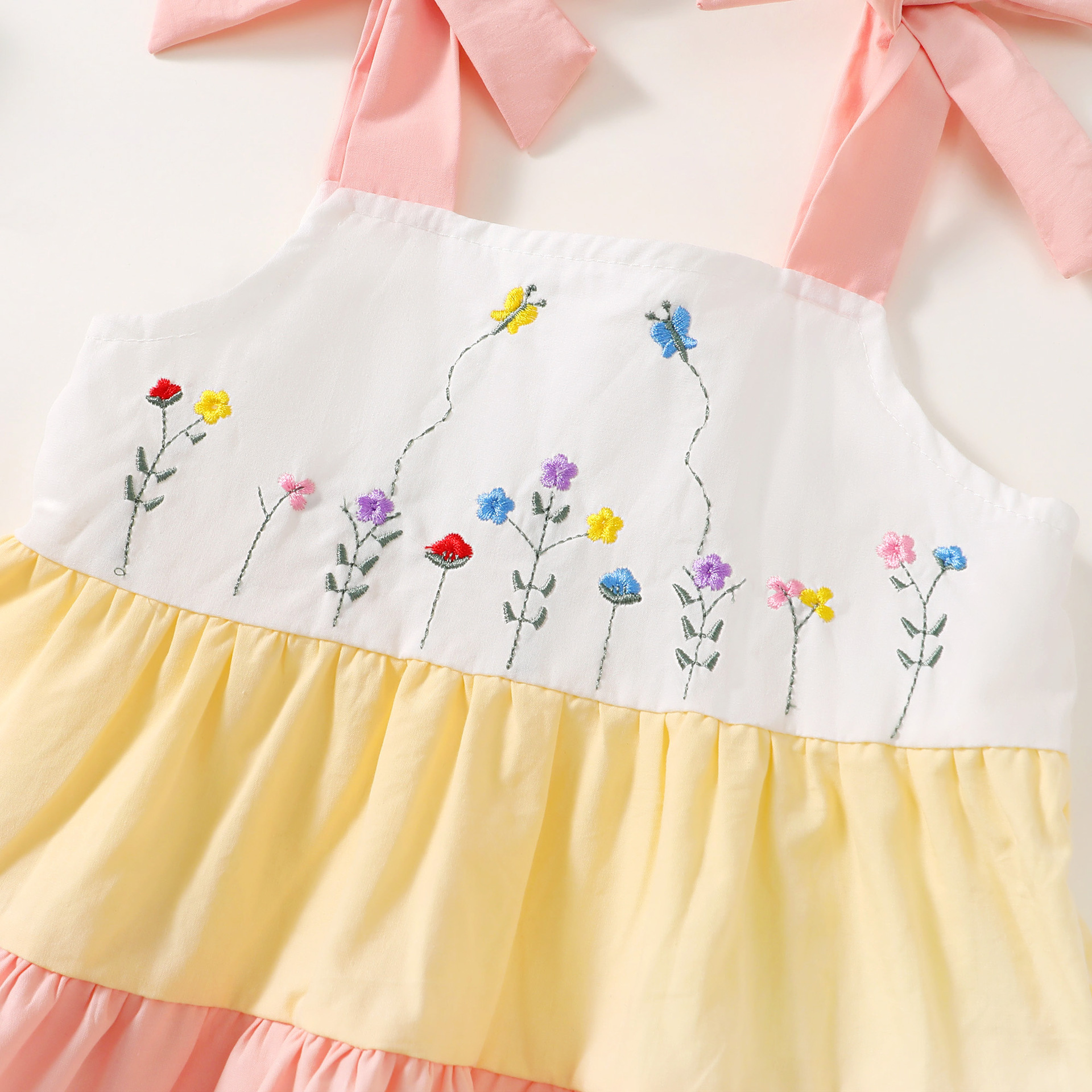 여자 아기, 어린 소녀, 공주 아기 멜빵 민소매 자수 꽃 나비 흰색 노란색 분홍색 파란색 4 층 드레스에는 Shu가 포함되어 있습니다.스토어 가기
