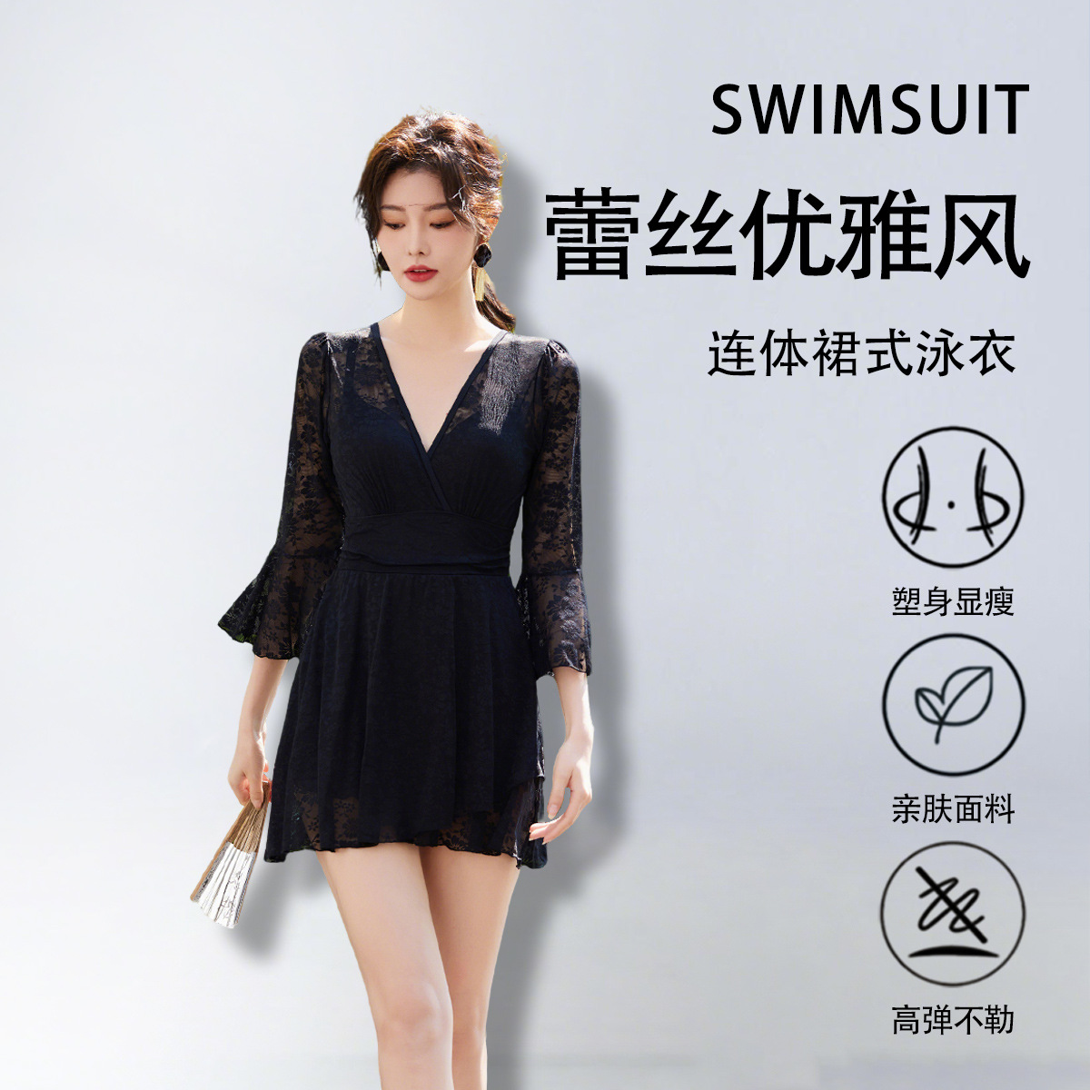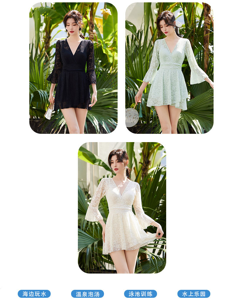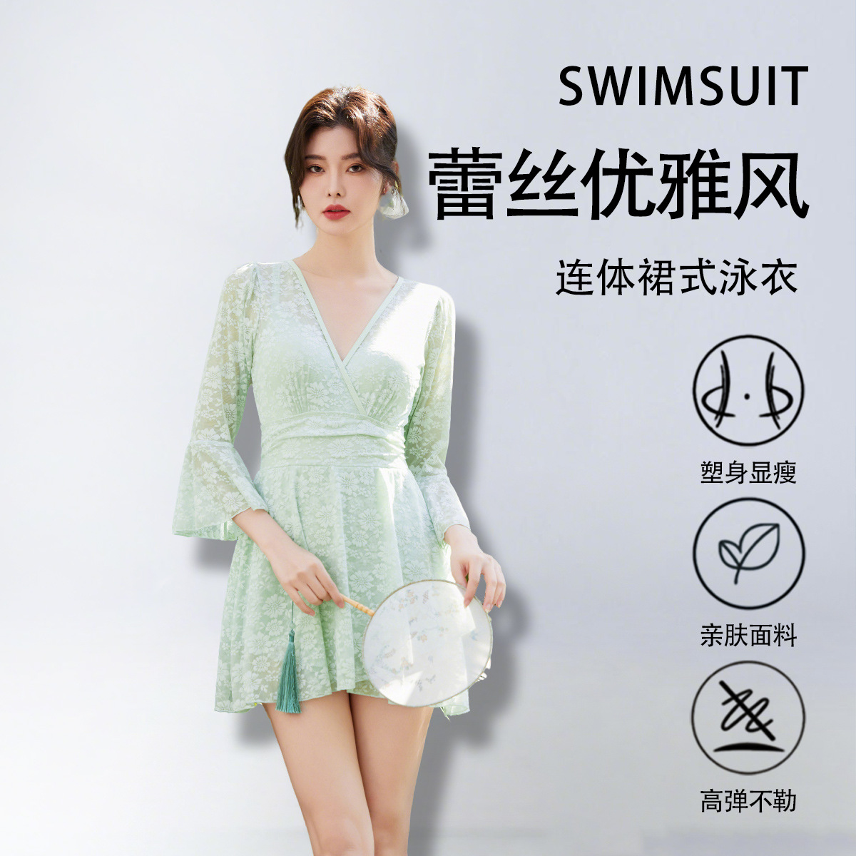 살짝 뚱뚱한 여성 원피스 수영복 스커트 스타일 우아하고 보수적이며 슬림하고 다리가 길어지는 해변 휴가 긴팔 자외선 차단 수영복스토어 가기