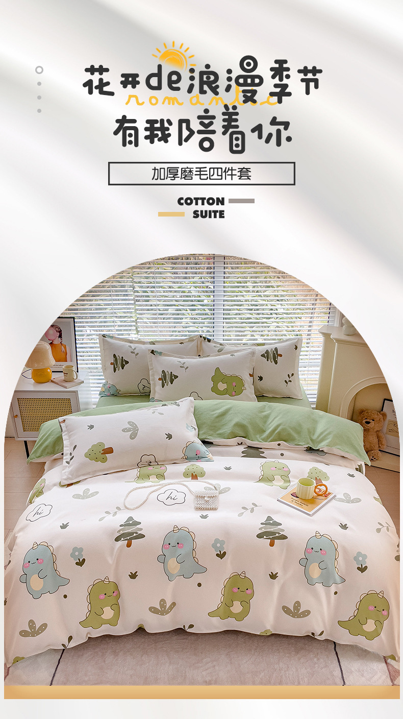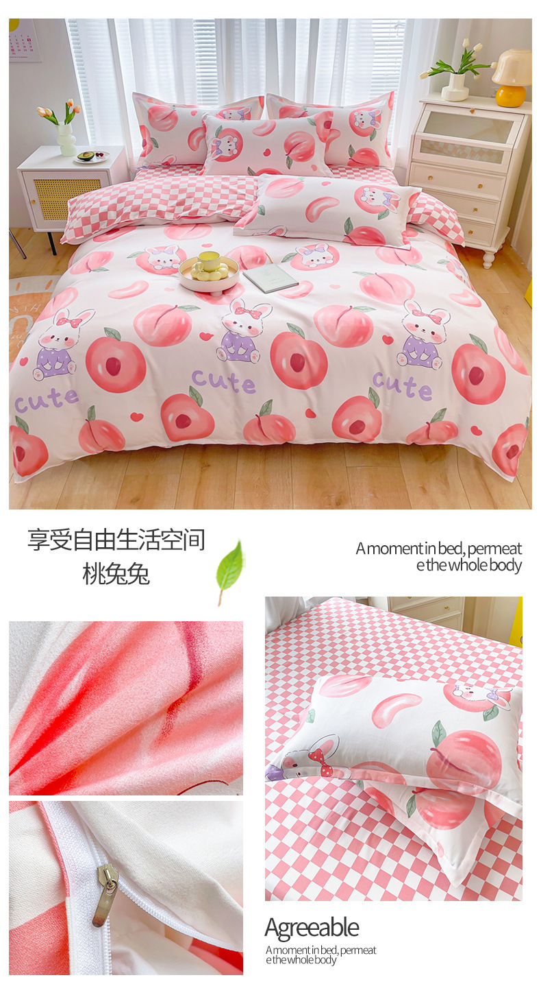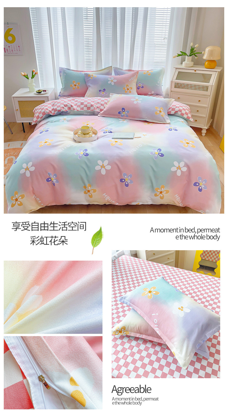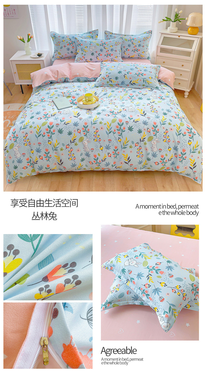 Ins 스타일 퓨어 코튼 4 피스 세트 두꺼운 샌딩 신선한 코튼 침대 시트 퀼트 커버 침대 모자 기숙사 3 피스 세트스토어 가기
