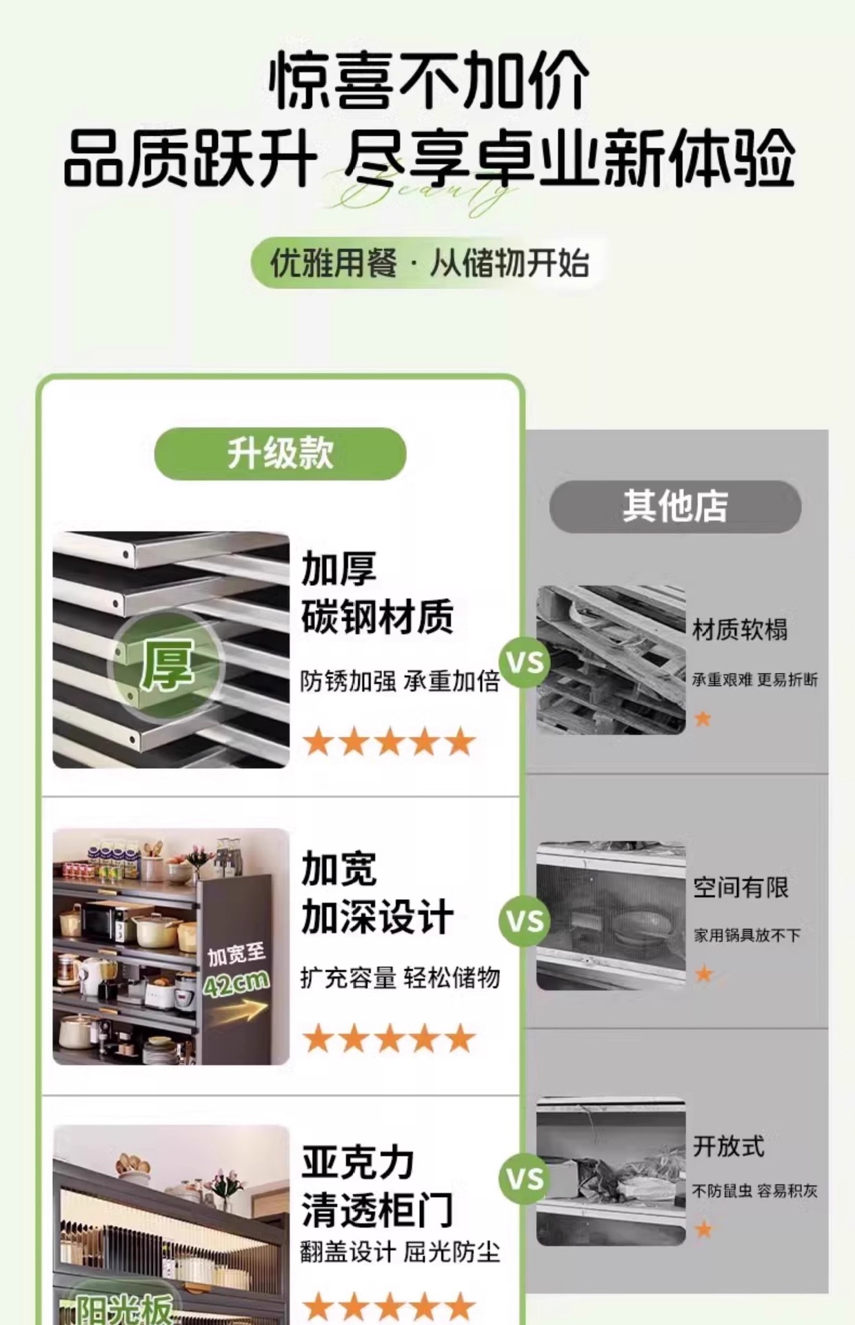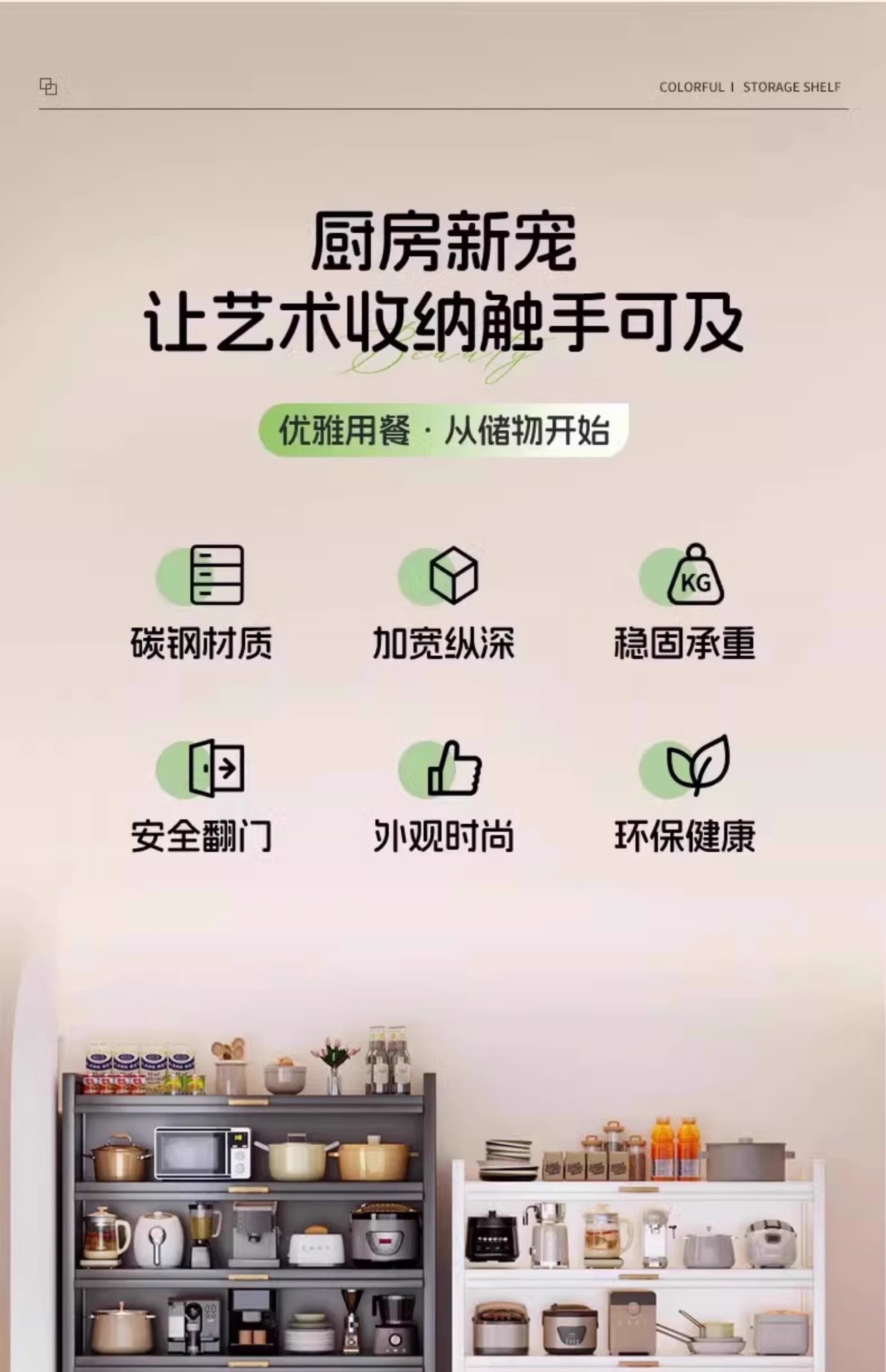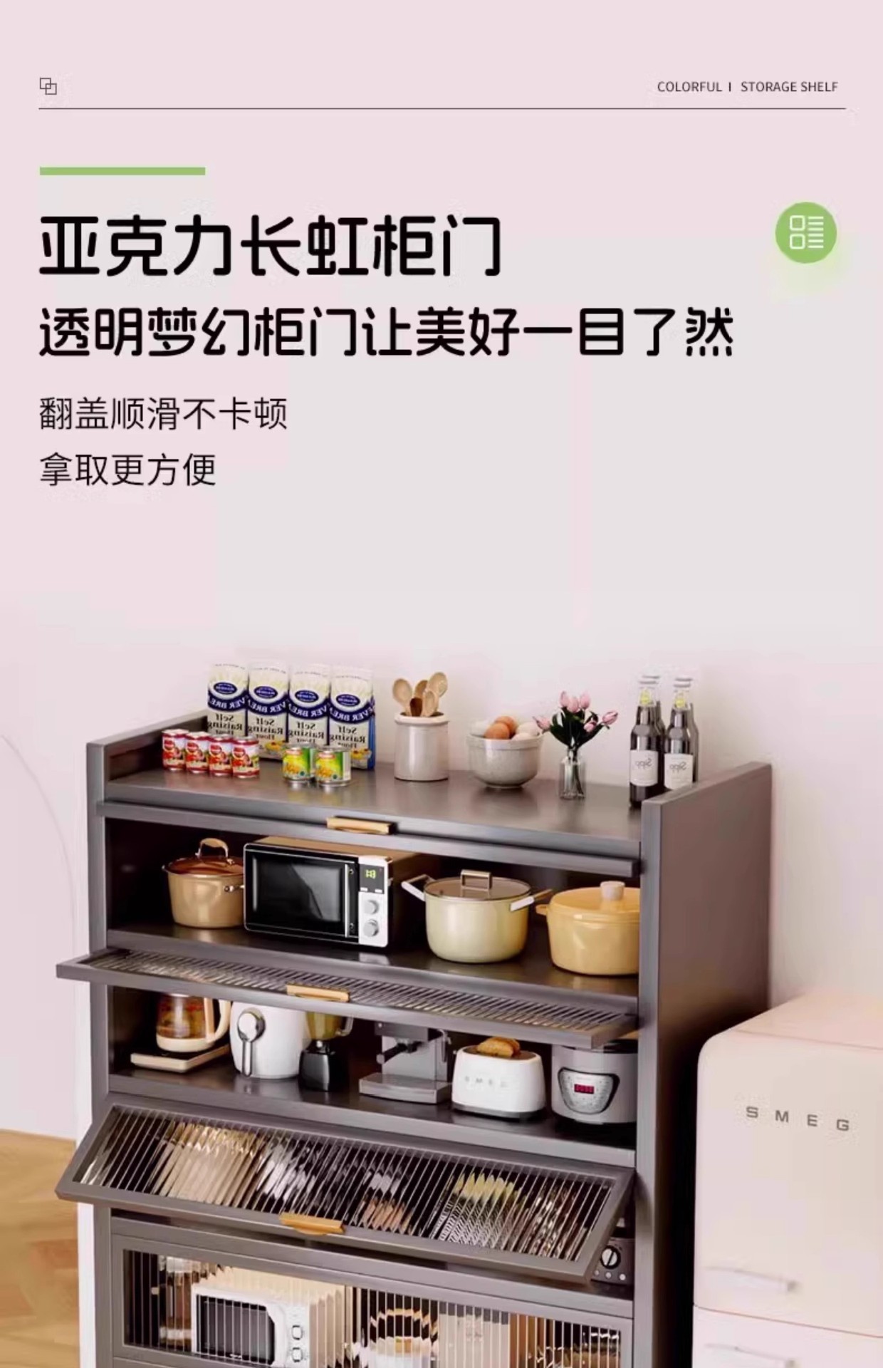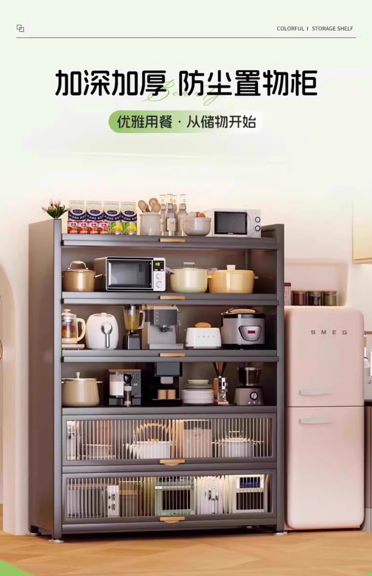 주방 선반 바닥 스탠딩 스토리지 캐비닛 벽 전자 레인지 가정용 캐비닛 도어 다층 다기능 스토리지 캐비닛스토어 가기