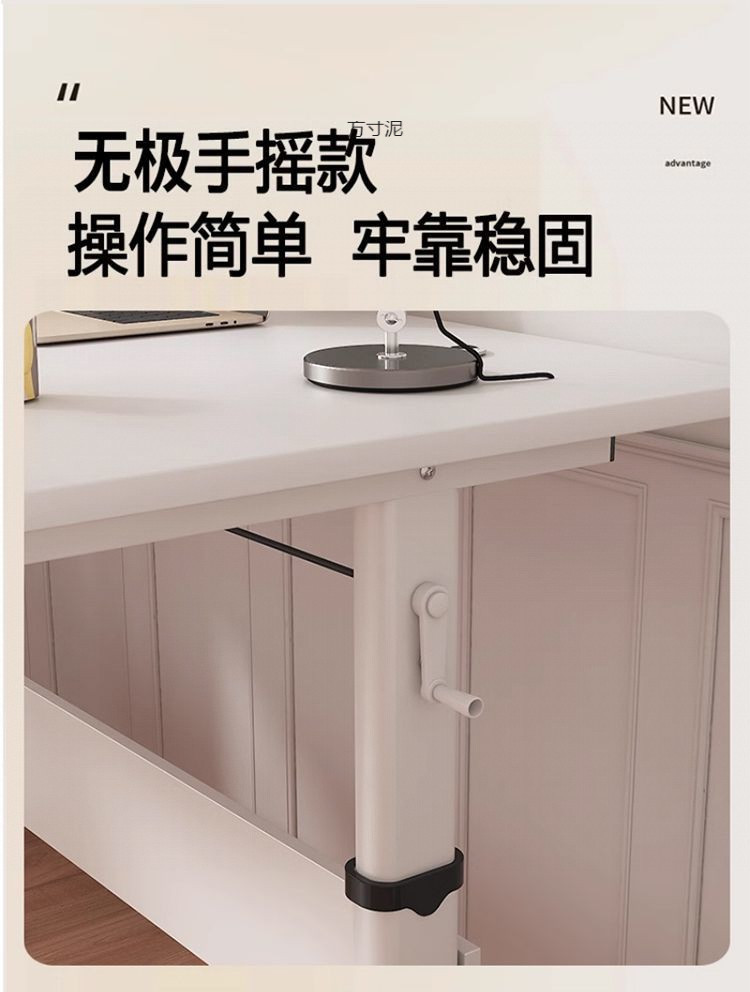 • 핸드크랭크 크림 화이트 + 화이트 프레임丨다용도 테이블丨리프트 테이블