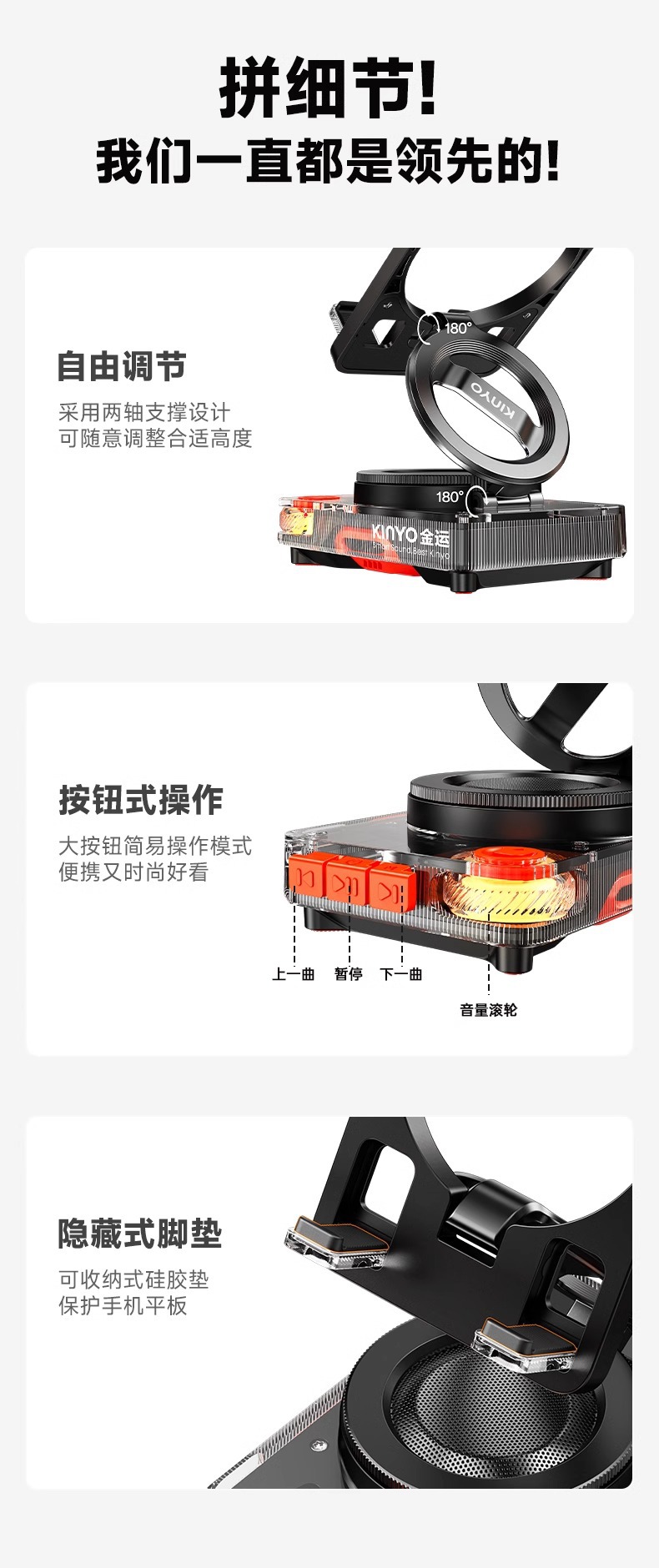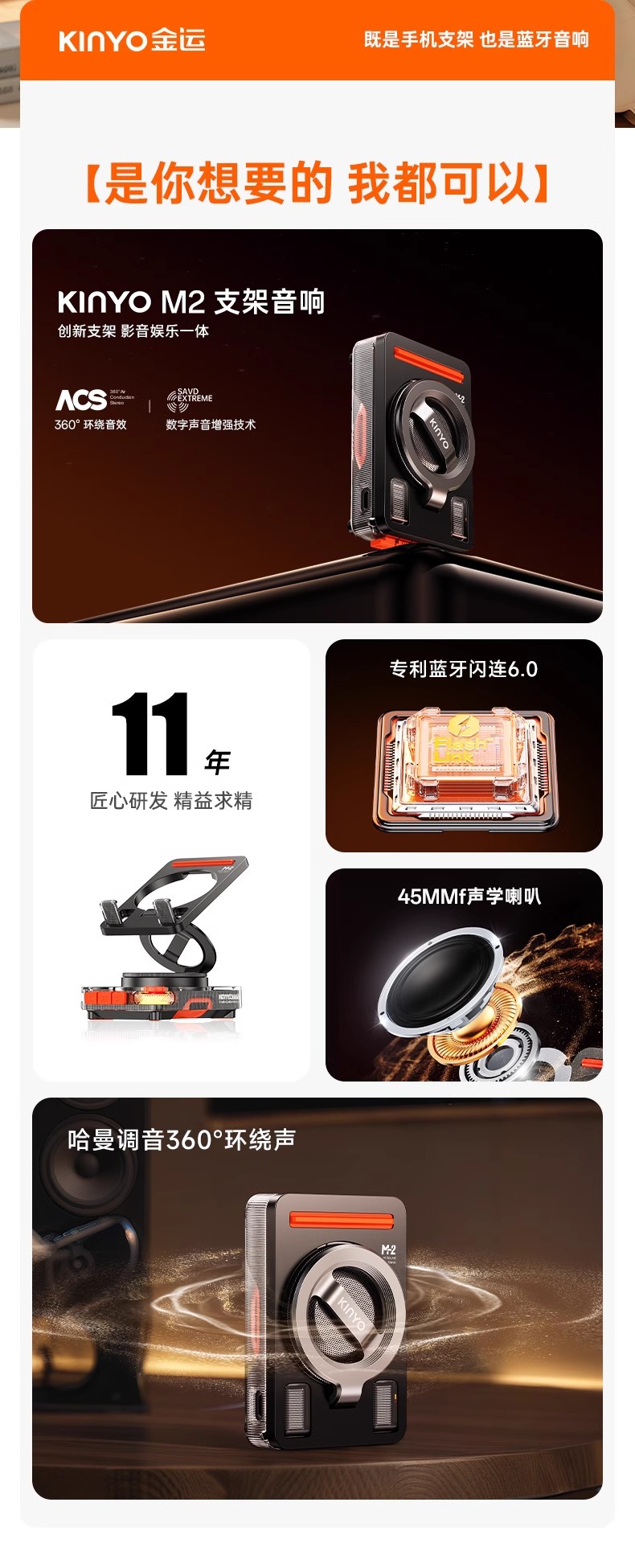 Jinyun M-2 스탠드형 블루투스 스피커, 무선 사무용 컴퓨터 가정용 저음 미니 블루투스 스피커