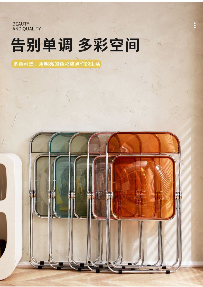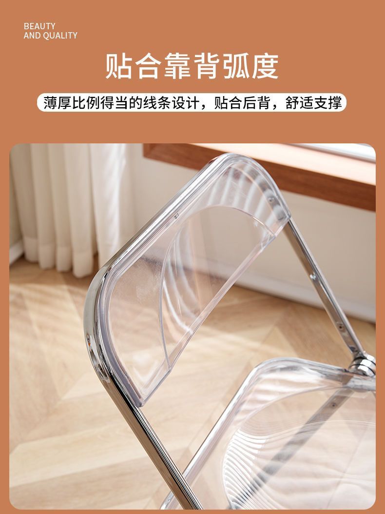 아크릴 접이식 의자 패션 인터넷 연예인 의류 매장 투명 사진 의자 메이크업 의자 크리스탈 등받이 식사 T&