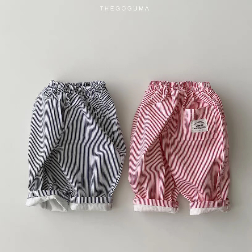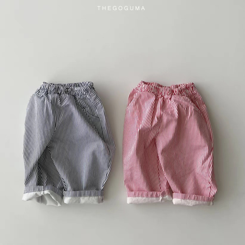 한국 아동복 25 여름 신작 유치원 소년 소녀 세로 줄무늬 캐주얼 다용도 아동 9부 바지스토어 가기