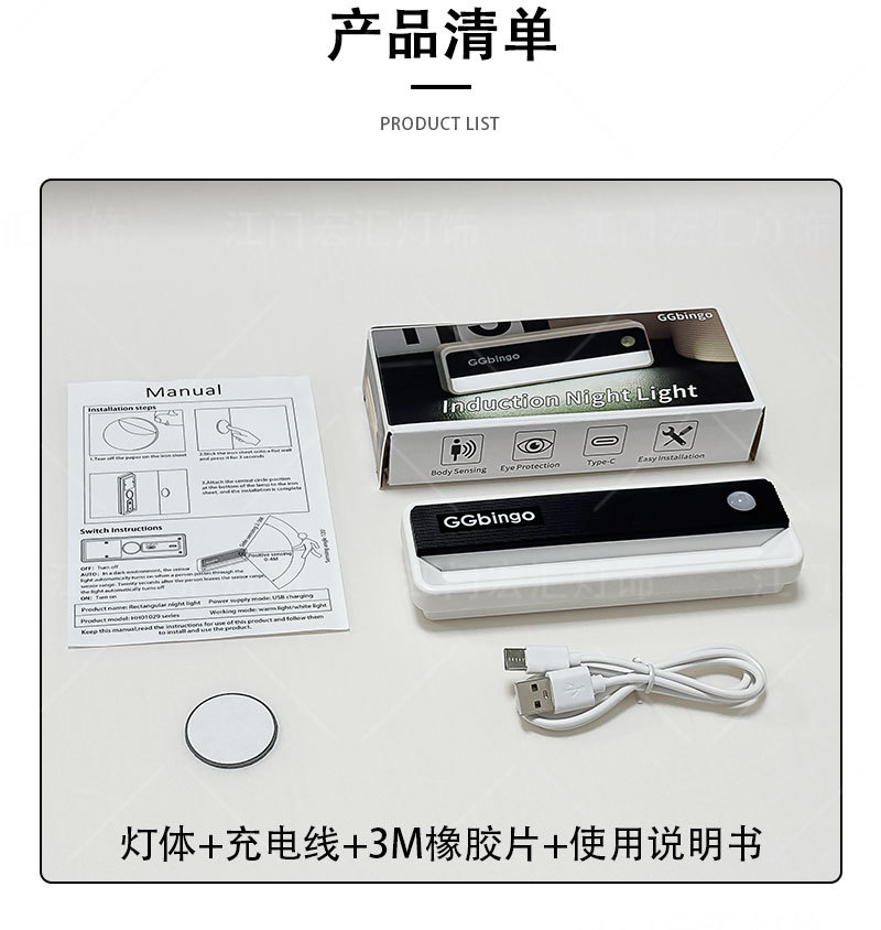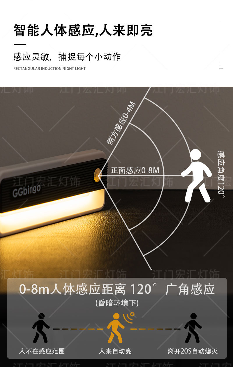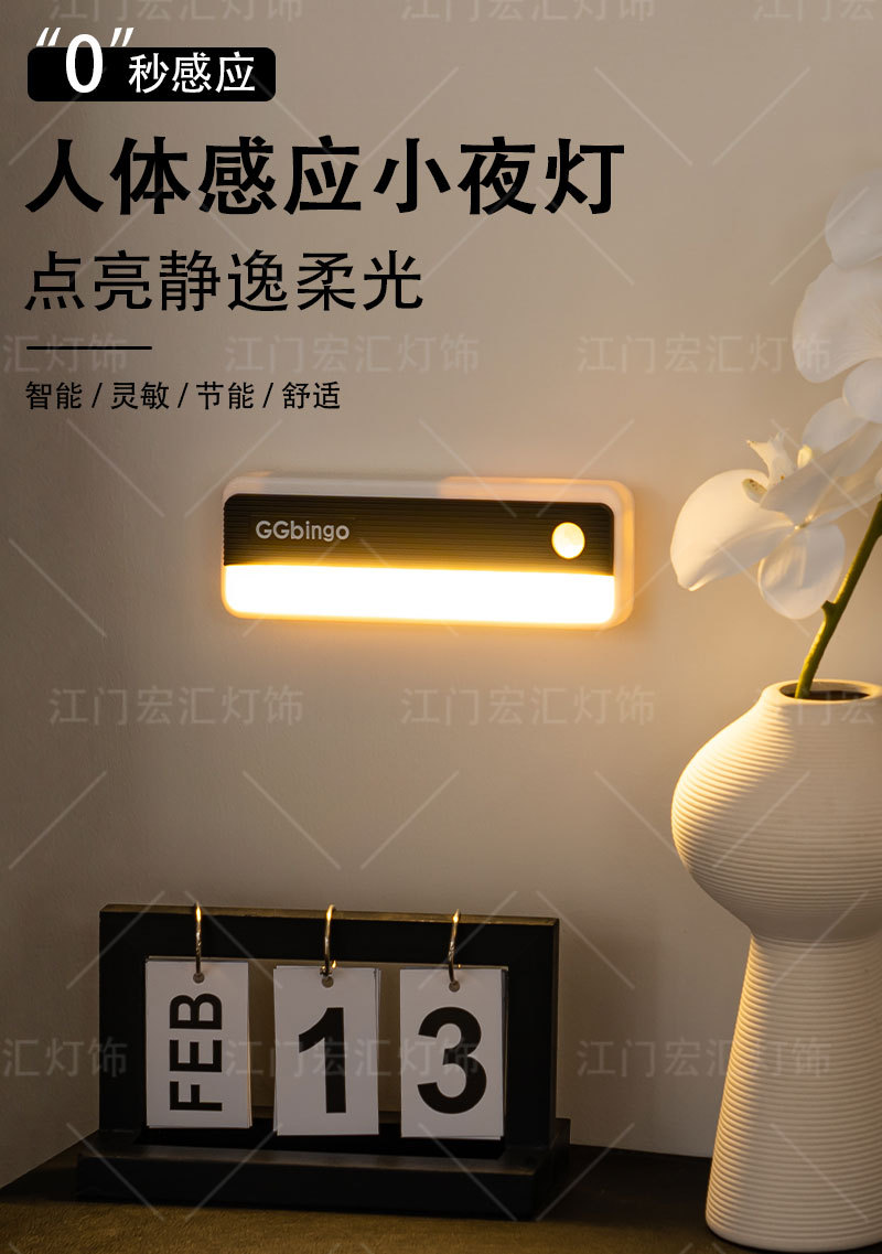 인체 감지 램프, 충전식 침대 옆 야간등, 고급스러운 분위기 조명, 창의적인 침실 야간등, 캐비닛 조명, 복도 조명