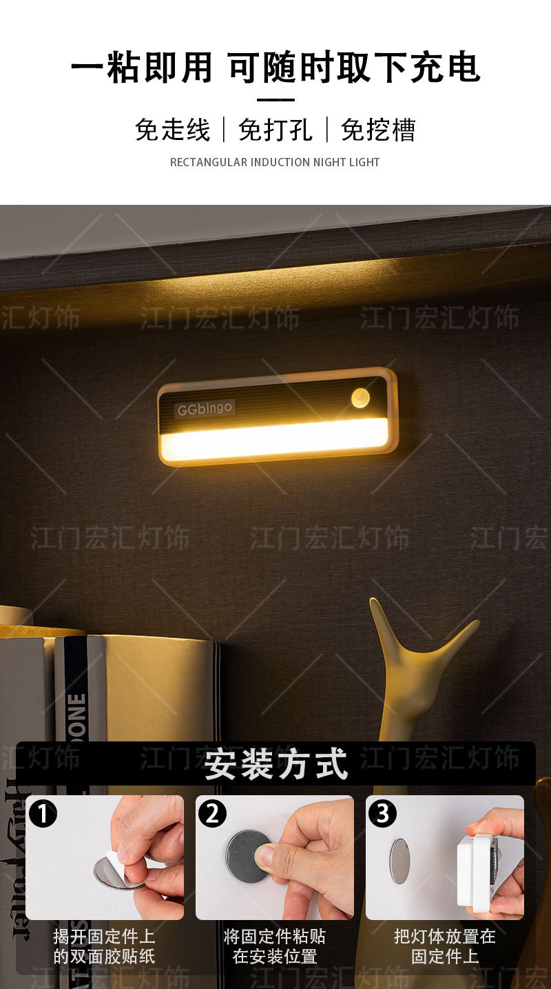 인체 감지 램프, 충전식 침대 옆 야간등, 고급스러운 분위기 조명, 창의적인 침실 야간등, 캐비닛 조명, 복도 조명스토어 가기