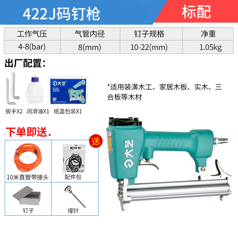 XD Dayi 논스톱 스트레이트 네일건 에어 네일건 3050 스틸 네일건 목공 장식 천장 1013 코드 네일건 모기 자동차