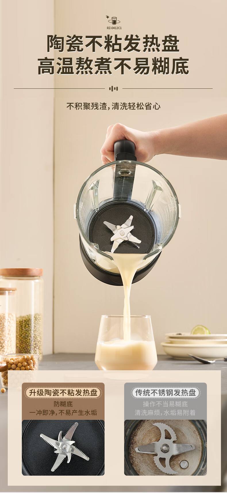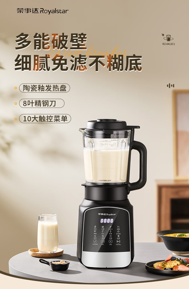 Royalstar 벽 파괴 기계 가정용 두유 기계 1.65L 믹싱 쿡 기계 주서기 보충 식품 기계 RZ-0412C1