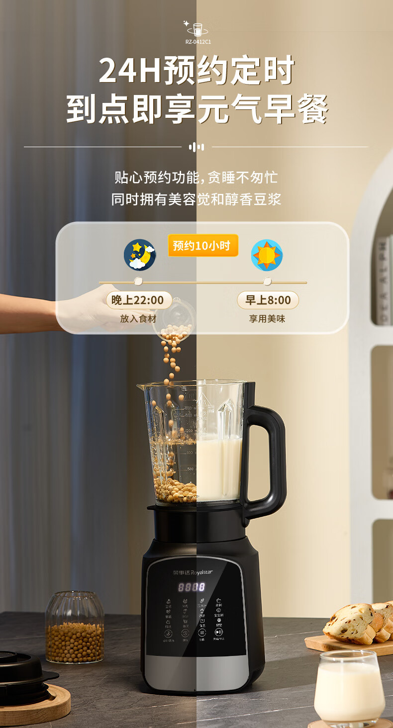 Royalstar 벽 파괴 기계 가정용 두유 기계 1.65L 믹싱 쿡 기계 주서기 보충 식품 기계 RZ-0412C1스토어 가기