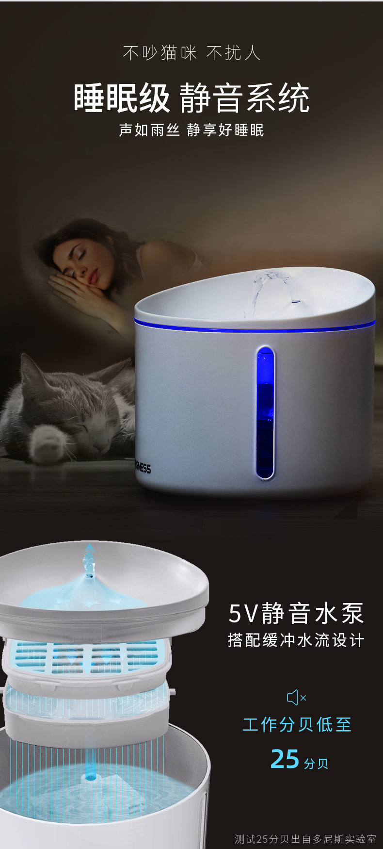 고양이 물 디스펜서 지능형 유도 충전 애완 동물 물 공급 장치 Donis 생활 물 순환 고양이와 개 물 디스펜서