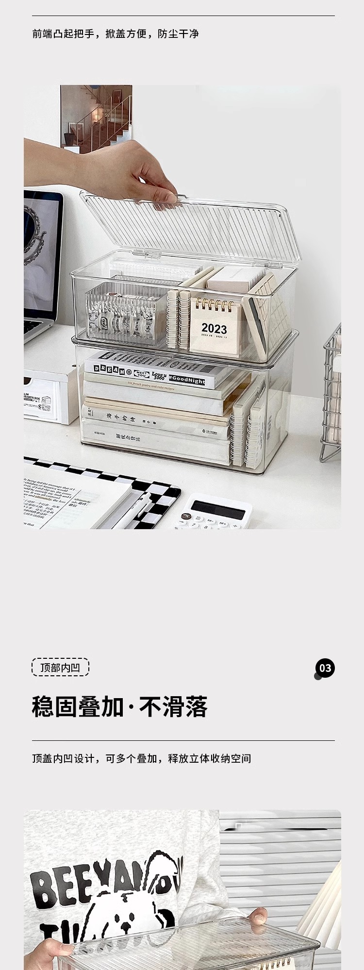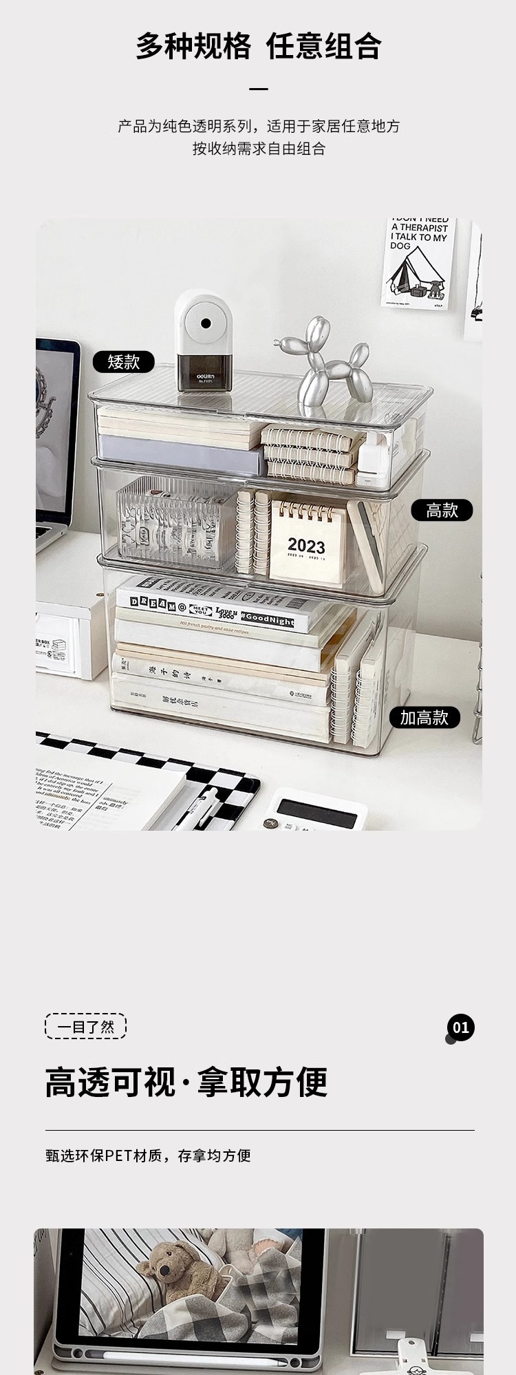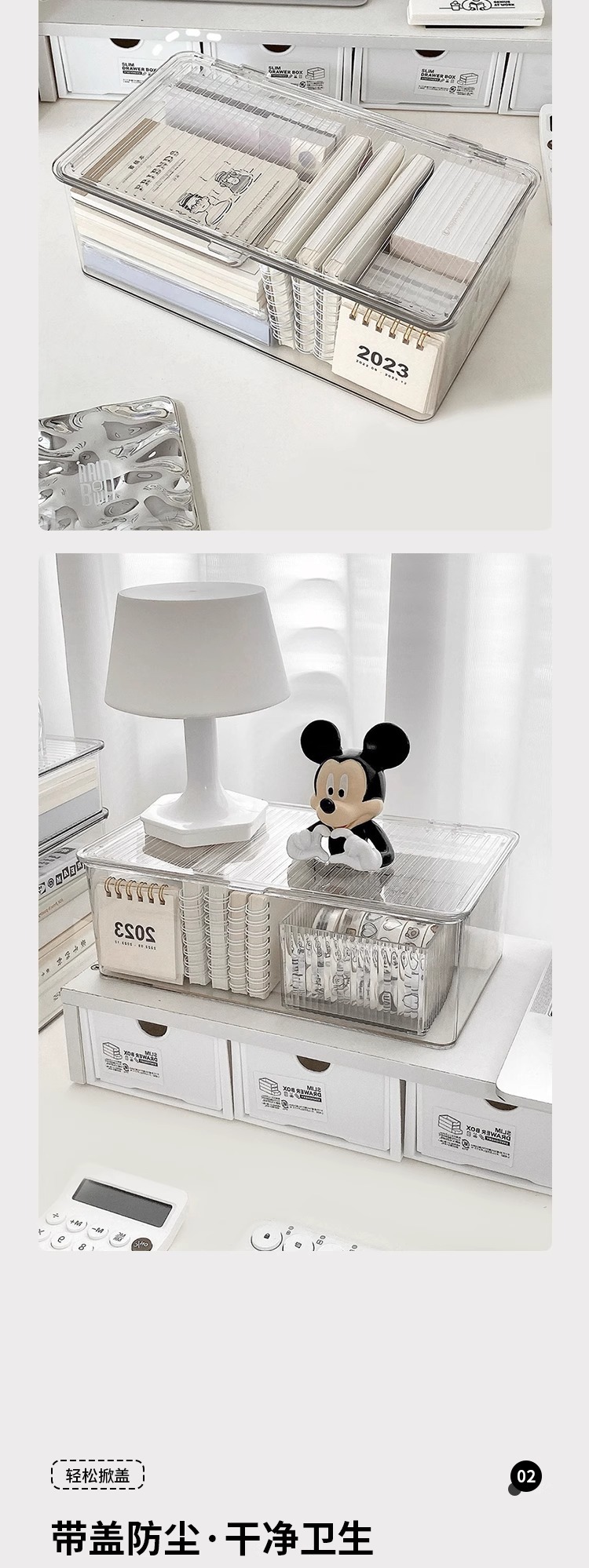 뚜껑이 있는 투명 보관 상자 사무실 학생 책상 아크릴 방진 보관 상자 화장품 립스틱 보관 바구니
