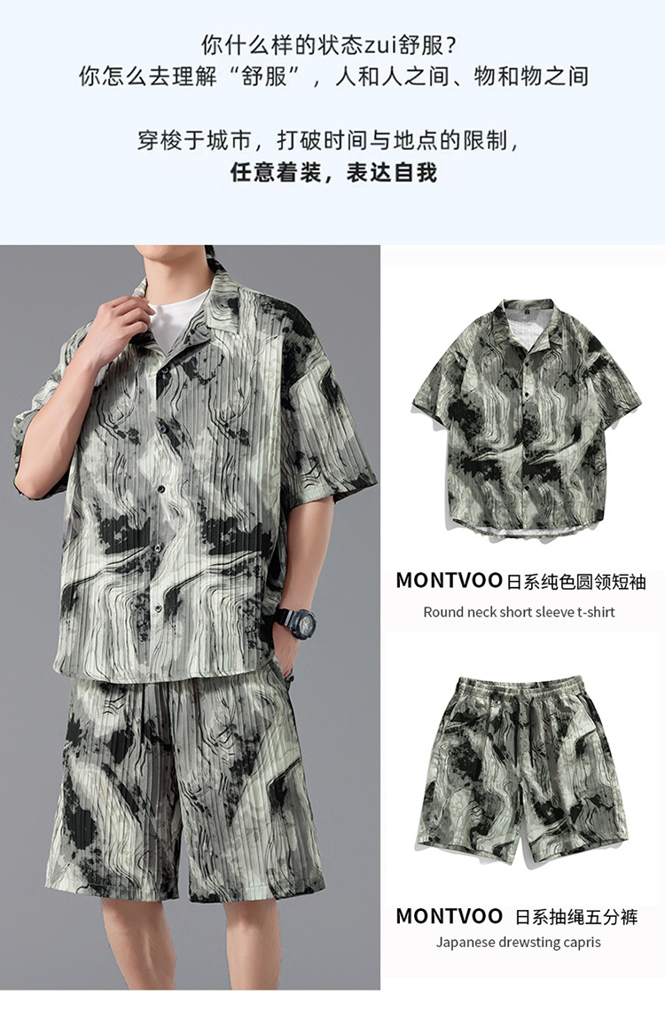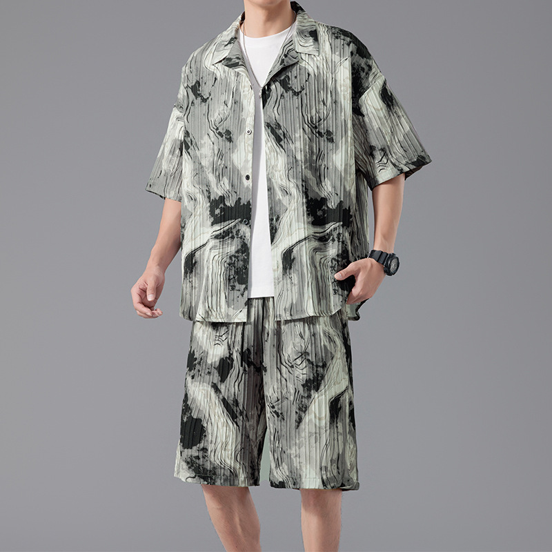 무료 배송 타이 염색 아이스 실크 정장 남성용 멋진 반팔 셔츠 청소년 맞춤형 틈새 디자인 캐주얼 스포츠 2스토어 가기