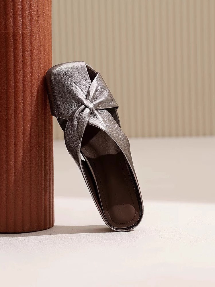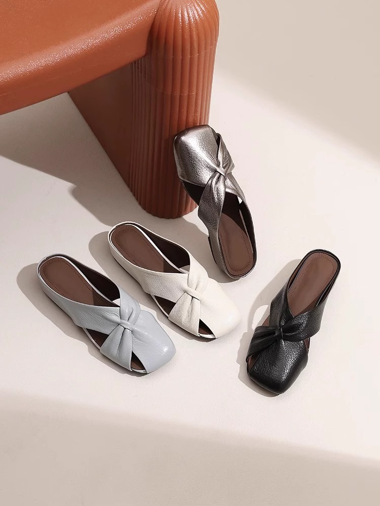 부드러운 가죽 버전 ~ 여름 아우터 캐주얼 뮬 슬리퍼, 속이 빈 발가락 샌들, 편안한 둥근 발가락 웨지 여성용 슬리퍼