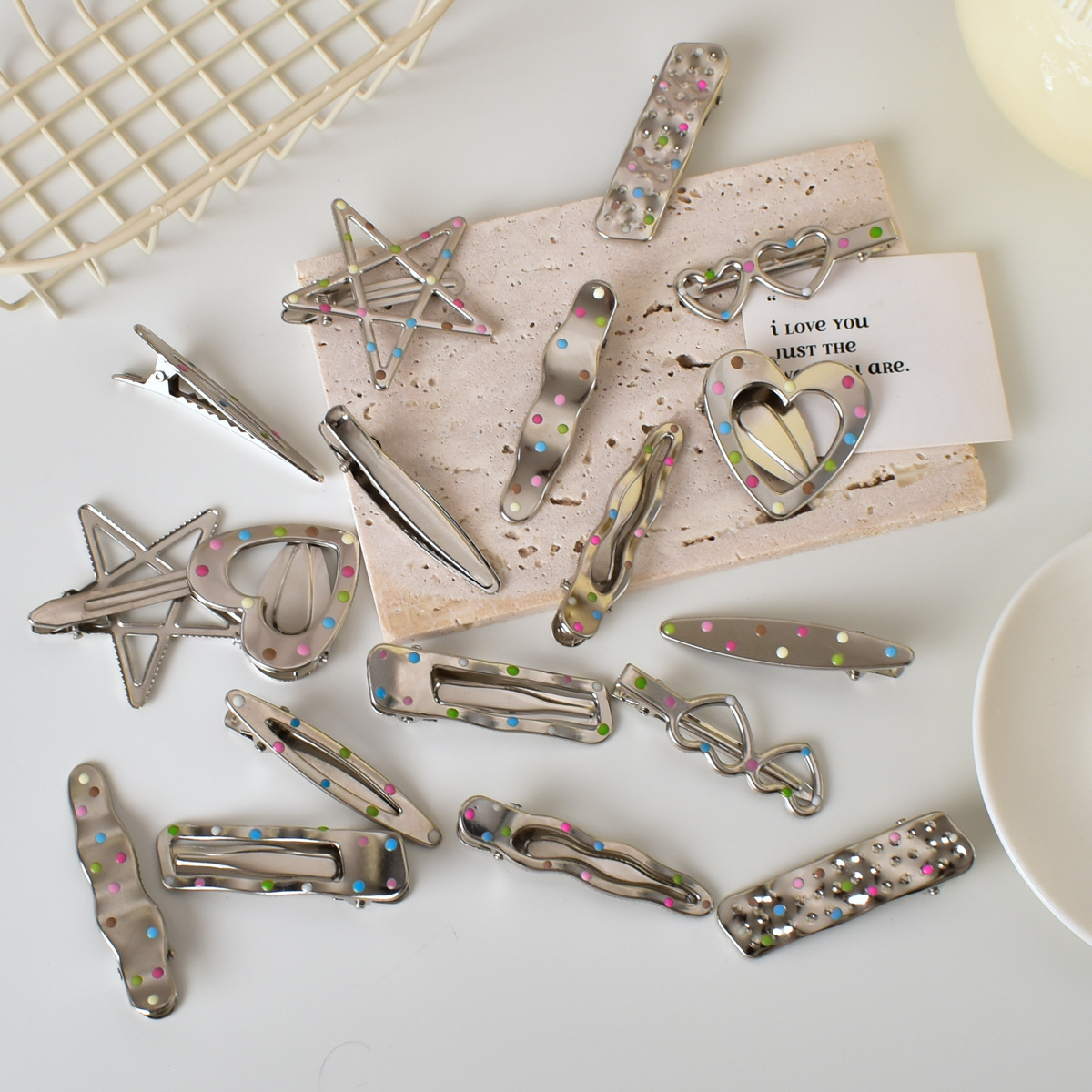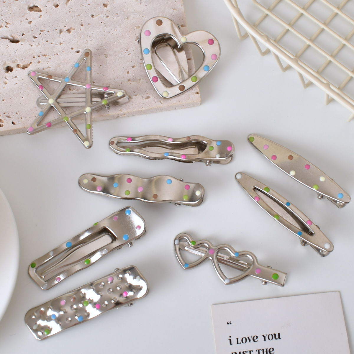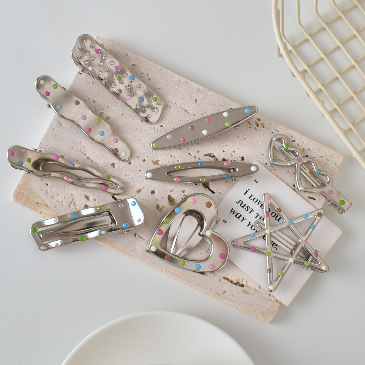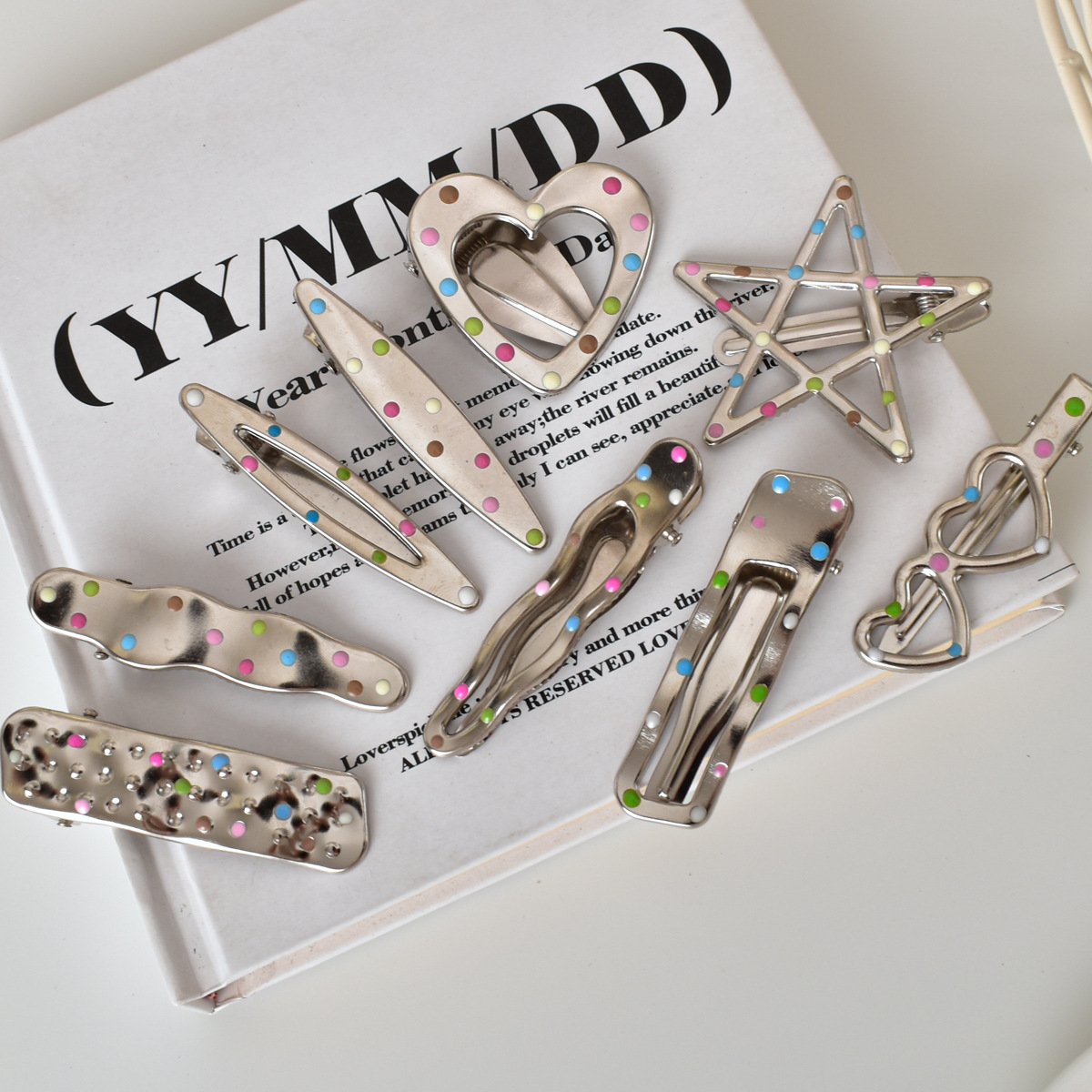 달콤한 멋진 뜨거운 여자 y2k 컬러 도트 실버 금속 머리핀 소녀 사이드 클립 세안 메이크업 머리핀 머리 장식 여성