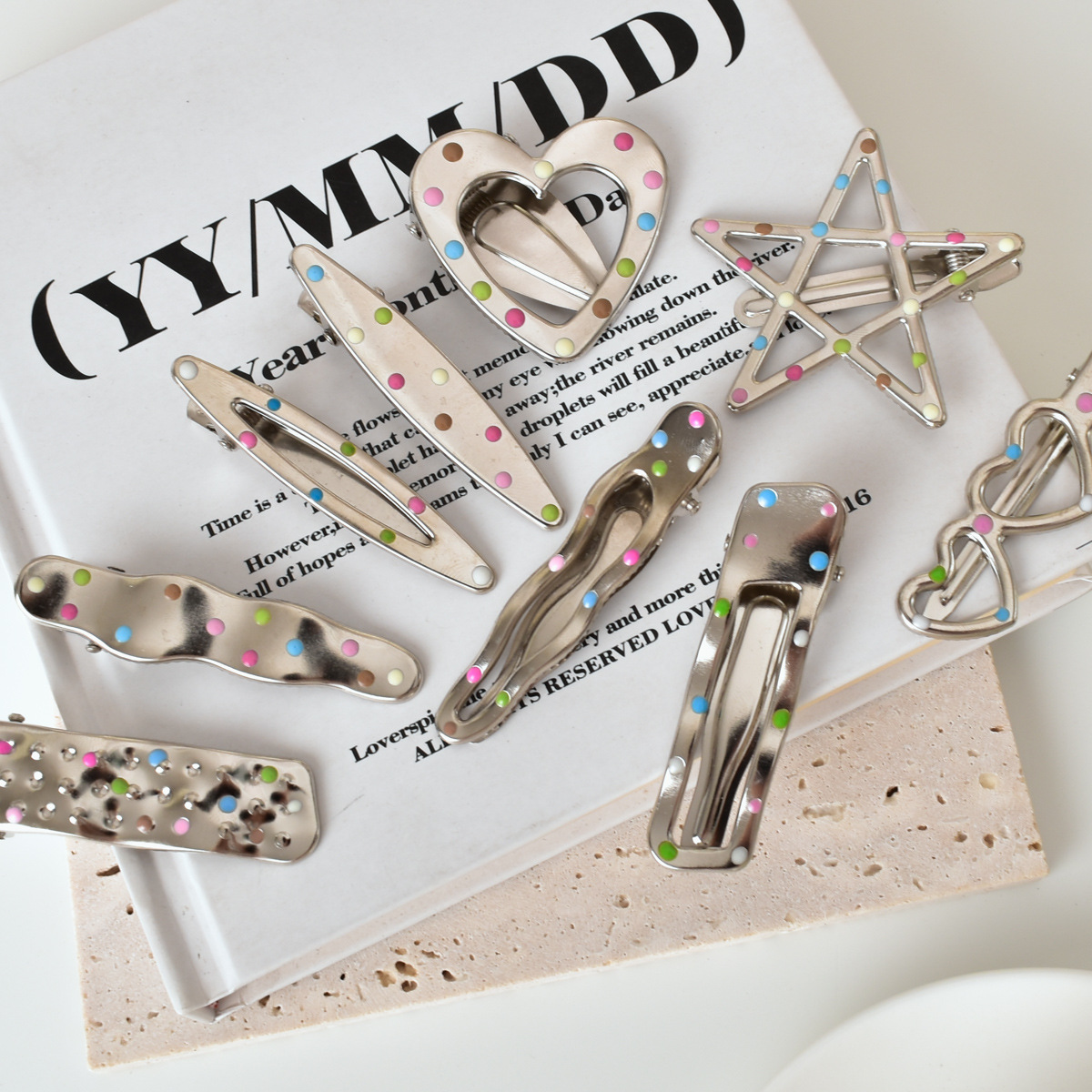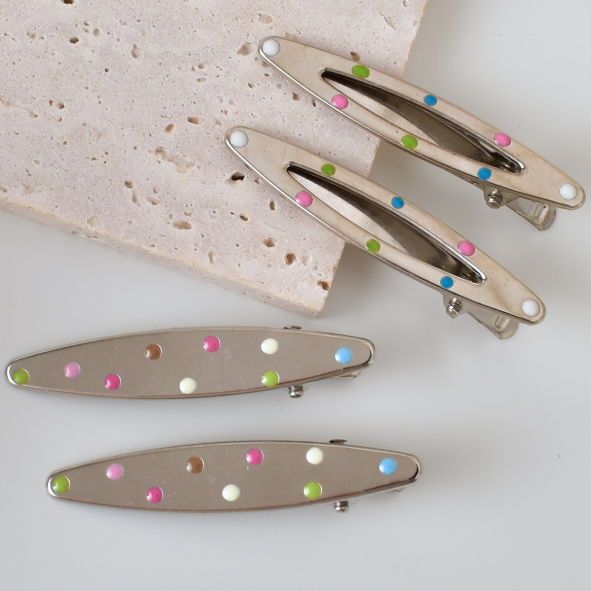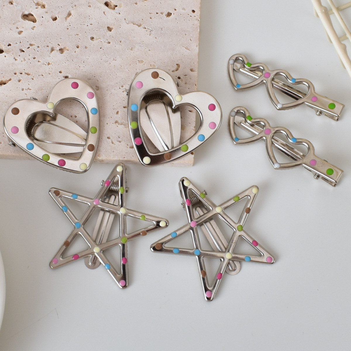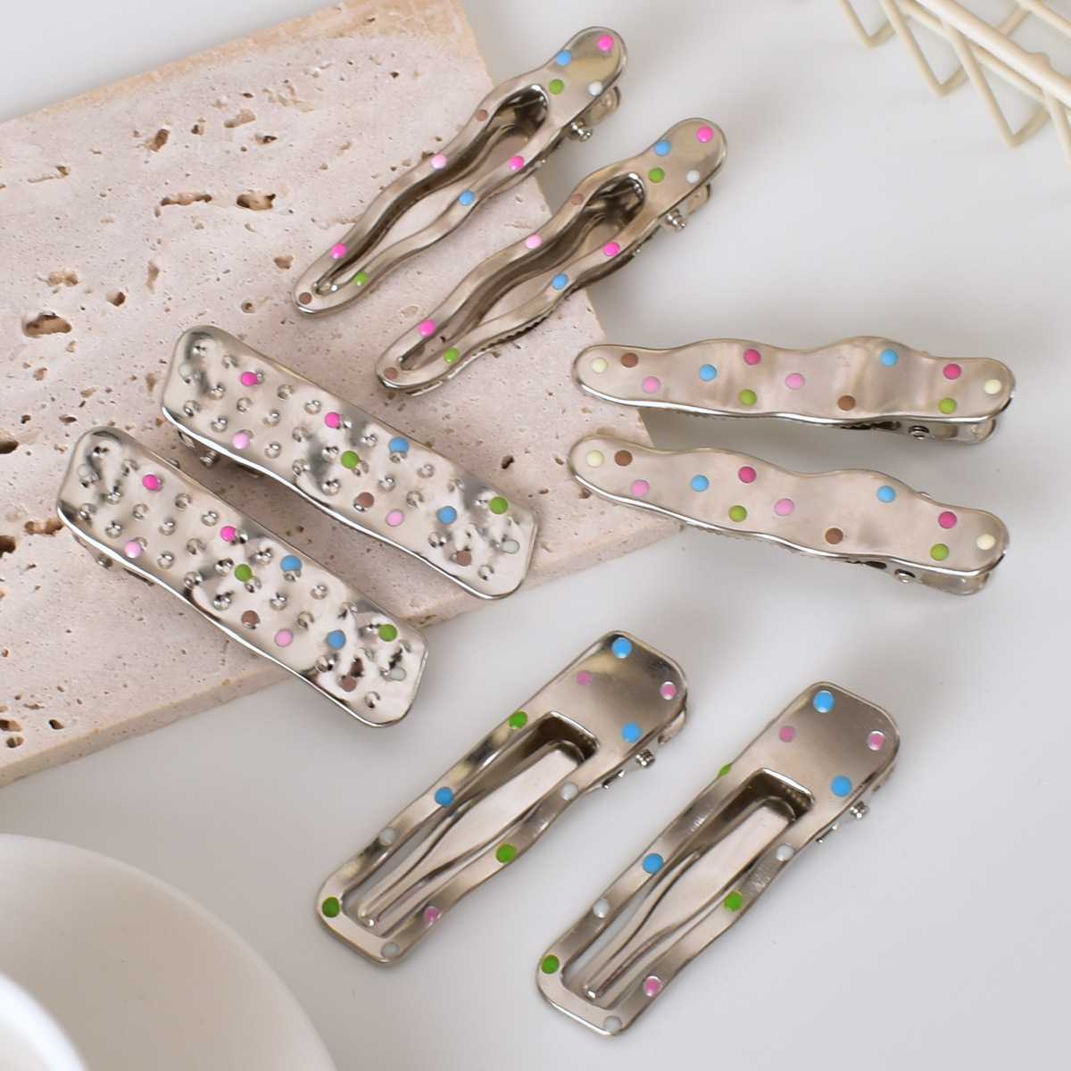 달콤한 멋진 뜨거운 여자 y2k 컬러 도트 실버 금속 머리핀 소녀 사이드 클립 세안 메이크업 머리핀 머리 장식 여성
