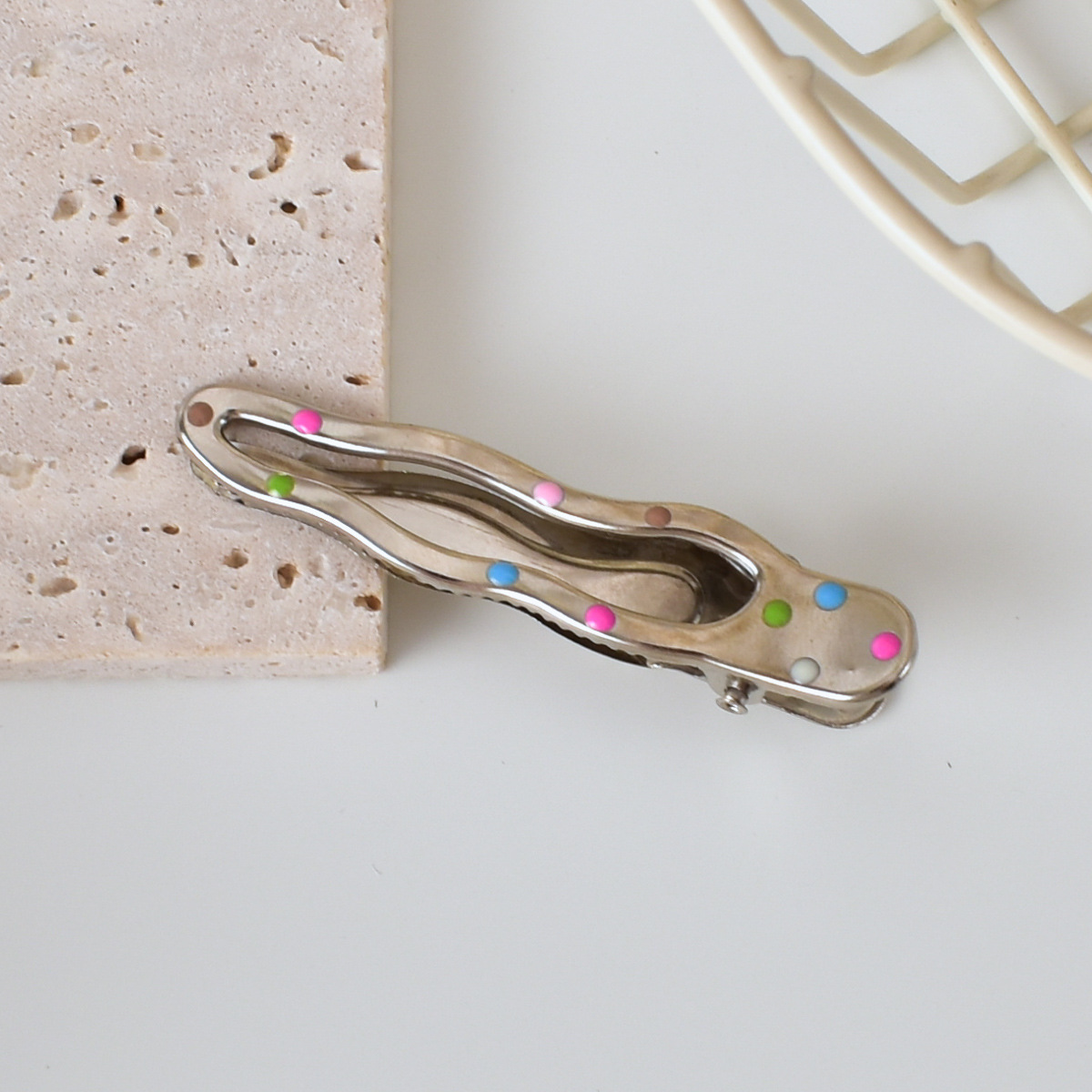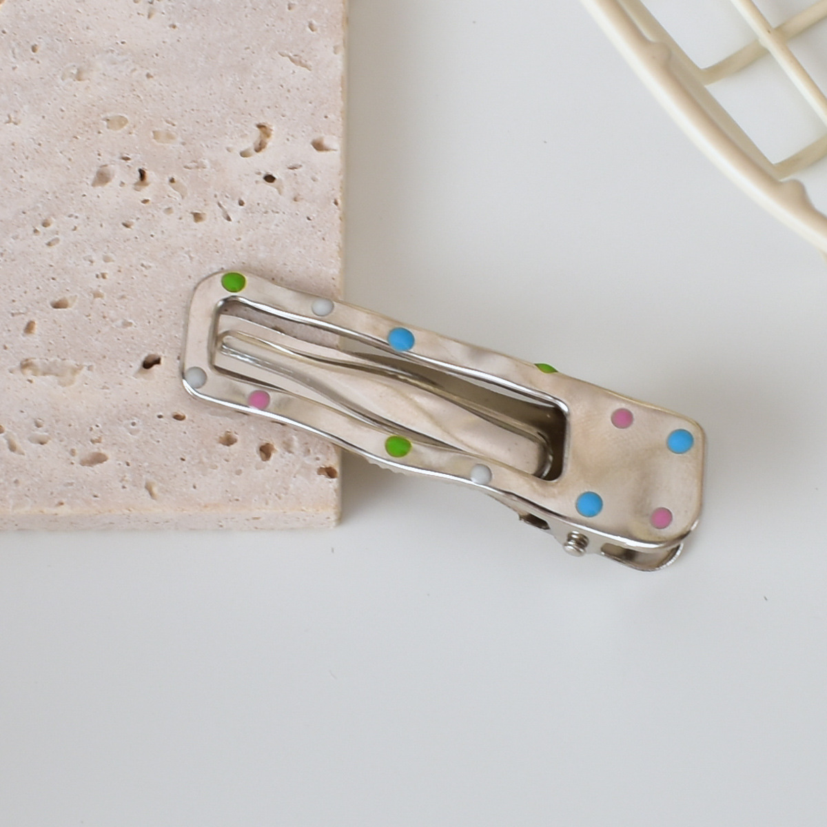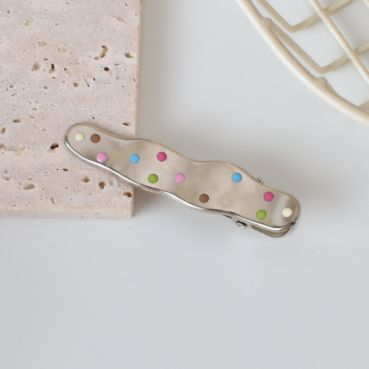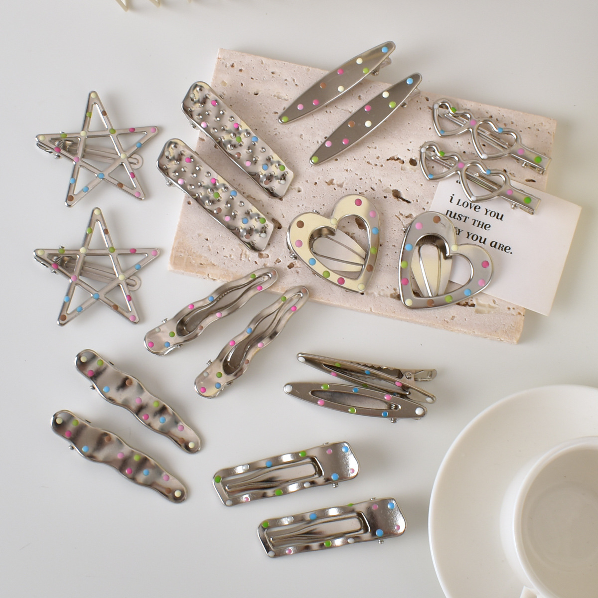 달콤한 멋진 뜨거운 여자 y2k 컬러 도트 실버 금속 머리핀 소녀 사이드 클립 세안 메이크업 머리핀 머리 장식 여성