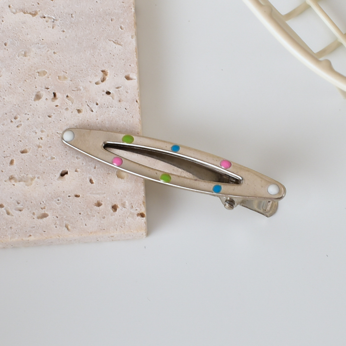 달콤한 멋진 뜨거운 여자 y2k 컬러 도트 실버 금속 머리핀 소녀 사이드 클립 세안 메이크업 머리핀 머리 장식 여성스토어 가기