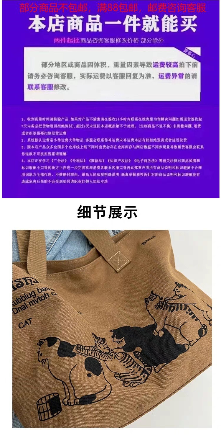 봄과 여름 대용량 캔버스 가방 여성의 새로운 패션 어깨 핸드백 일본 학생 클래스 가방 없음스토어 가기