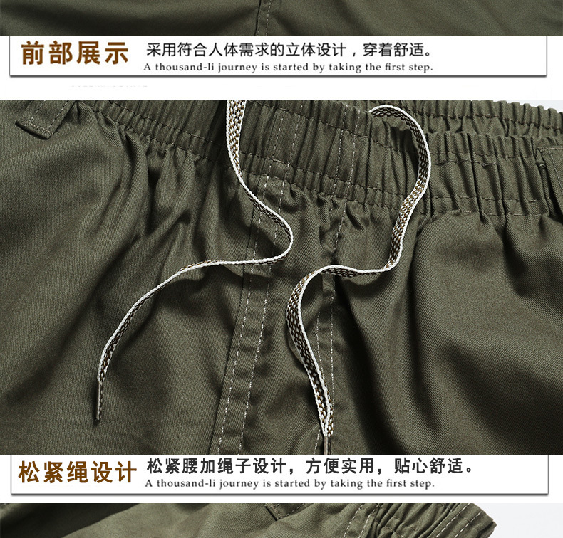무료 배송 여름 순수 코튼 반바지 트렌디 한 겉옷 신축성있는 허리 얇은 캐주얼 바지 남성용 대형 통기성 아빠 착용 5