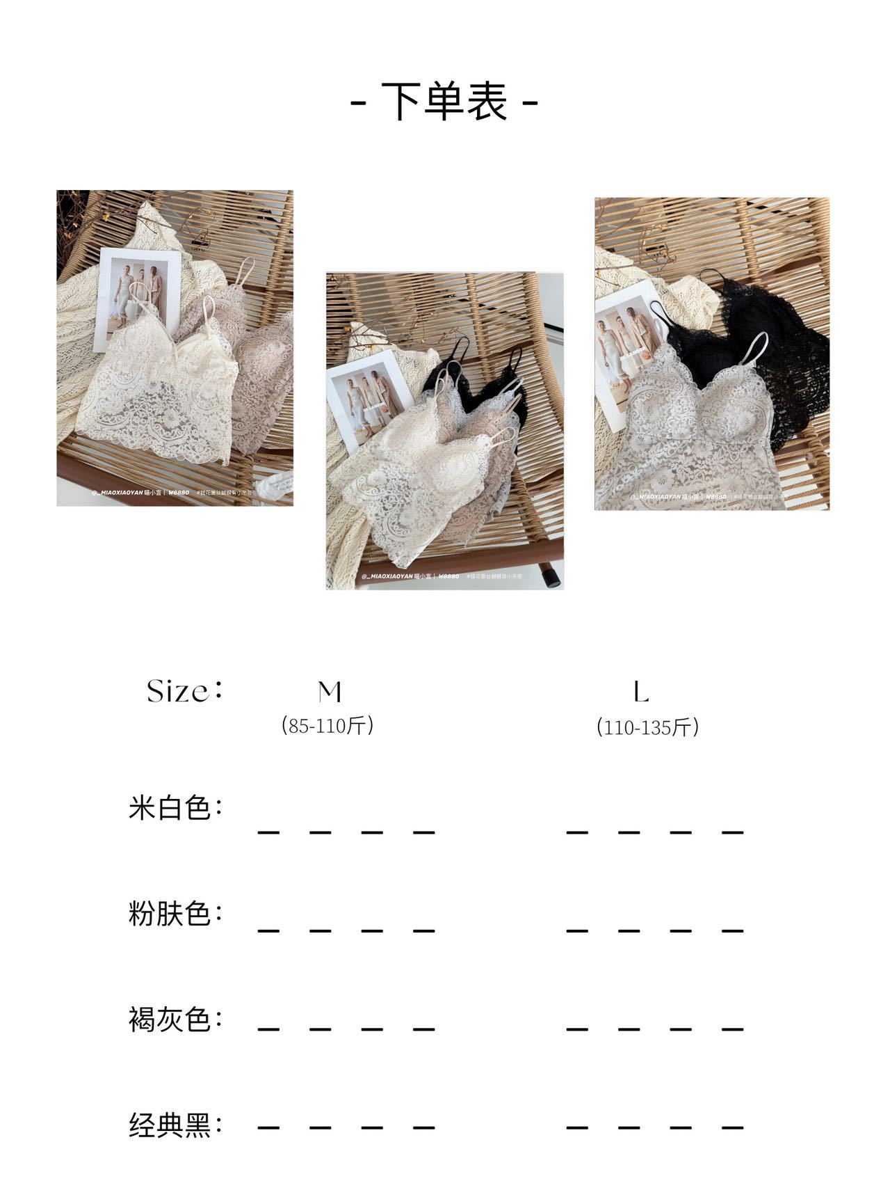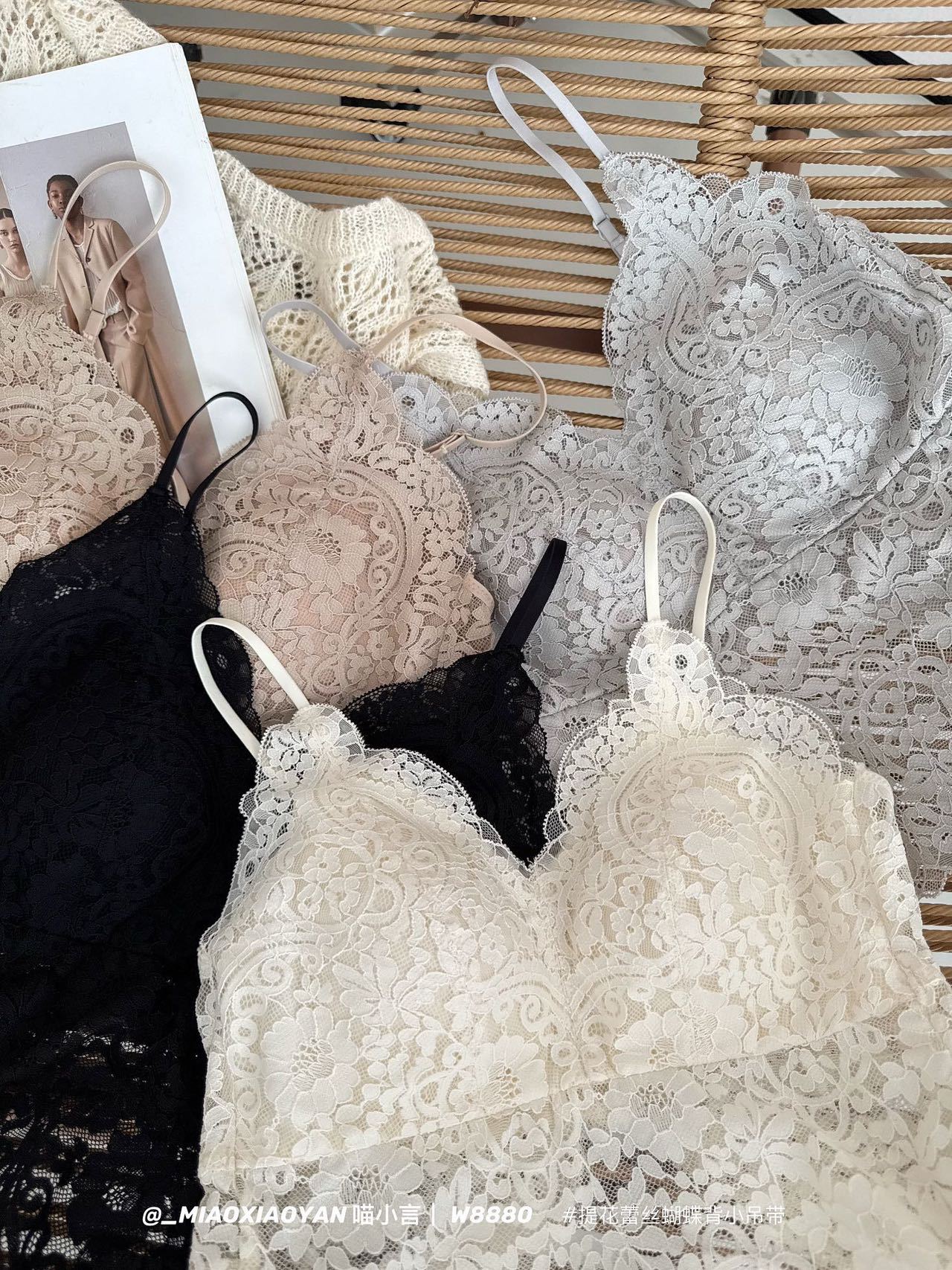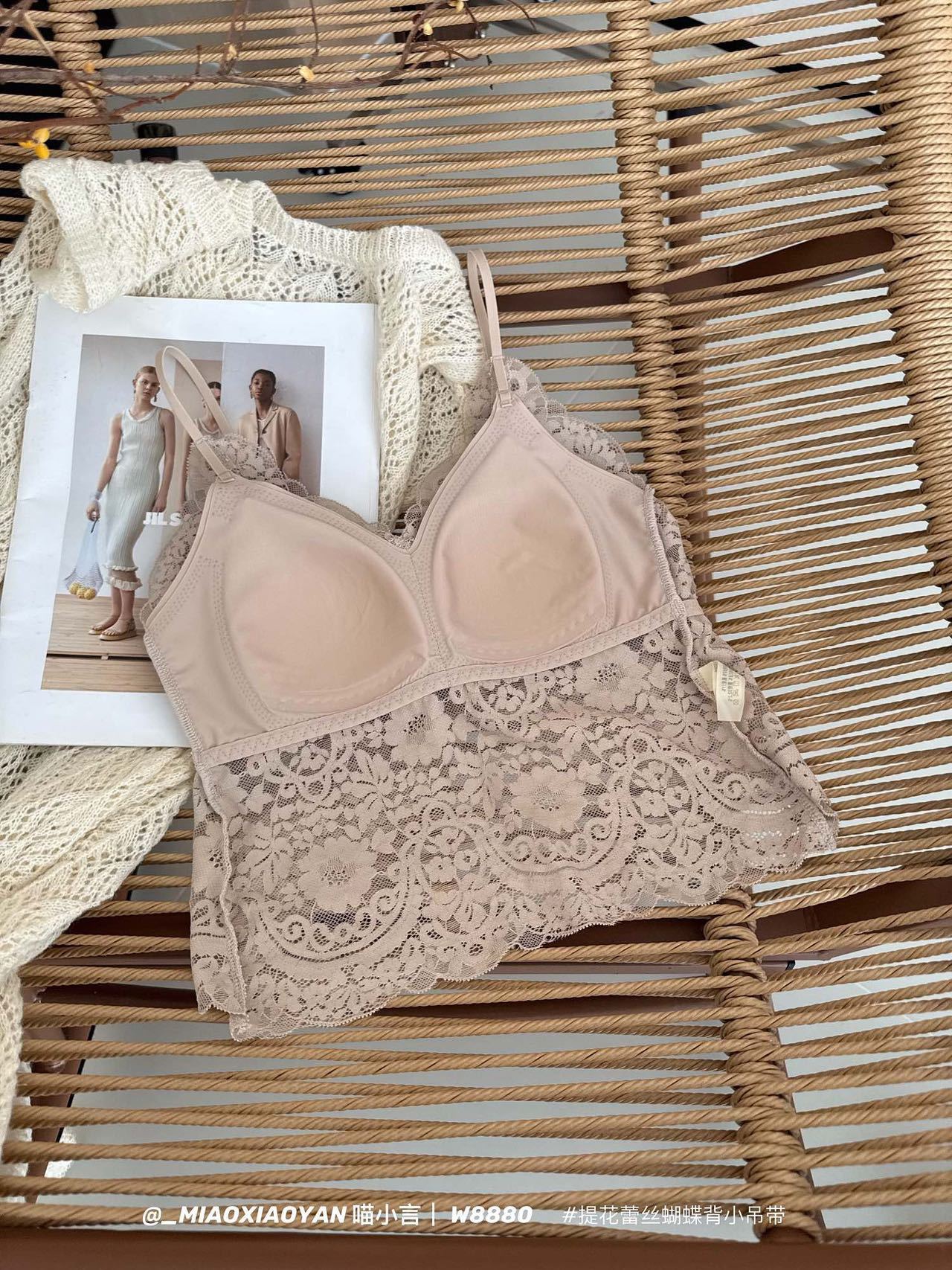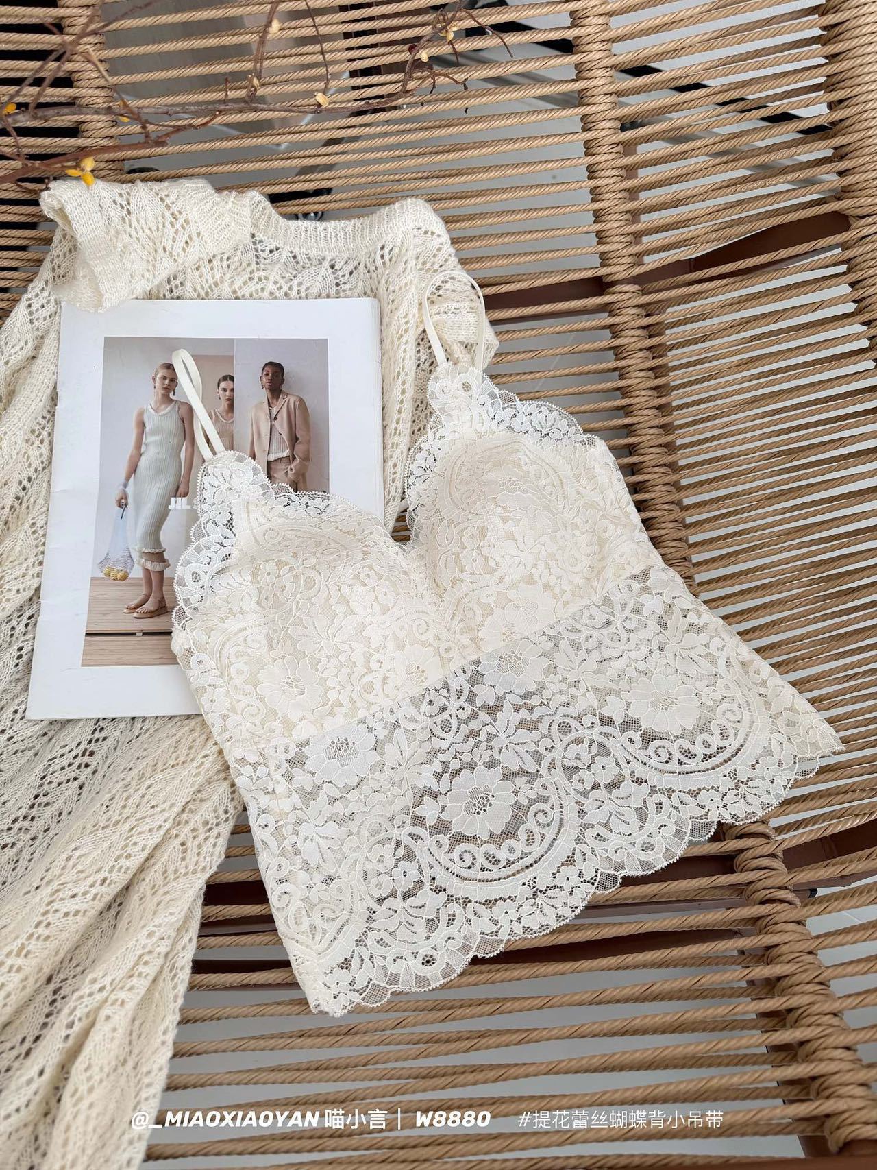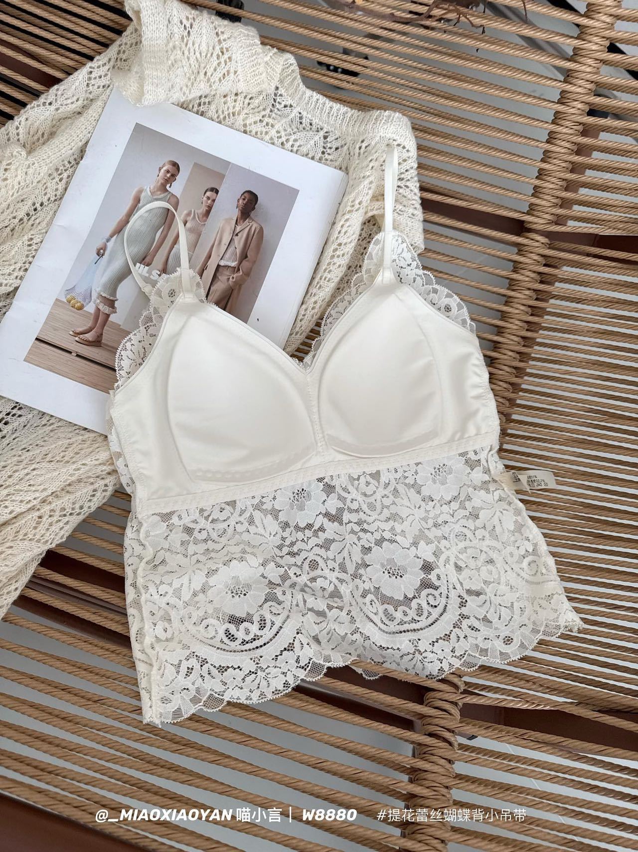 Meow Xiaoyan 자카드 레이스 나비 백 스트랩 W8880 가볍고 통기성이 뛰어난 소녀의 섹시한 순수한 욕망 아름다운 백 조끼
