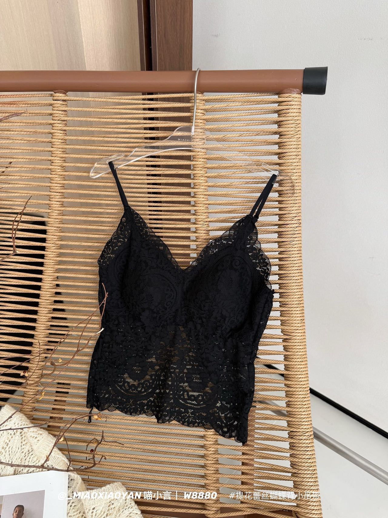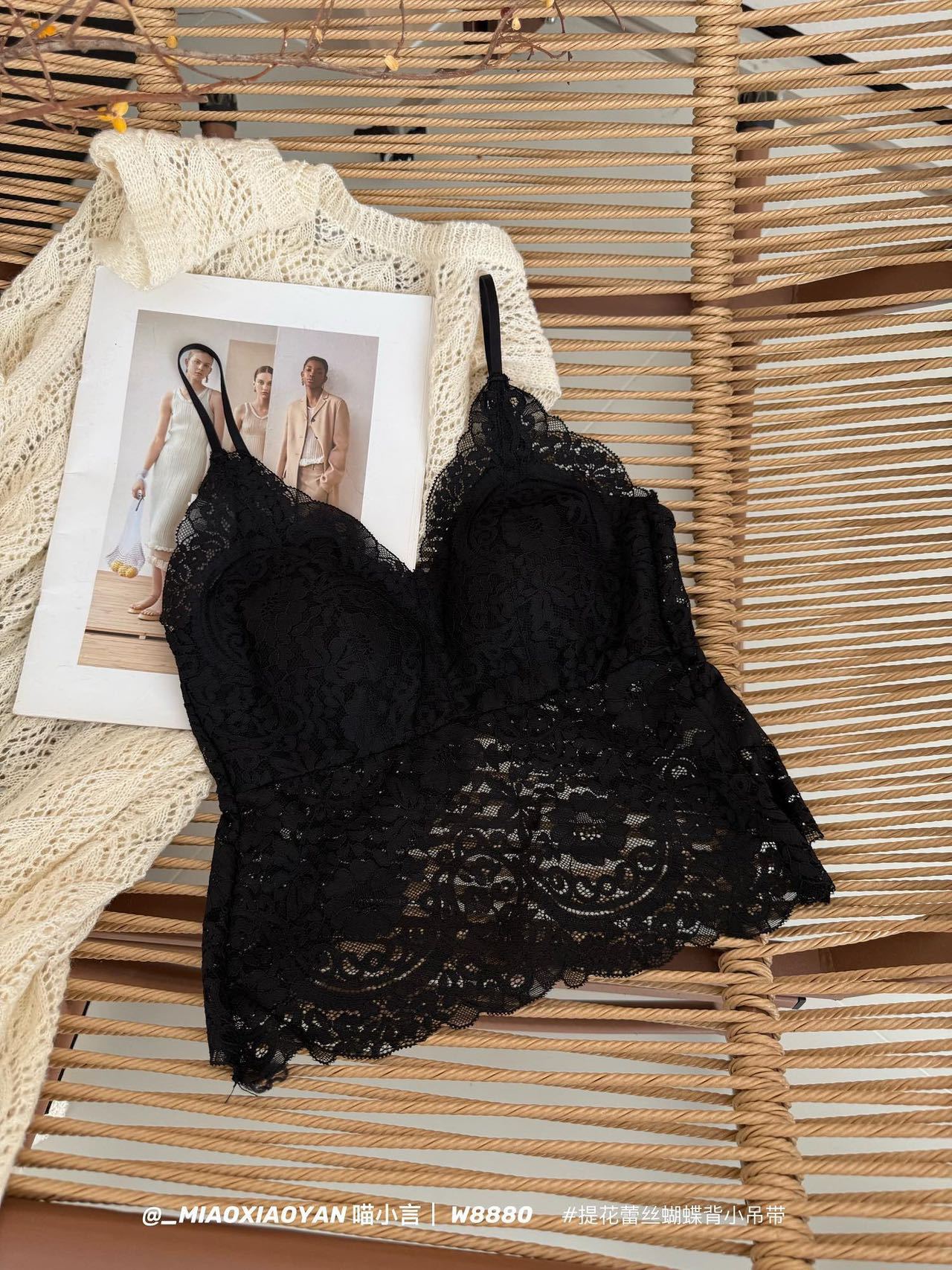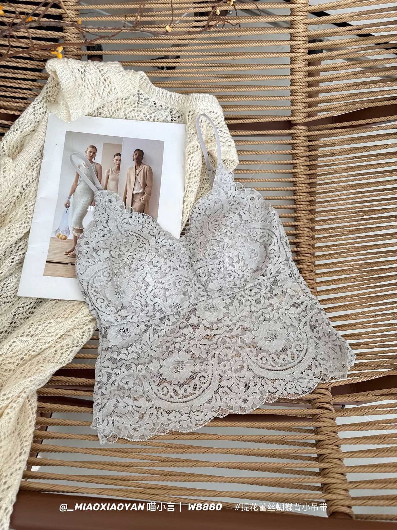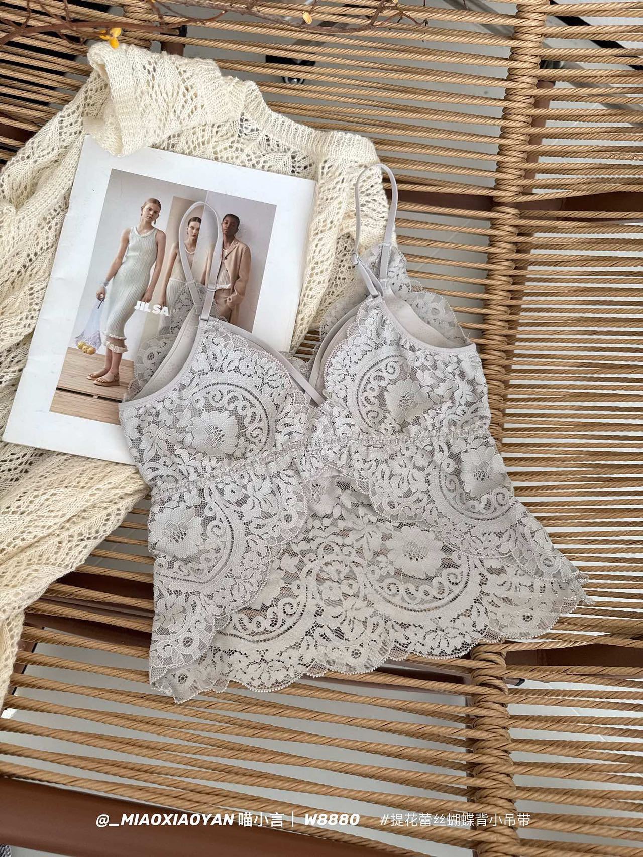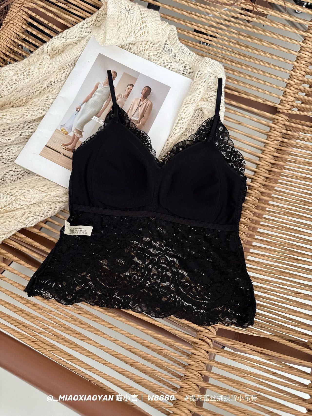 Meow Xiaoyan 자카드 레이스 나비 백 스트랩 W8880 가볍고 통기성이 뛰어난 소녀의 섹시한 순수한 욕망 아름다운 백 조끼