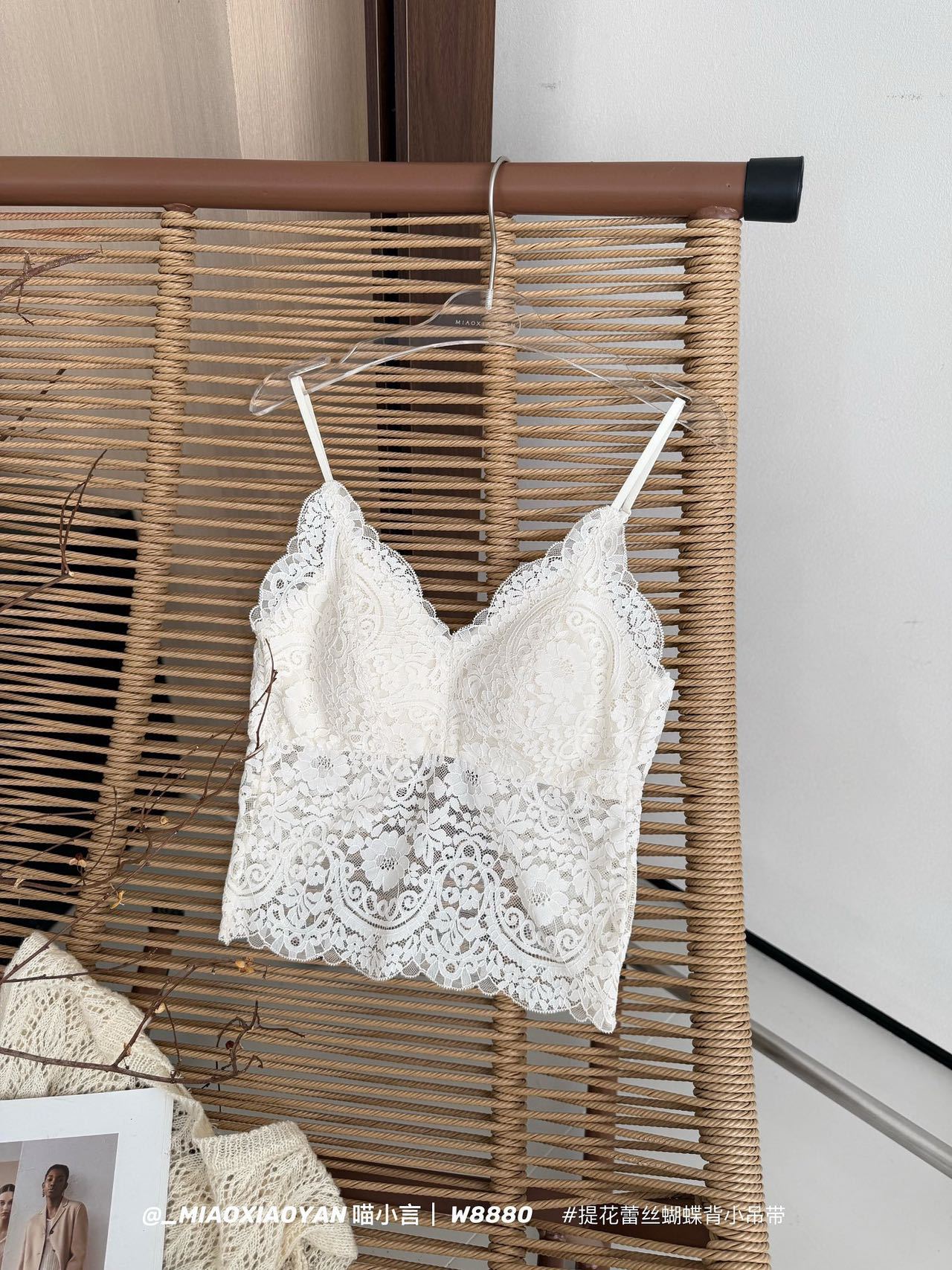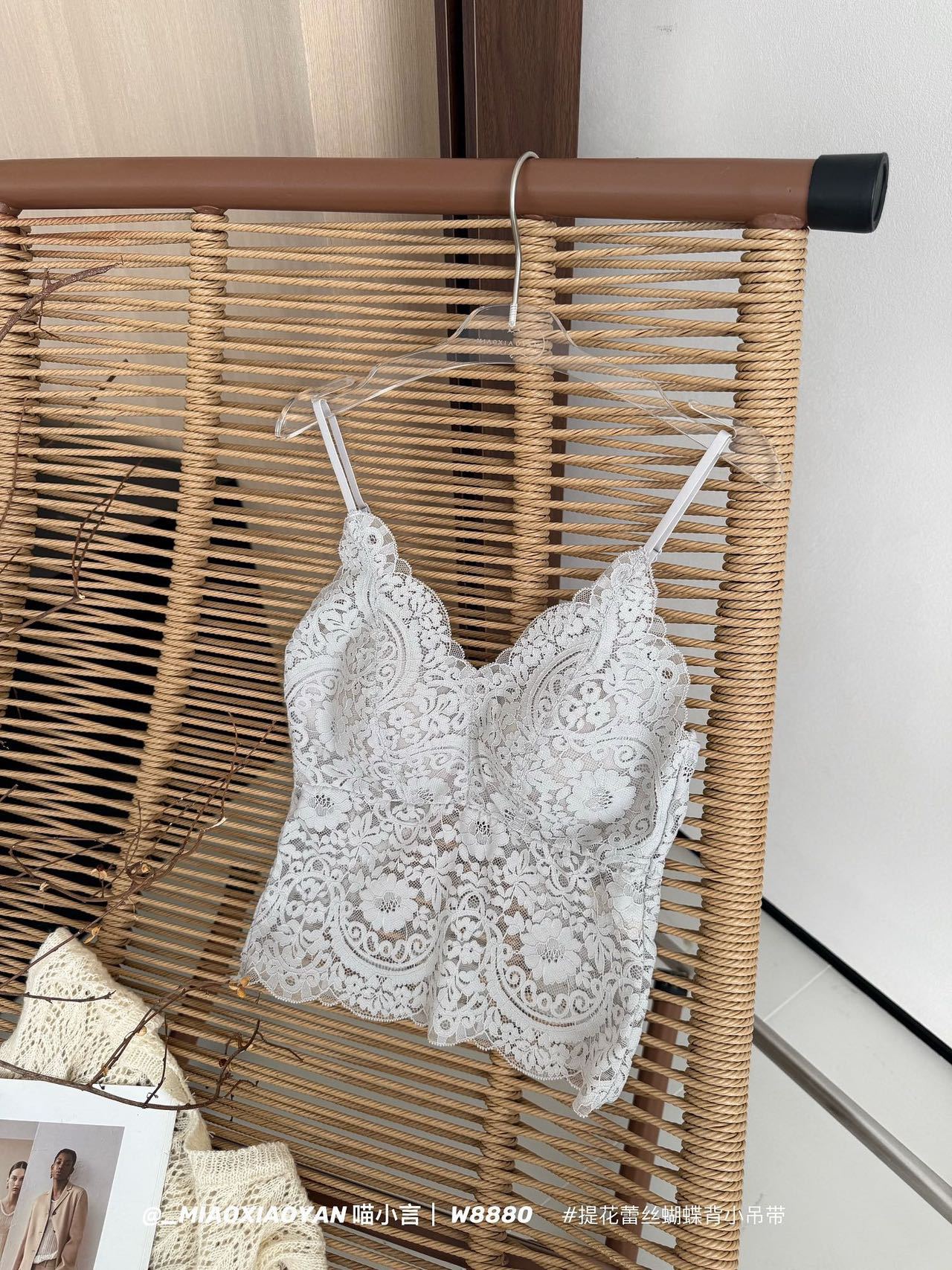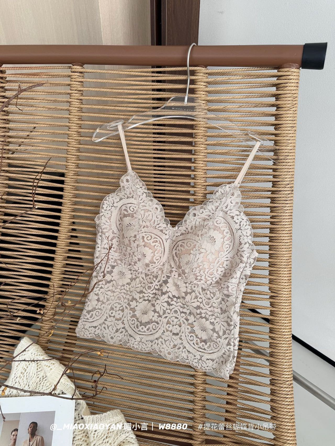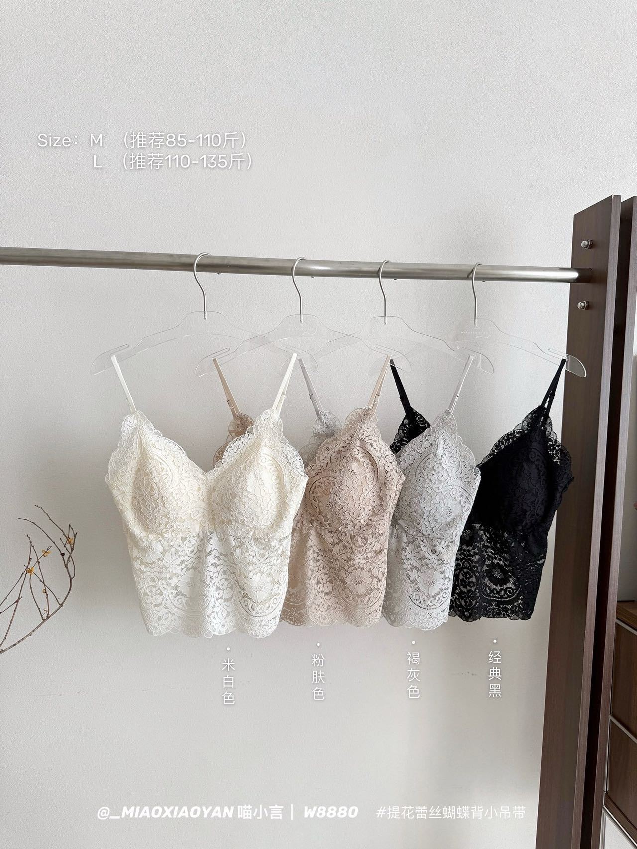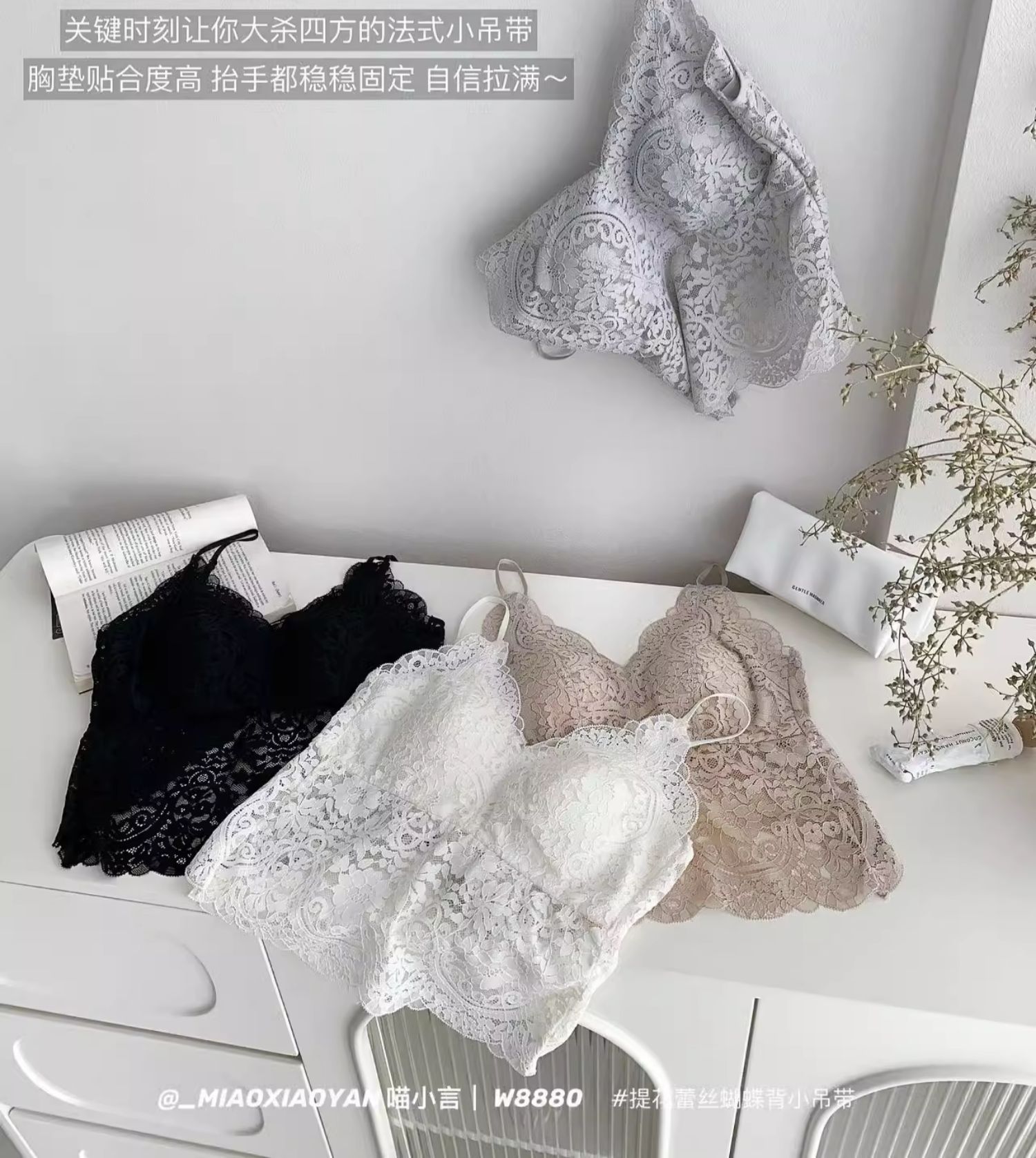 Meow Xiaoyan 자카드 레이스 나비 백 스트랩 W8880 가볍고 통기성이 뛰어난 소녀의 섹시한 순수한 욕망 아름다운 백 조끼