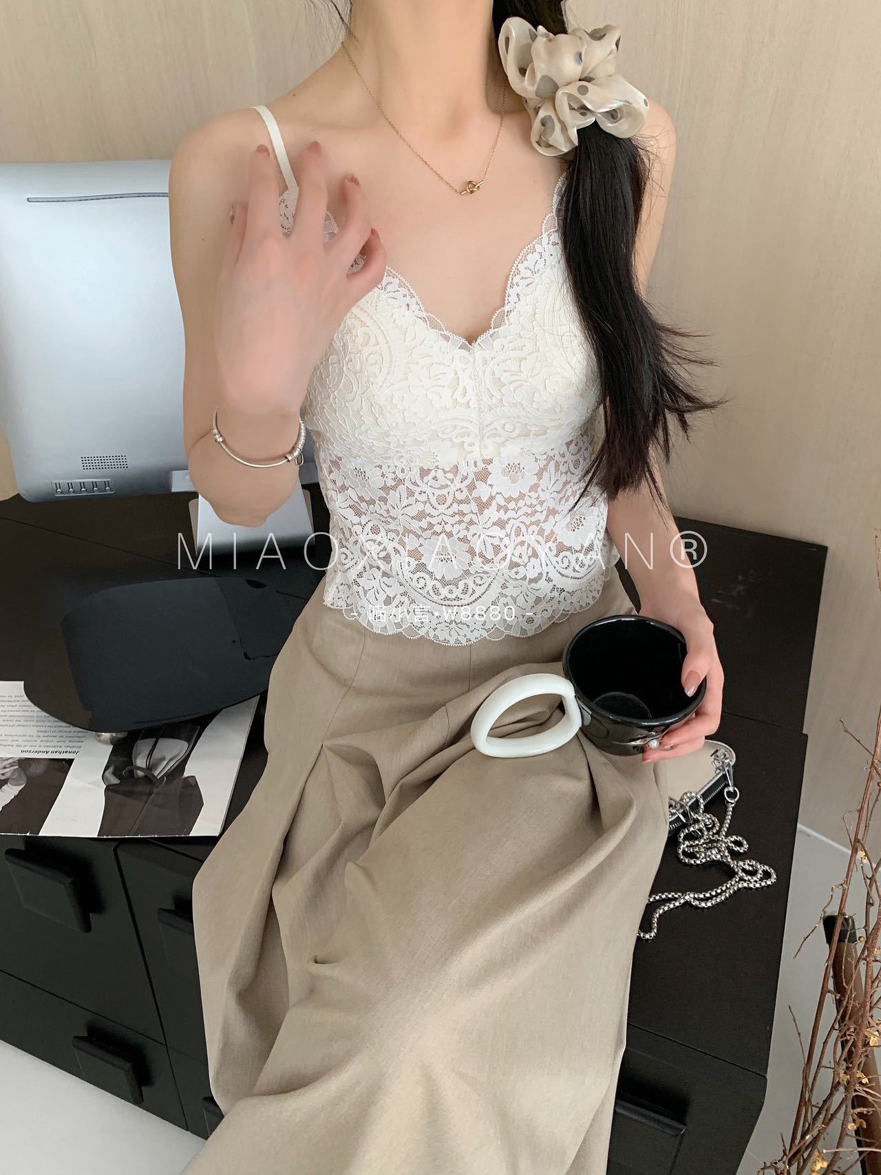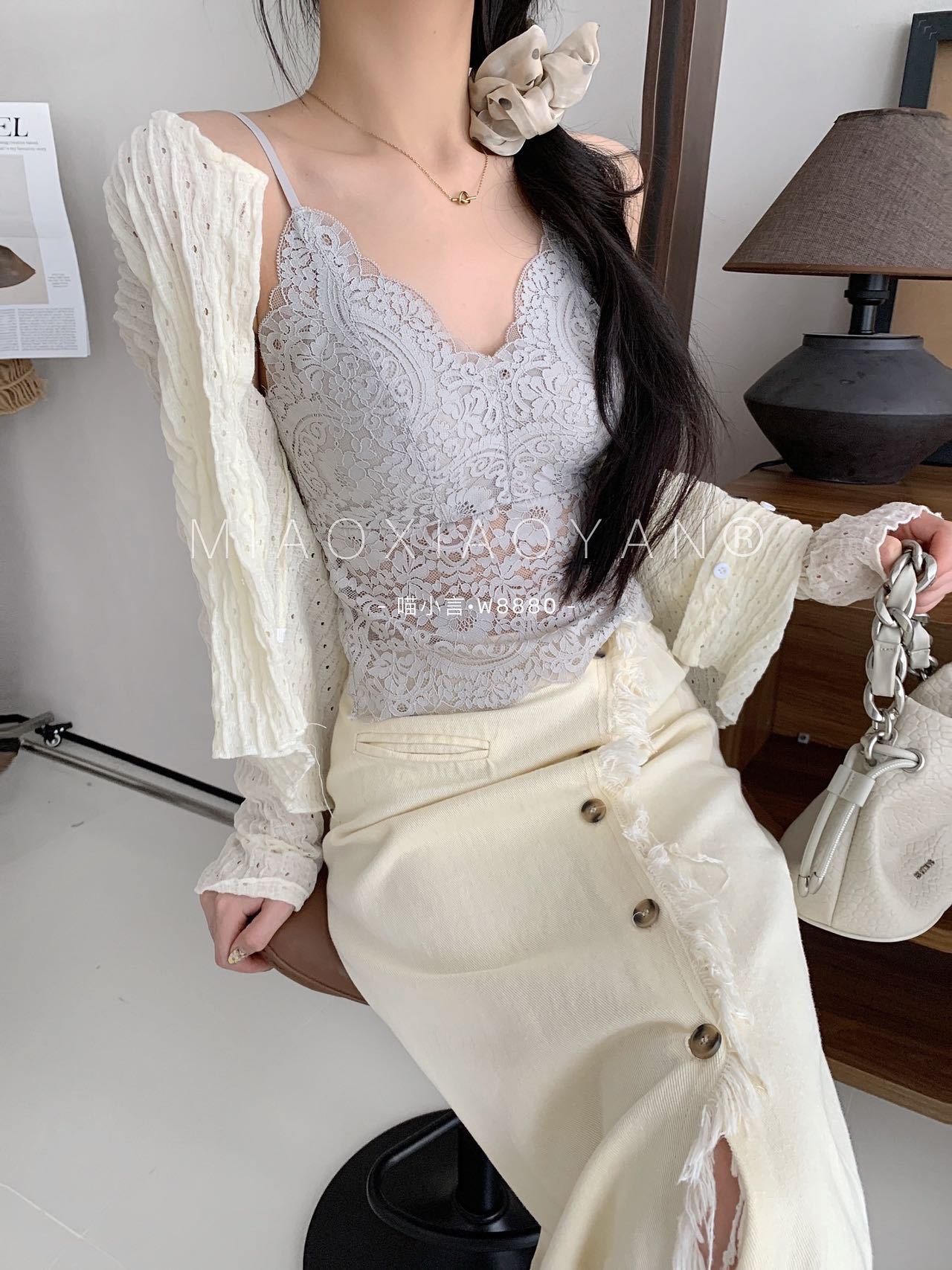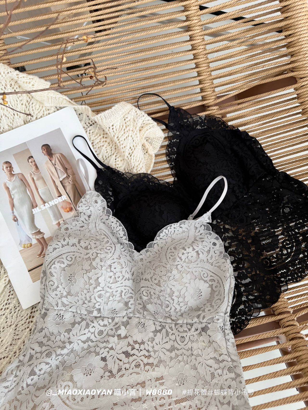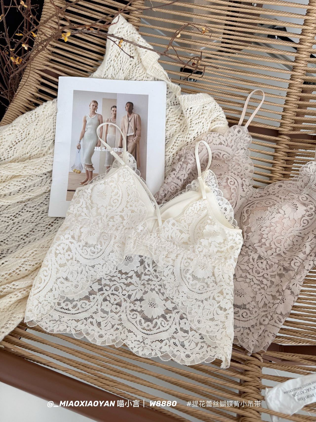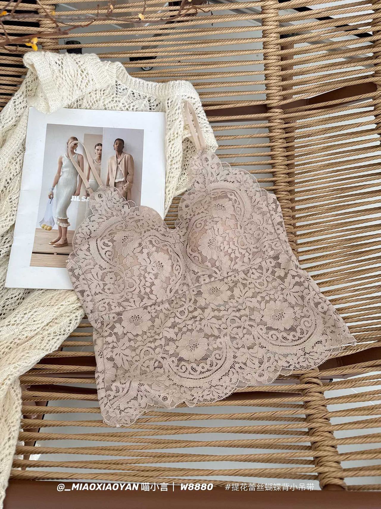 Meow Xiaoyan 자카드 레이스 나비 백 스트랩 W8880 가볍고 통기성이 뛰어난 소녀의 섹시한 순수한 욕망 아름다운 백 조끼