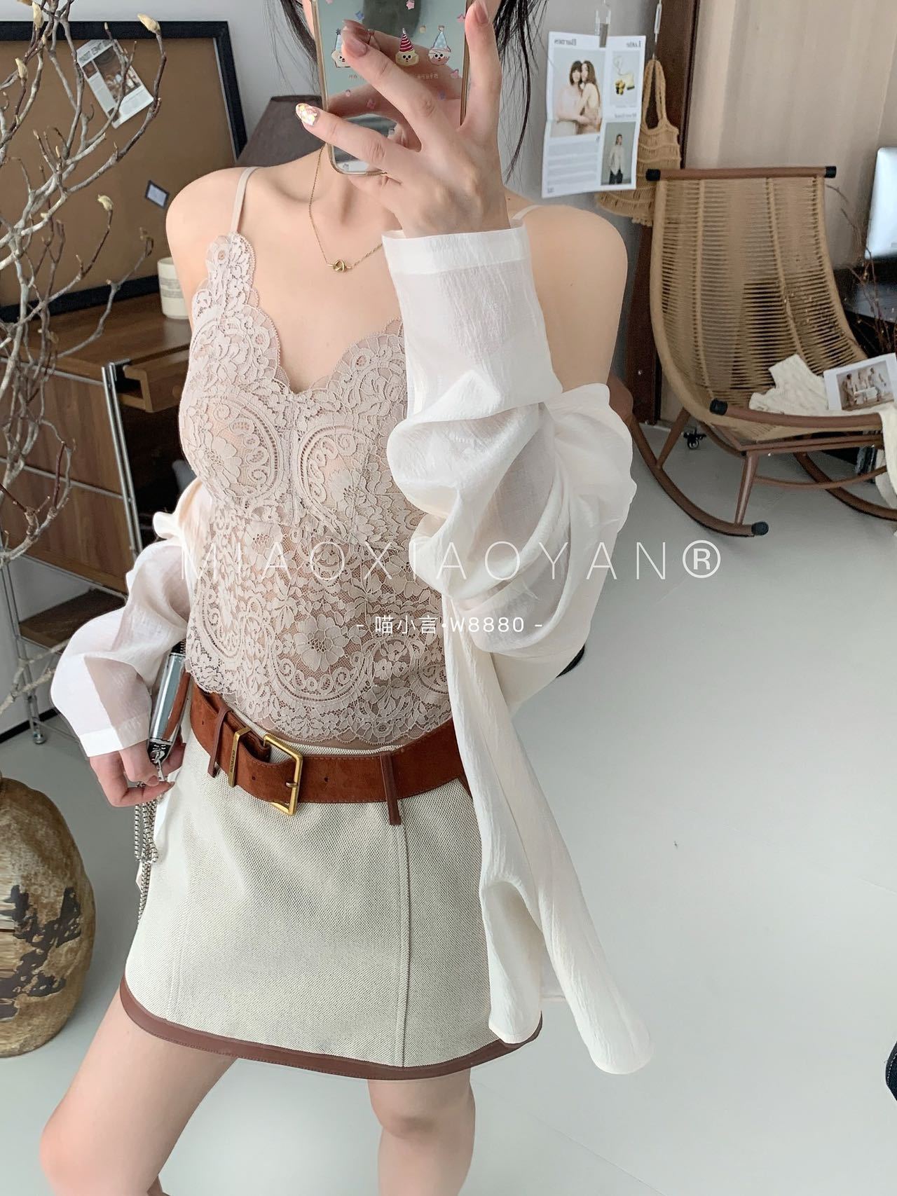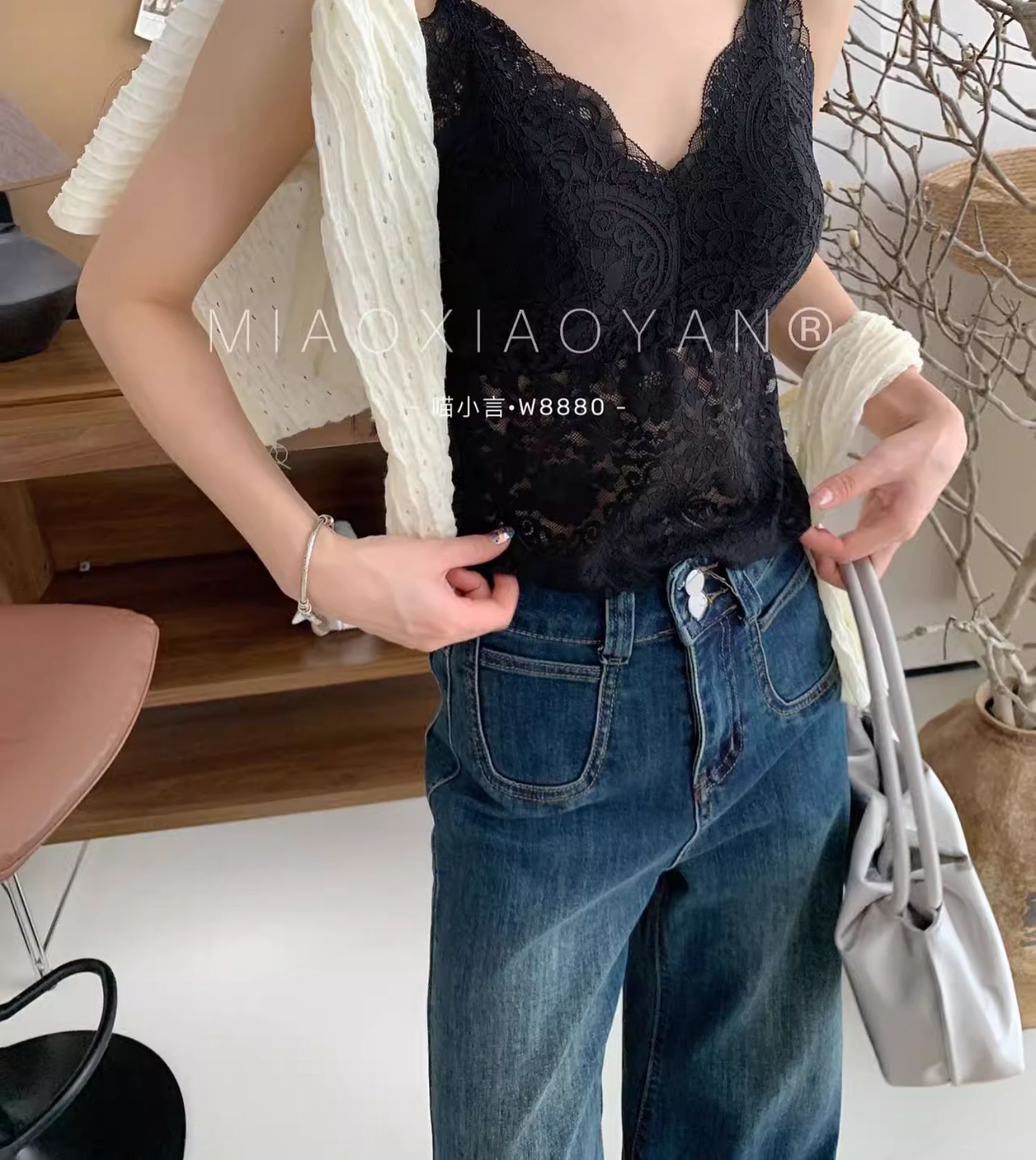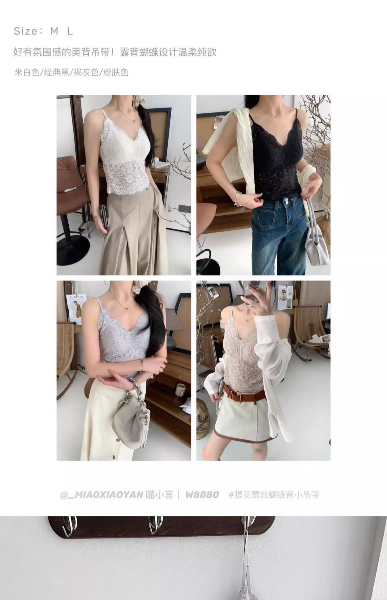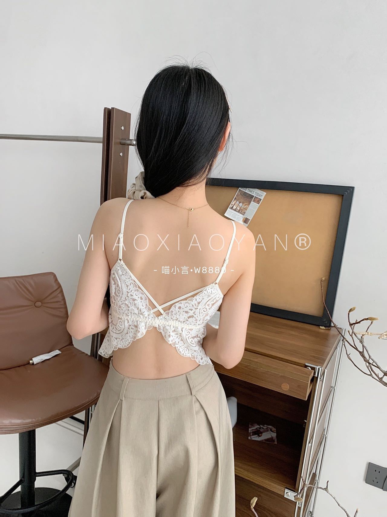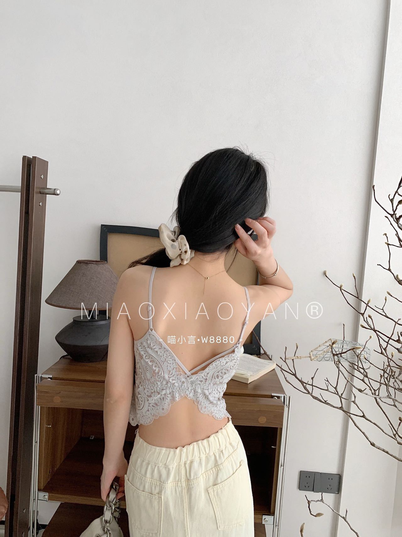 Meow Xiaoyan 자카드 레이스 나비 백 스트랩 W8880 가볍고 통기성이 뛰어난 소녀의 섹시한 순수한 욕망 아름다운 백 조끼스토어 가기