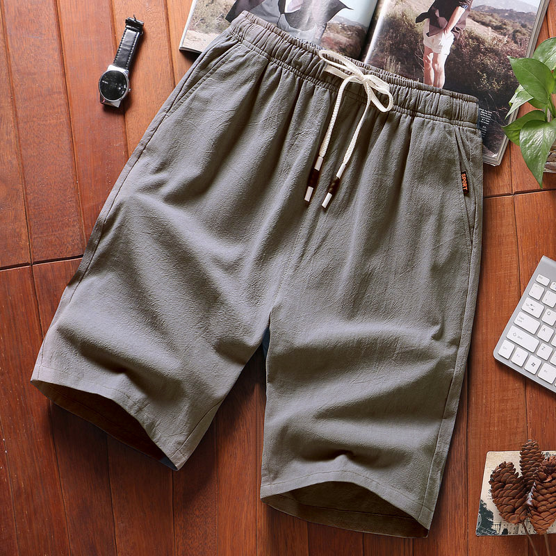 무료 배송 남성용 여름 반바지, 순면 반바지, 얇은 루즈한 스포츠 바지, 남성용 중간 길이 바지, 면 및 린넨 비치