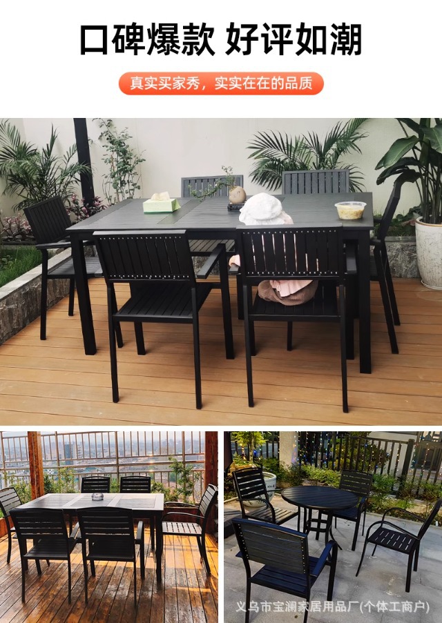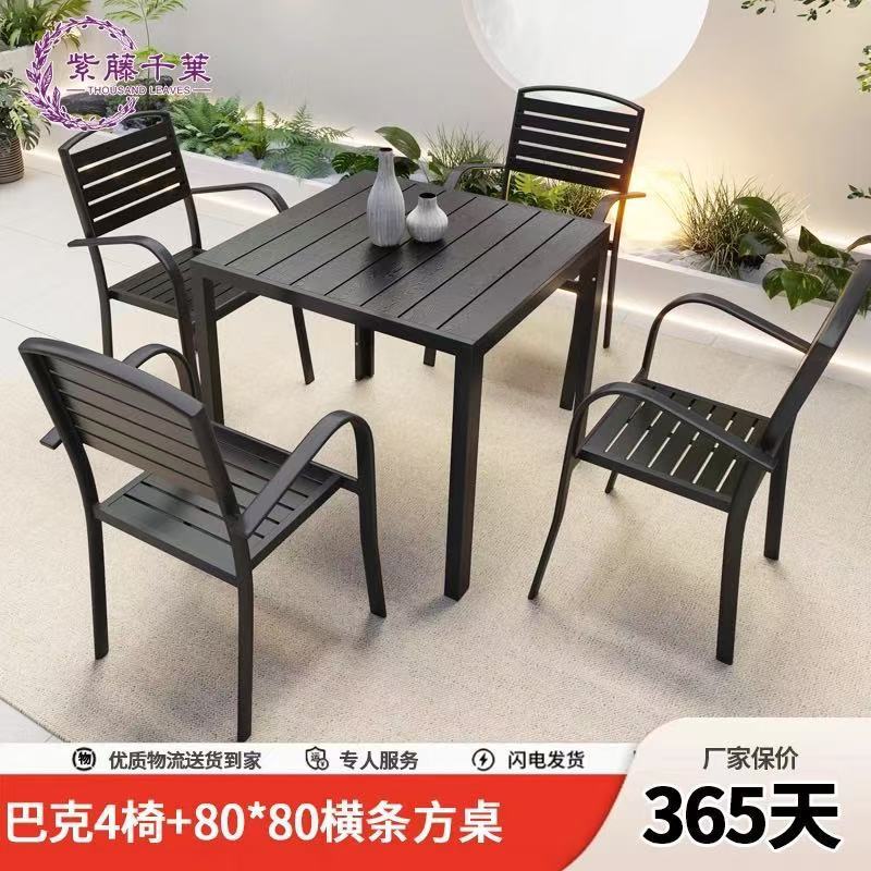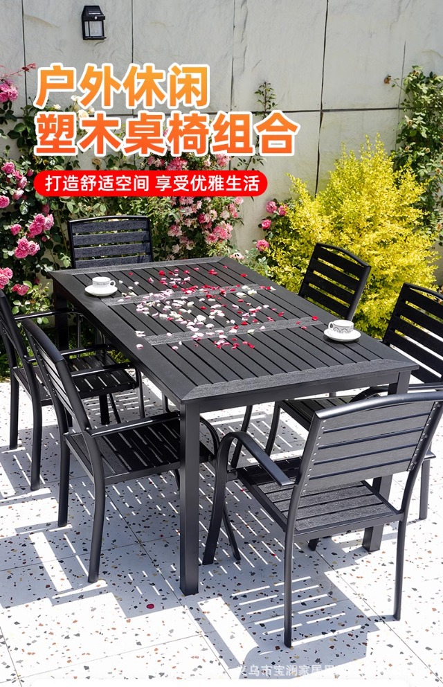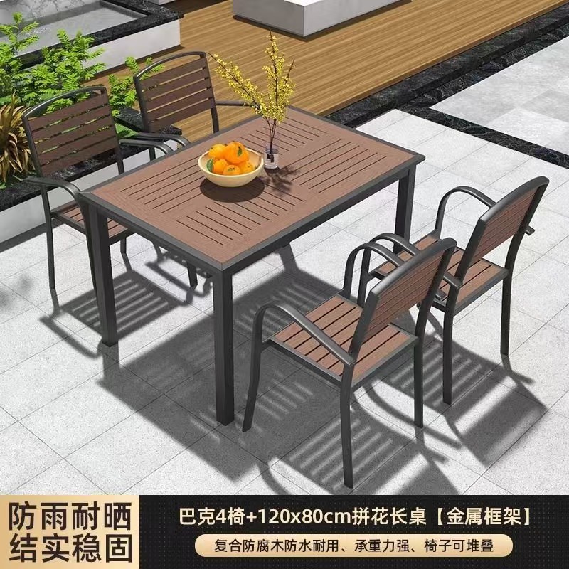 야외 안뜰 플라스틱 목재 테이블과 의자, 정원 빌라 긴 테이블, 방수 및 부식 방지 목재, 간단한 레저 야외 식탁과 의자 조합스토어 가기