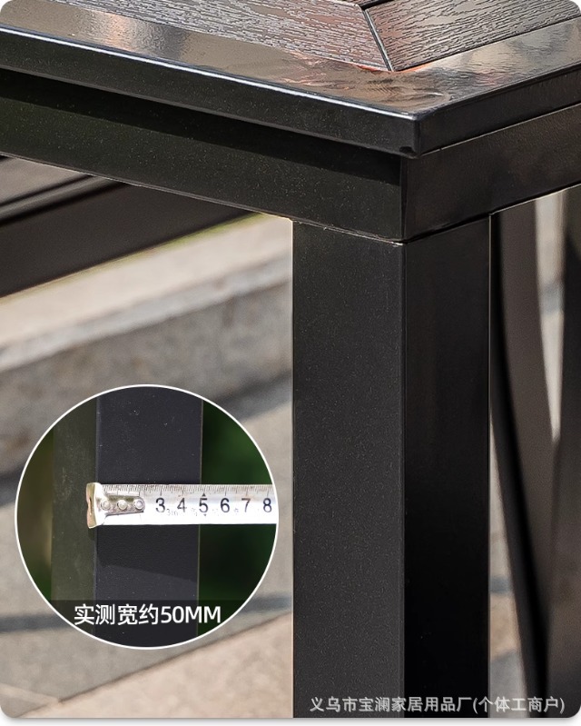 • [커피색] 플라스틱 나무 철제 벤치 의자 4개 + 120*80cm 긴 쪽판 테이블