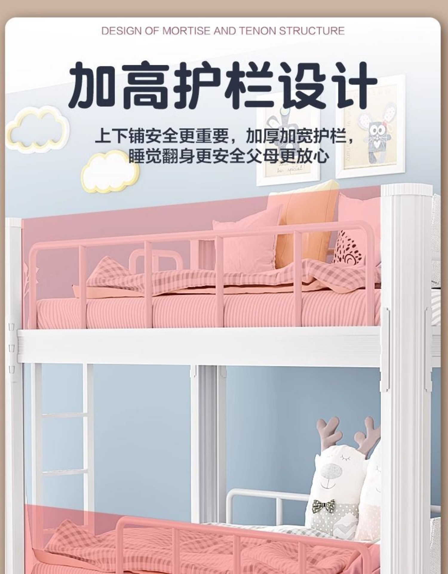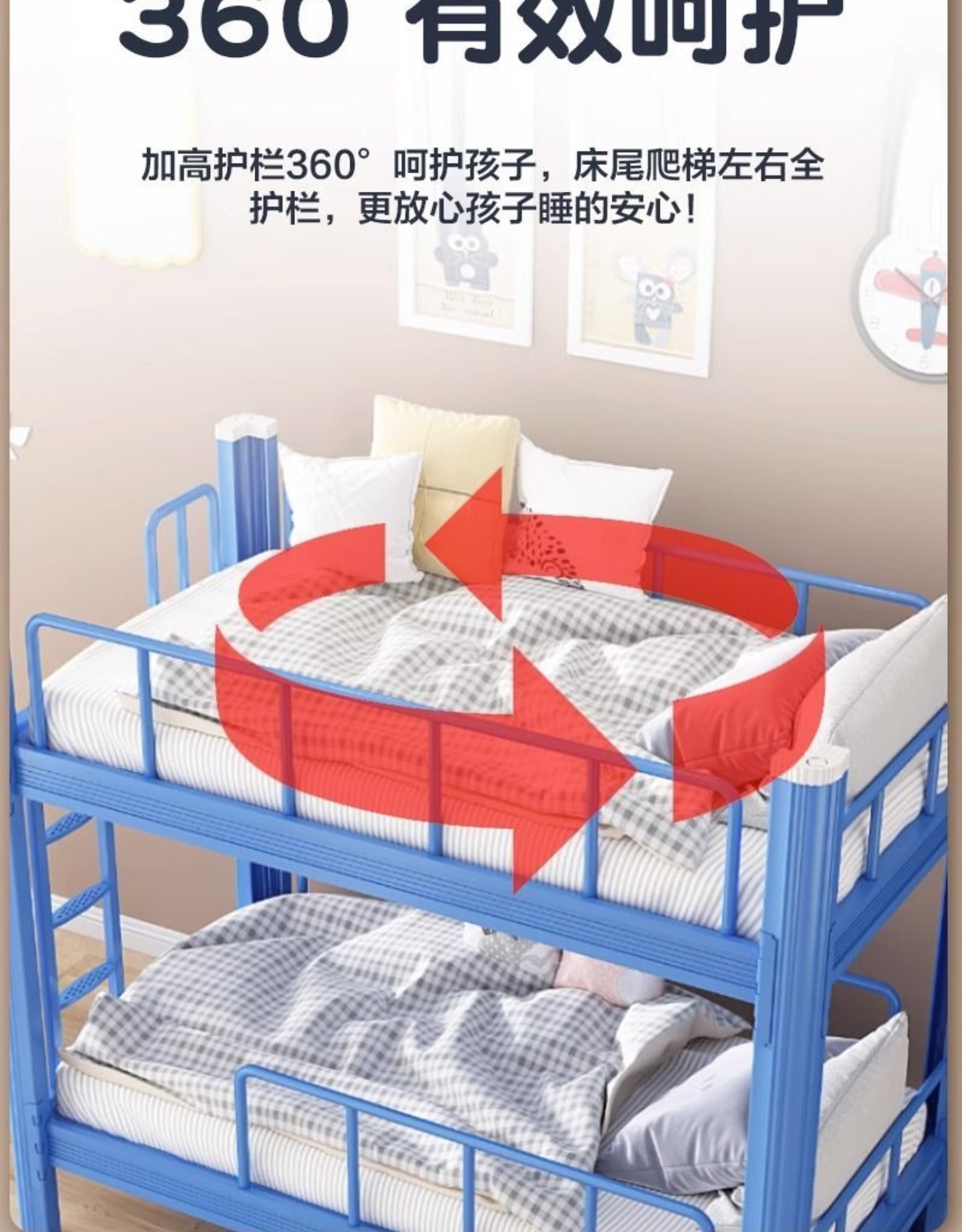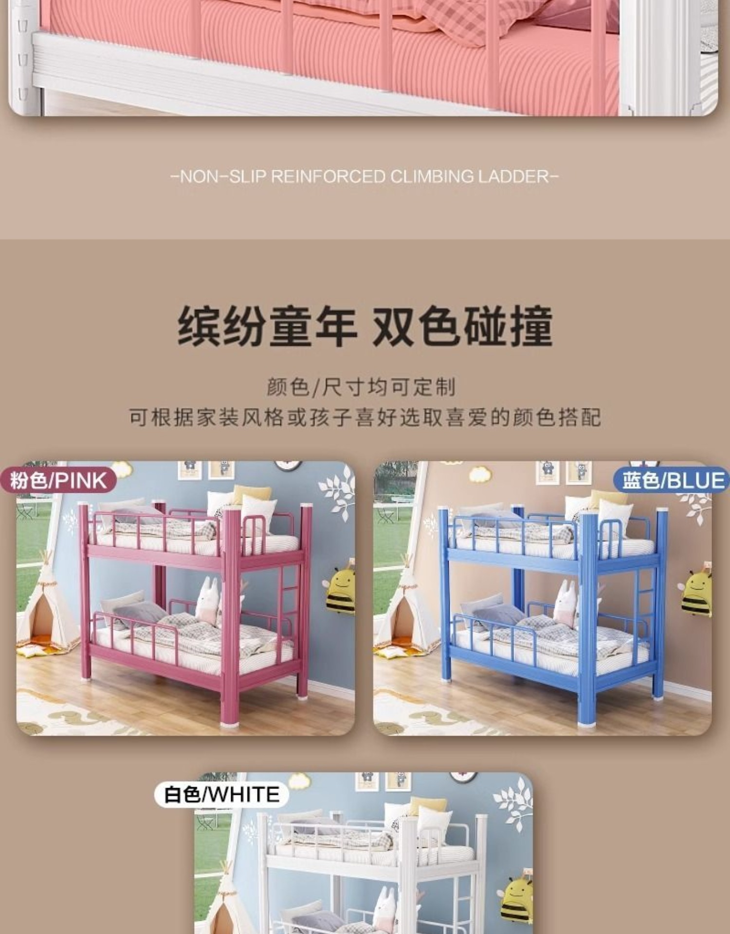 r^아침식사 보육실 이층 철제 프레임 침대 유치원 초등학생 기숙사 이층 침대 소형 가정 어린이