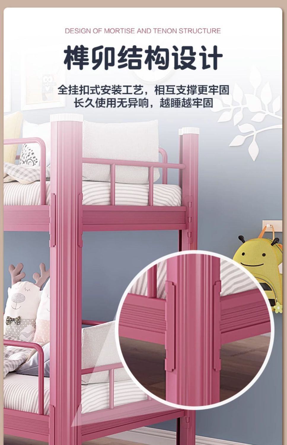 r^아침식사 보육실 이층 철제 프레임 침대 유치원 초등학생 기숙사 이층 침대 소형 가정 어린이스토어 가기