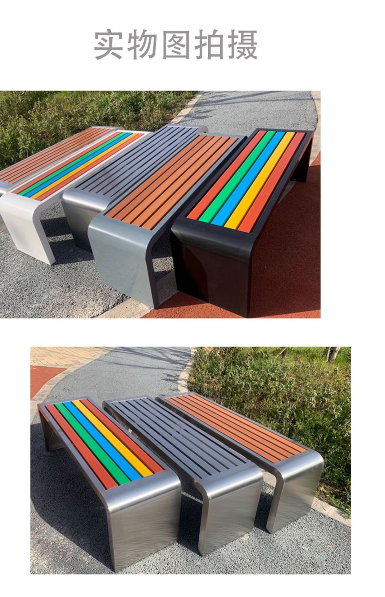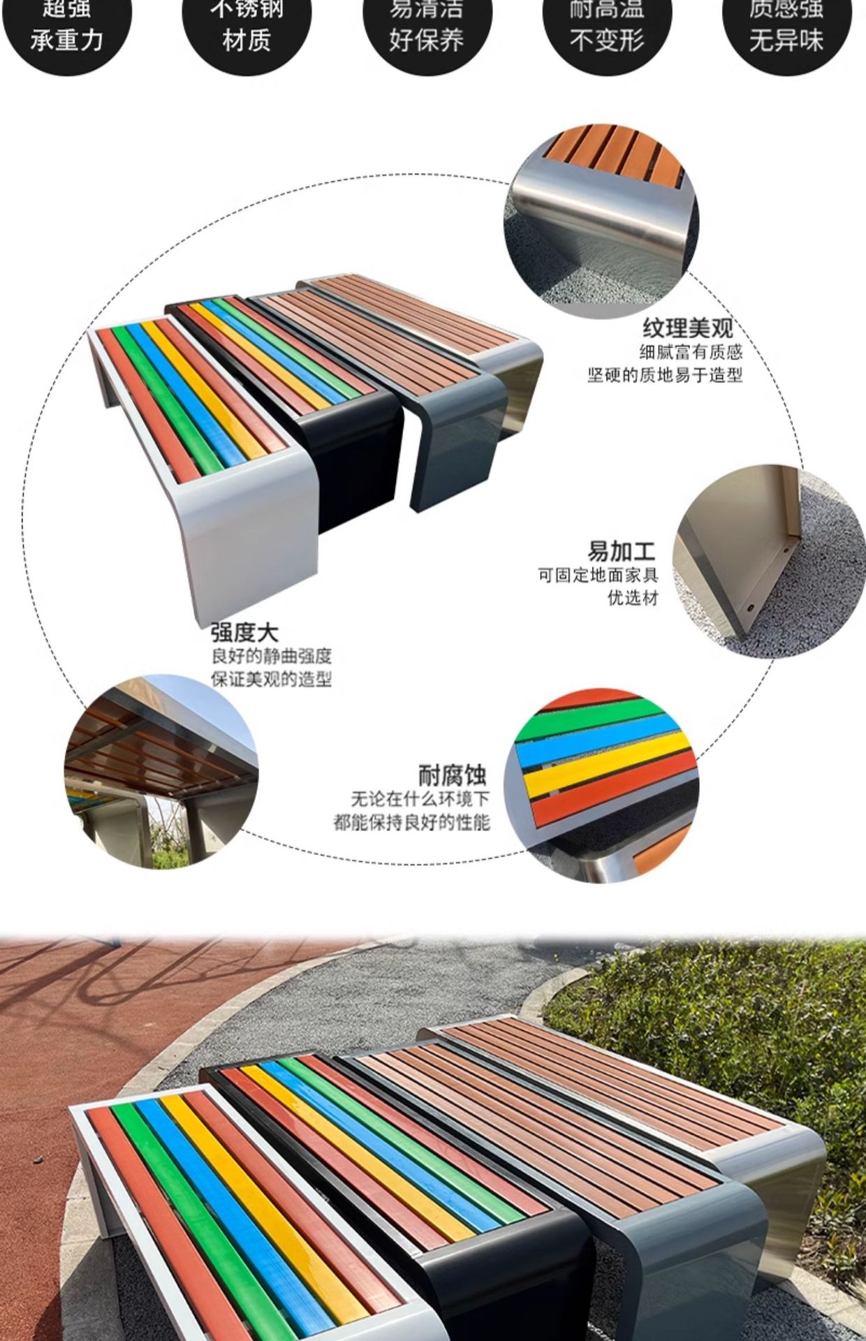 r^공원 의자 야외 안뜰 부식 방지 플라스틱 목재 긴 의자 야외 벤치 광장 벤치 스테인레스 스틸 공공 좌석스토어 가기