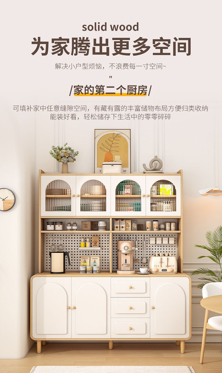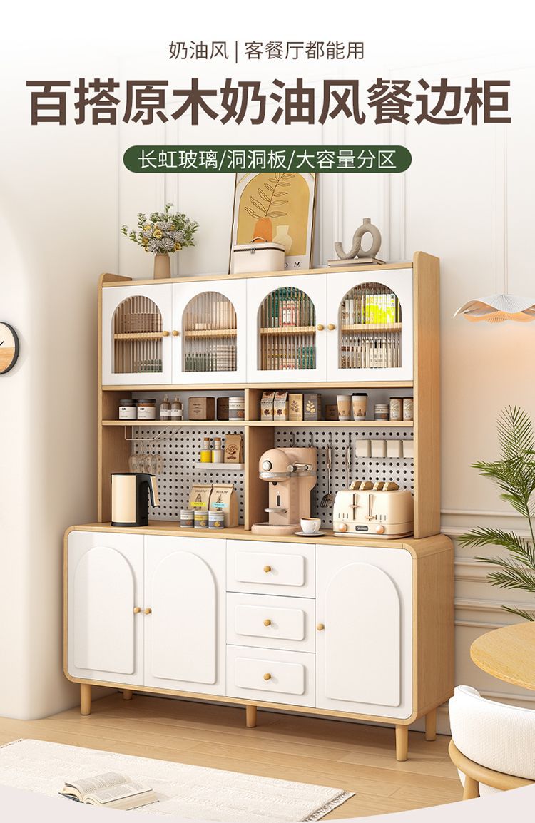 원목 크림 스타일 찬장 벽 일체형 수납 캐비닛 주방 및 레스토랑 다기능 수납 캐비닛 와인 L^스토어 가기