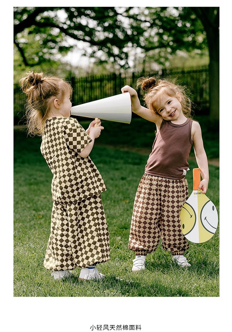 남녀 아기용 가볍고 통기성 좋은 모기 방지 바지 2026 북유럽 스타일 아동 바지 유아용 레트로 체크무늬 긴바지스토어 가기