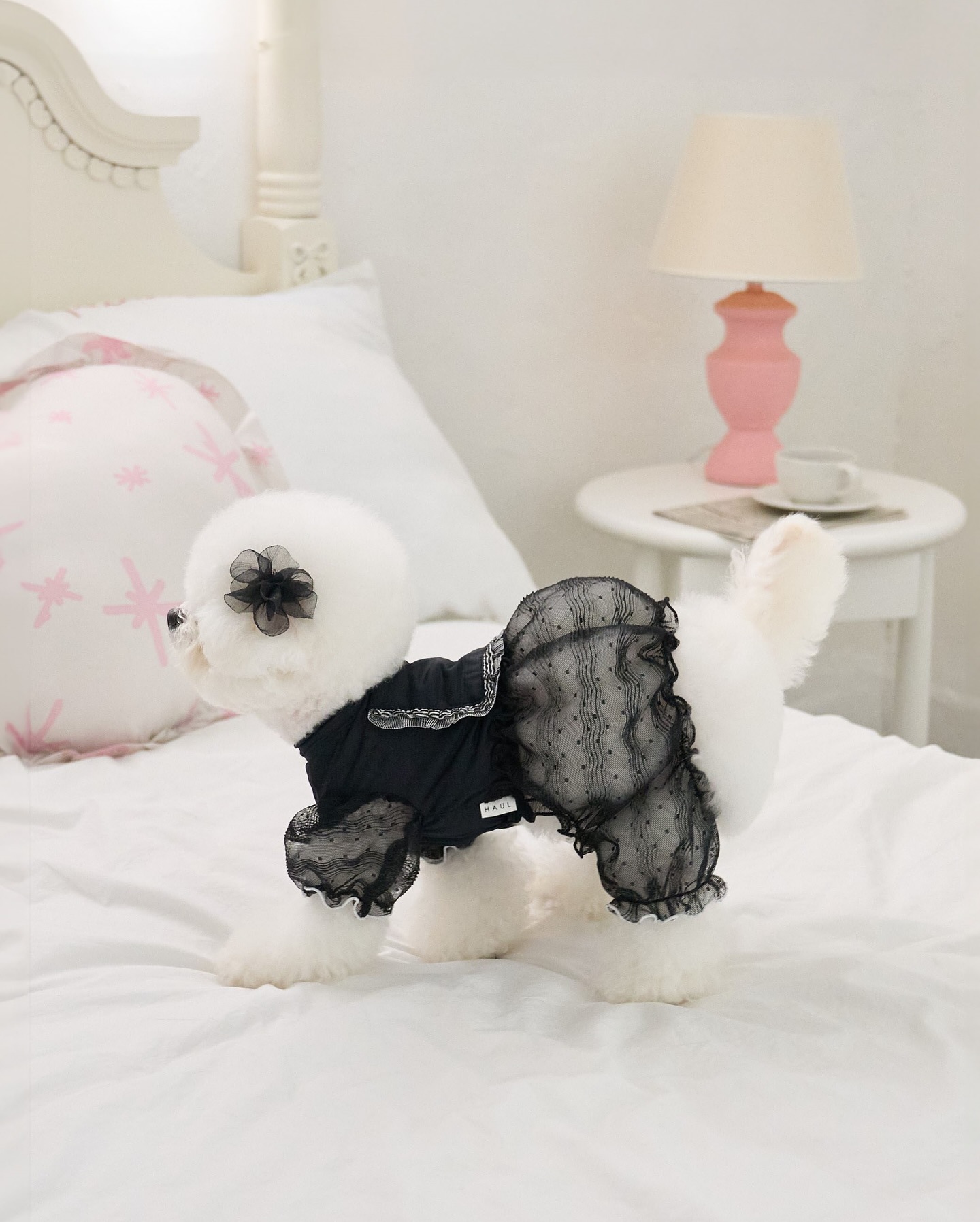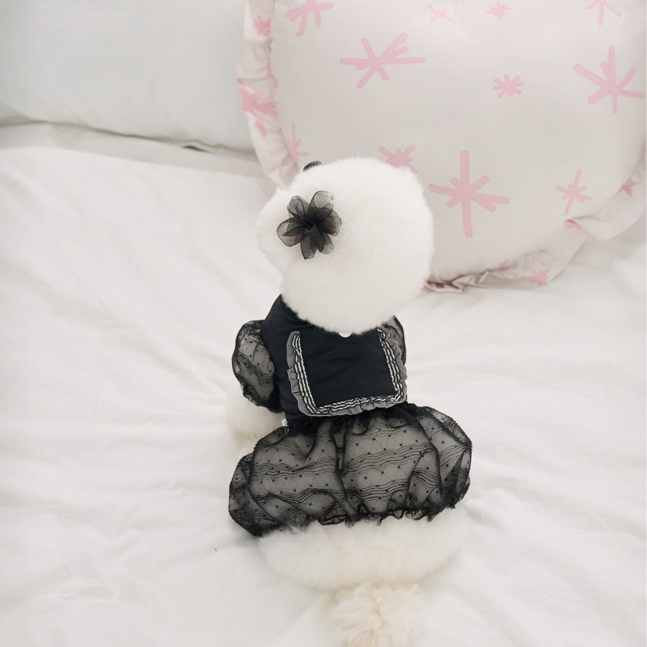 애완 동물 봄과 여름 네발 후드 레이스 스커트 개 옷 일본과 한국 스타일 얇은 테디 비숑 슈나우저 고양이스토어 가기