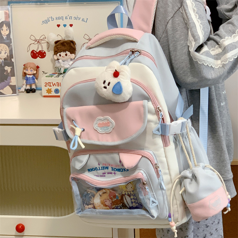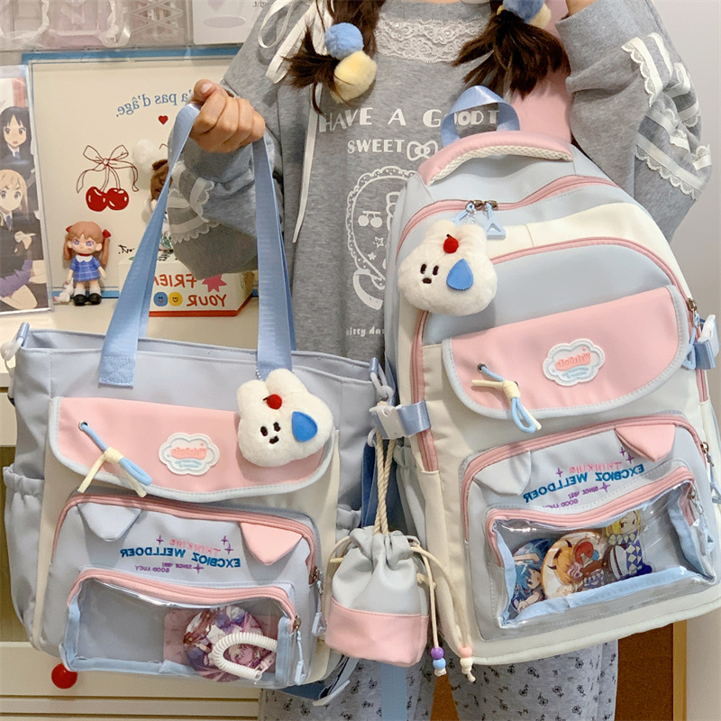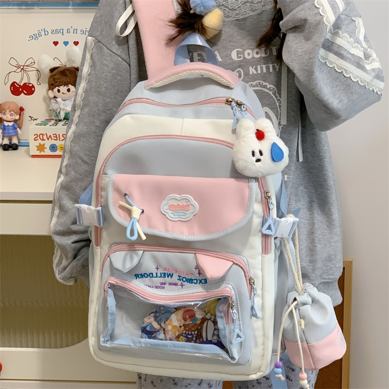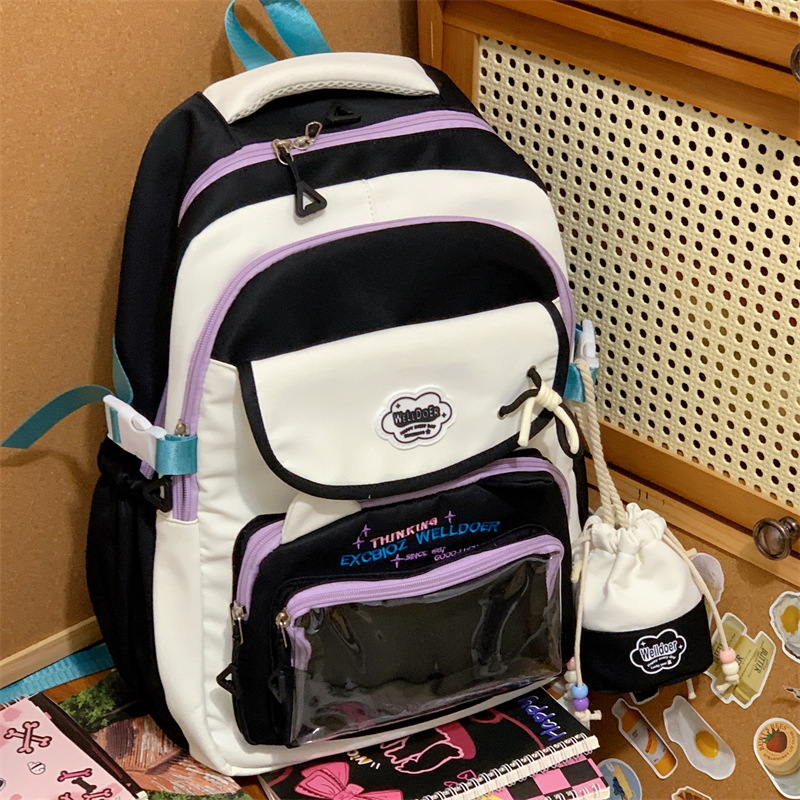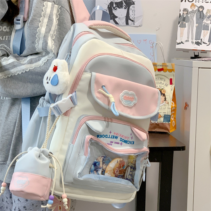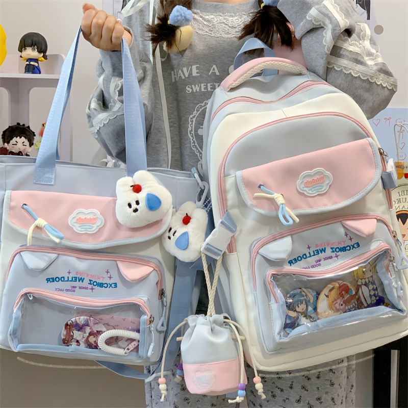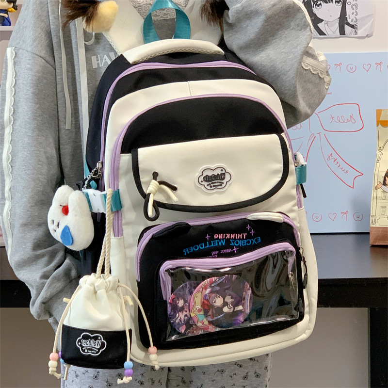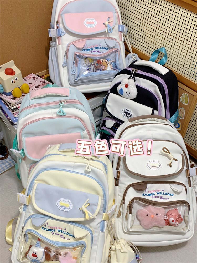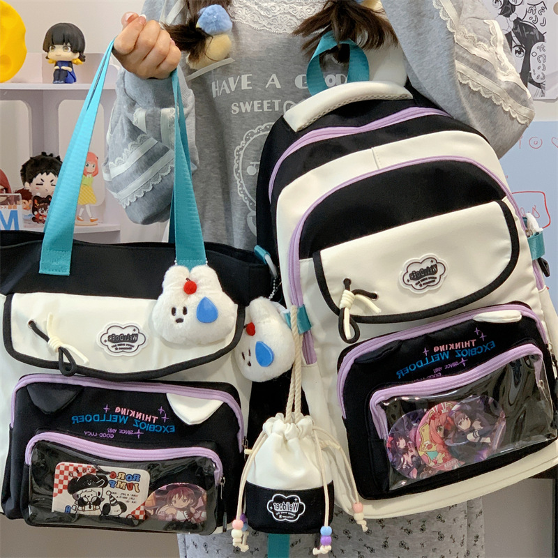 여성용 새로운 대비색 책가방, 고급스러운 대학 스타일, 달콤한 소녀의 통증 가방, 초중등 학생을 위한 투피스 백팩스토어 가기