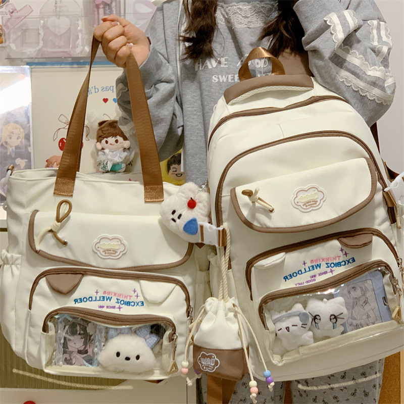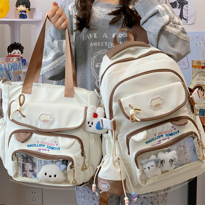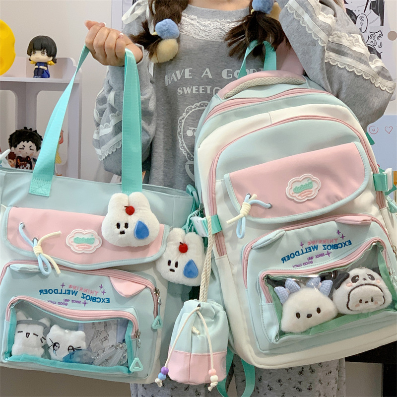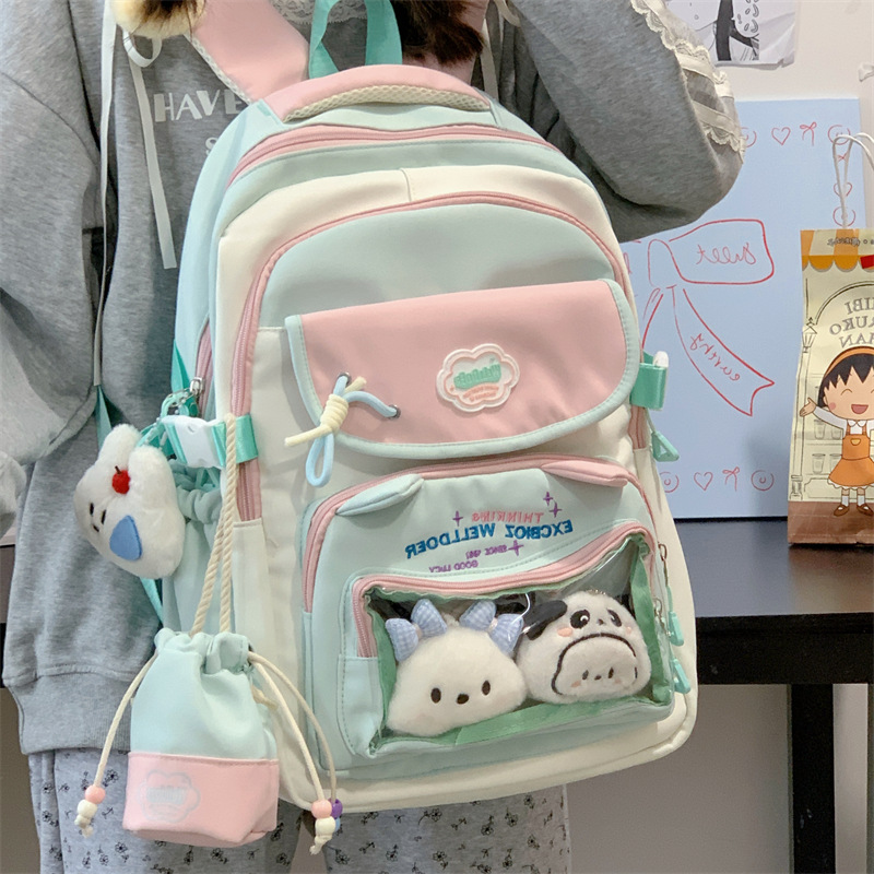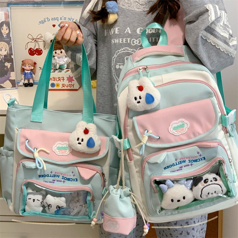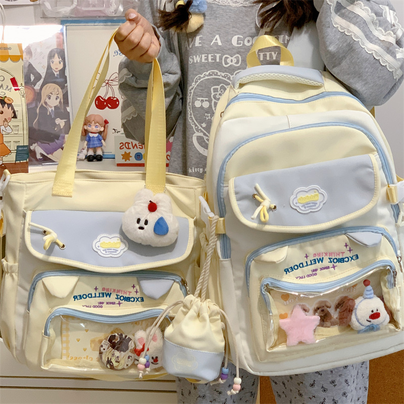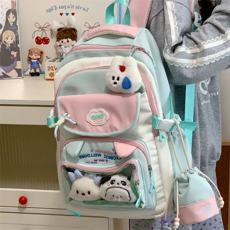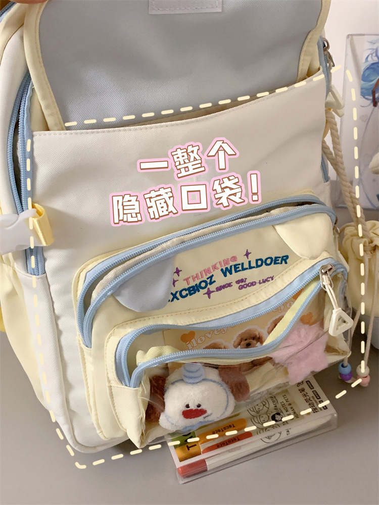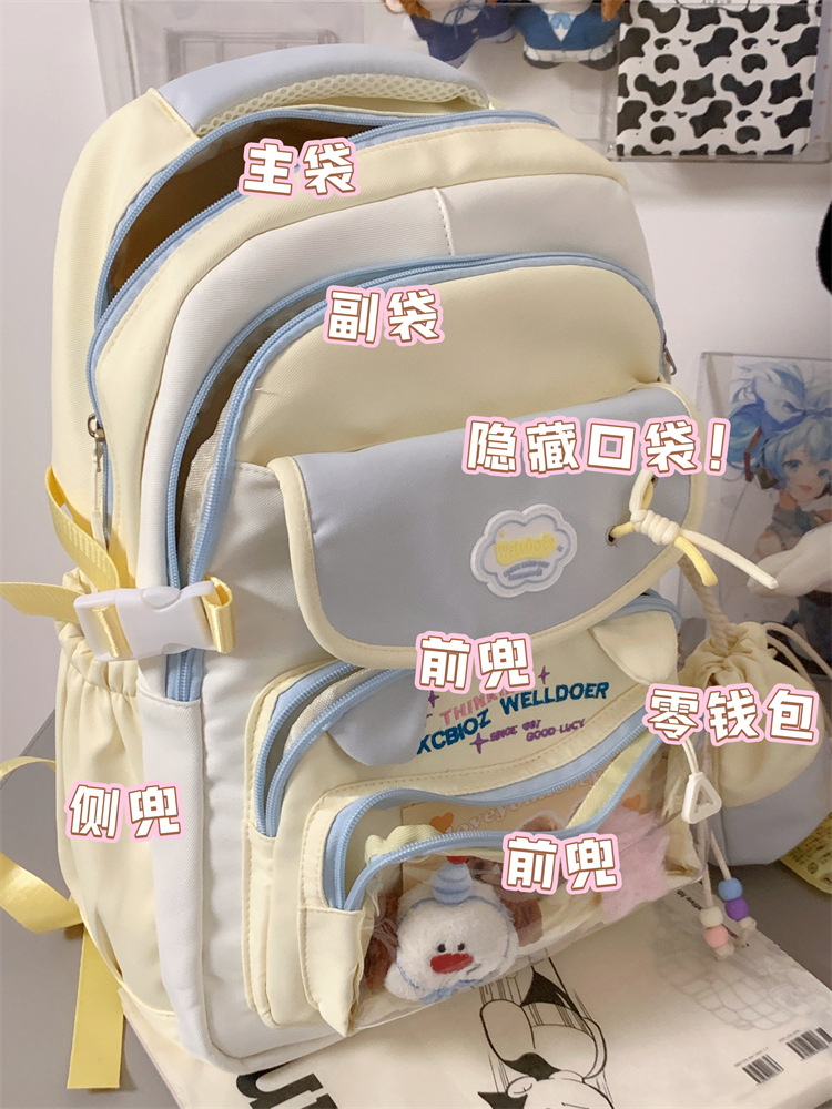 여성용 새로운 대비색 책가방, 고급스러운 대학 스타일, 달콤한 소녀의 통증 가방, 초중등 학생을 위한 투피스 백팩스토어 가기