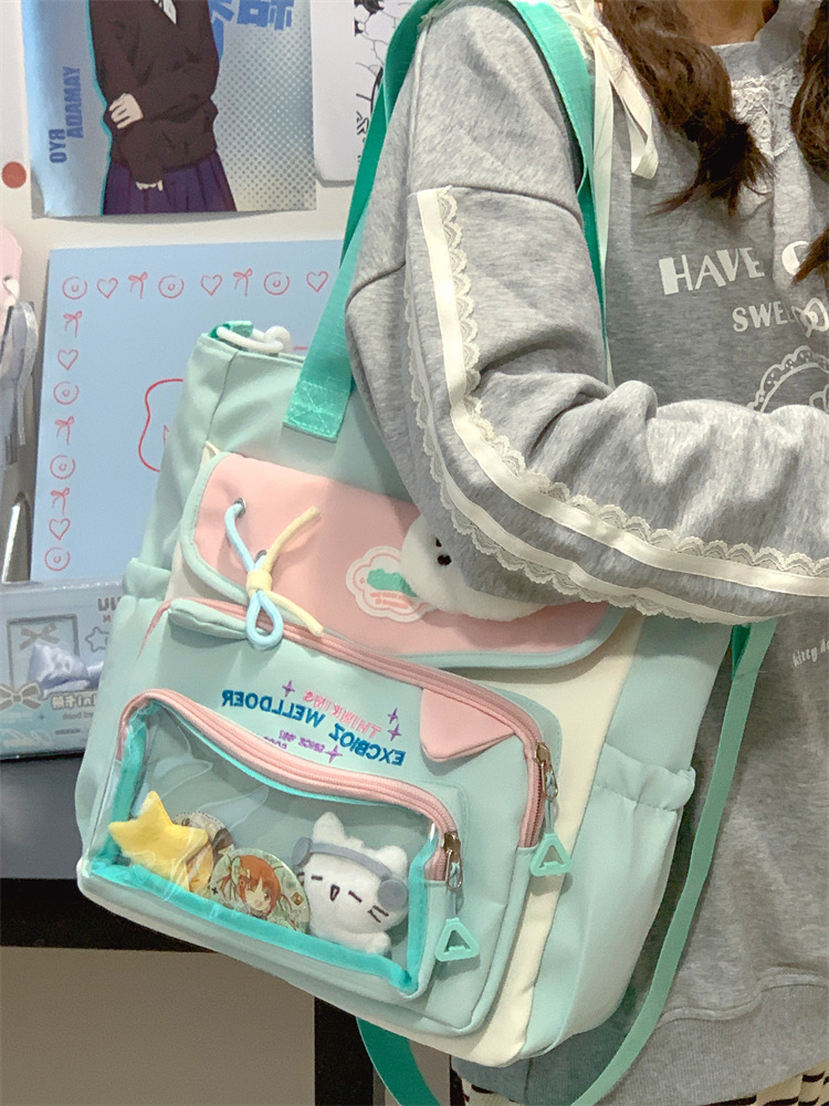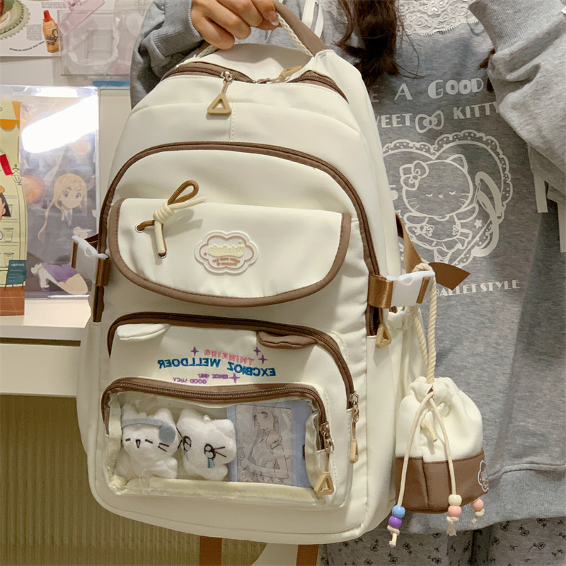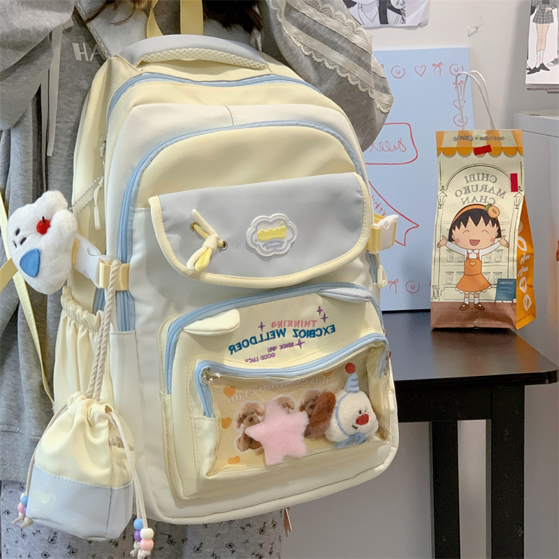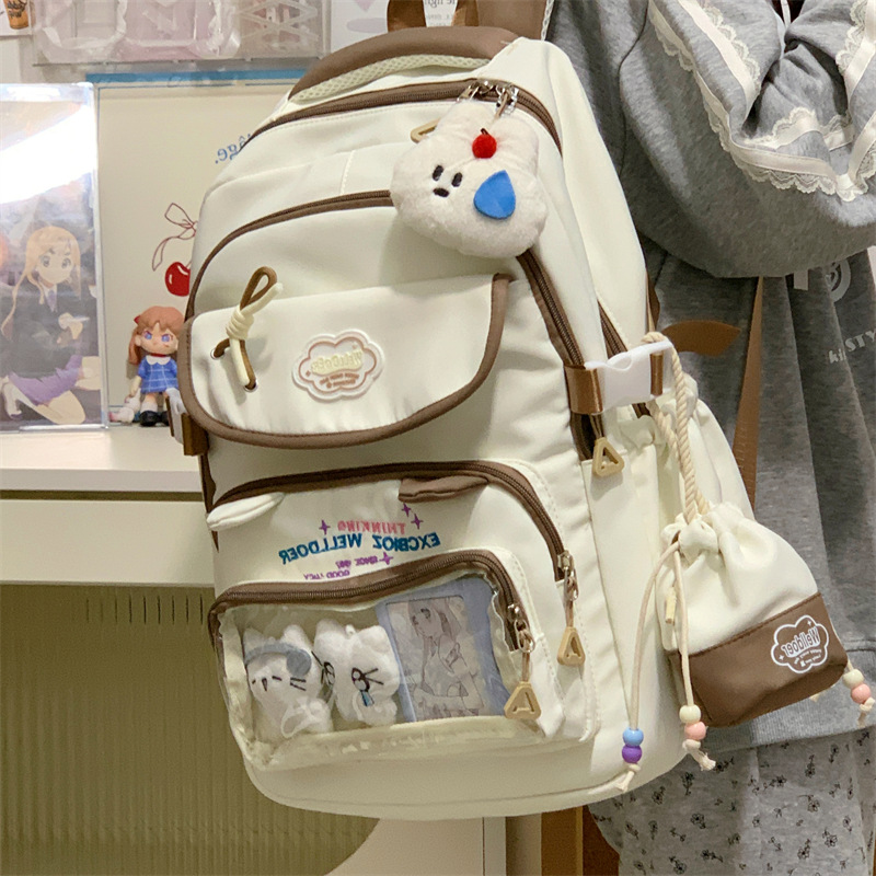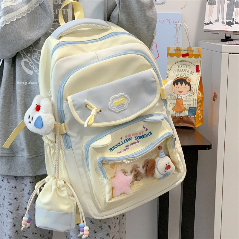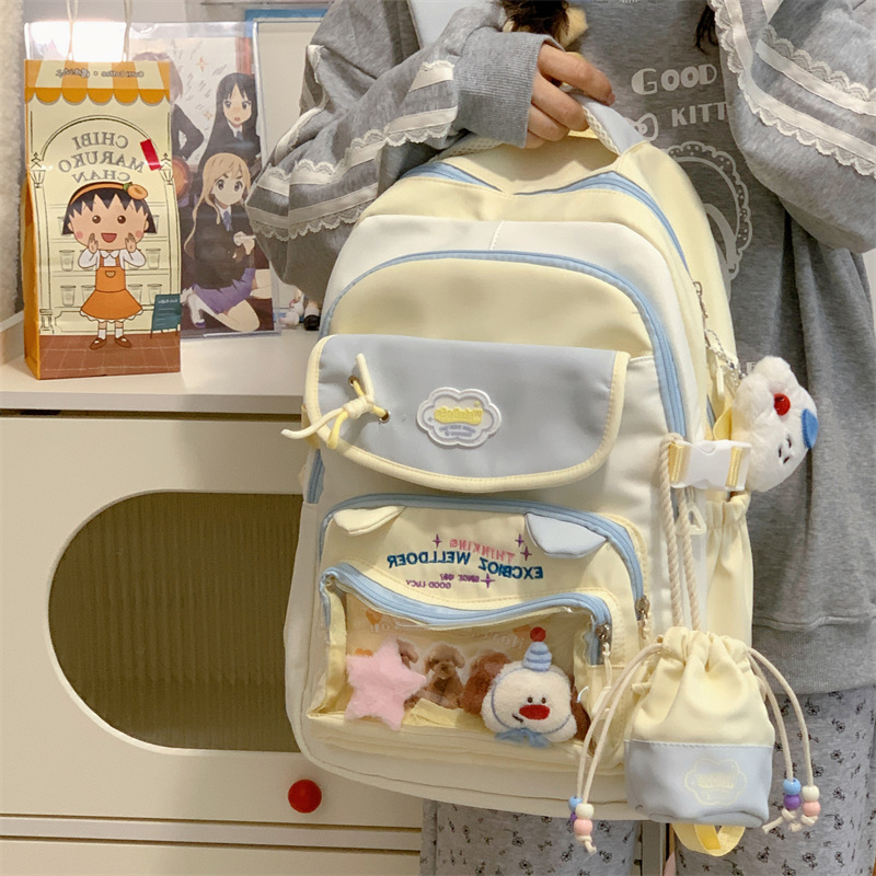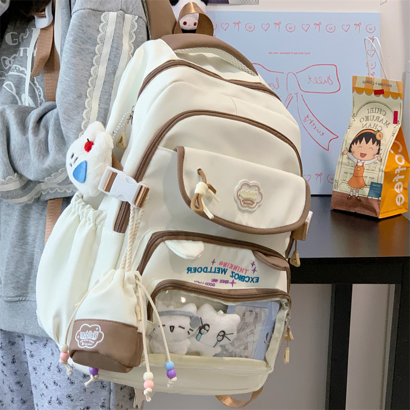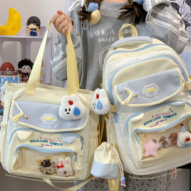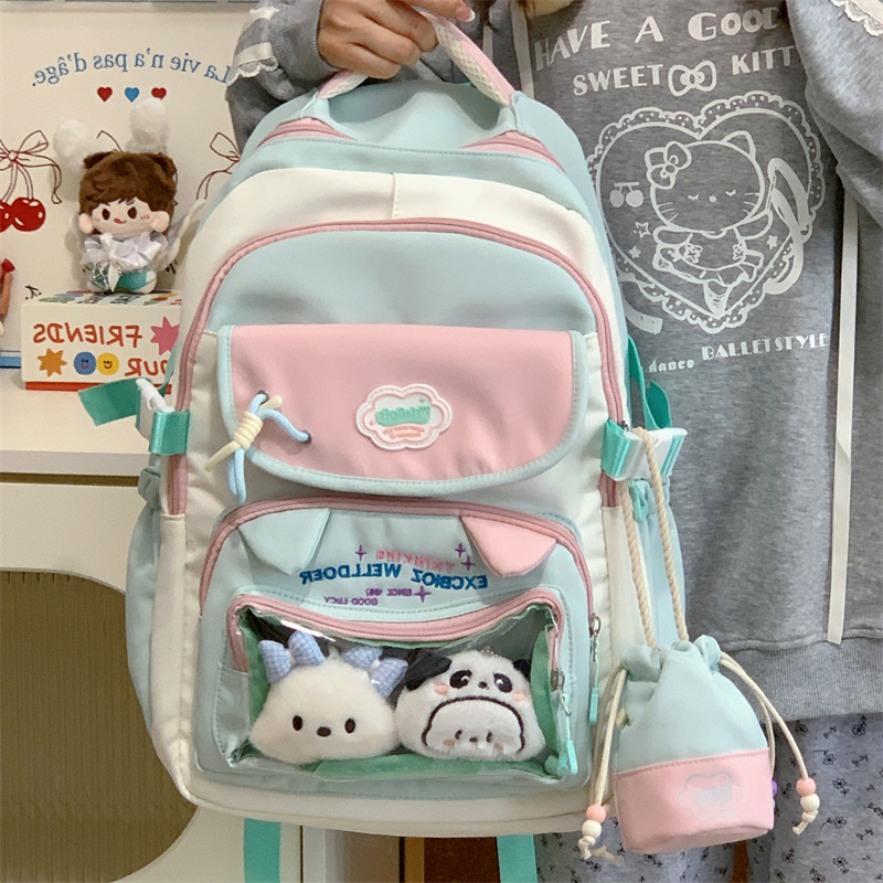 여성용 새로운 대비색 책가방, 고급스러운 대학 스타일, 달콤한 소녀의 통증 가방, 초중등 학생을 위한 투피스 백팩스토어 가기