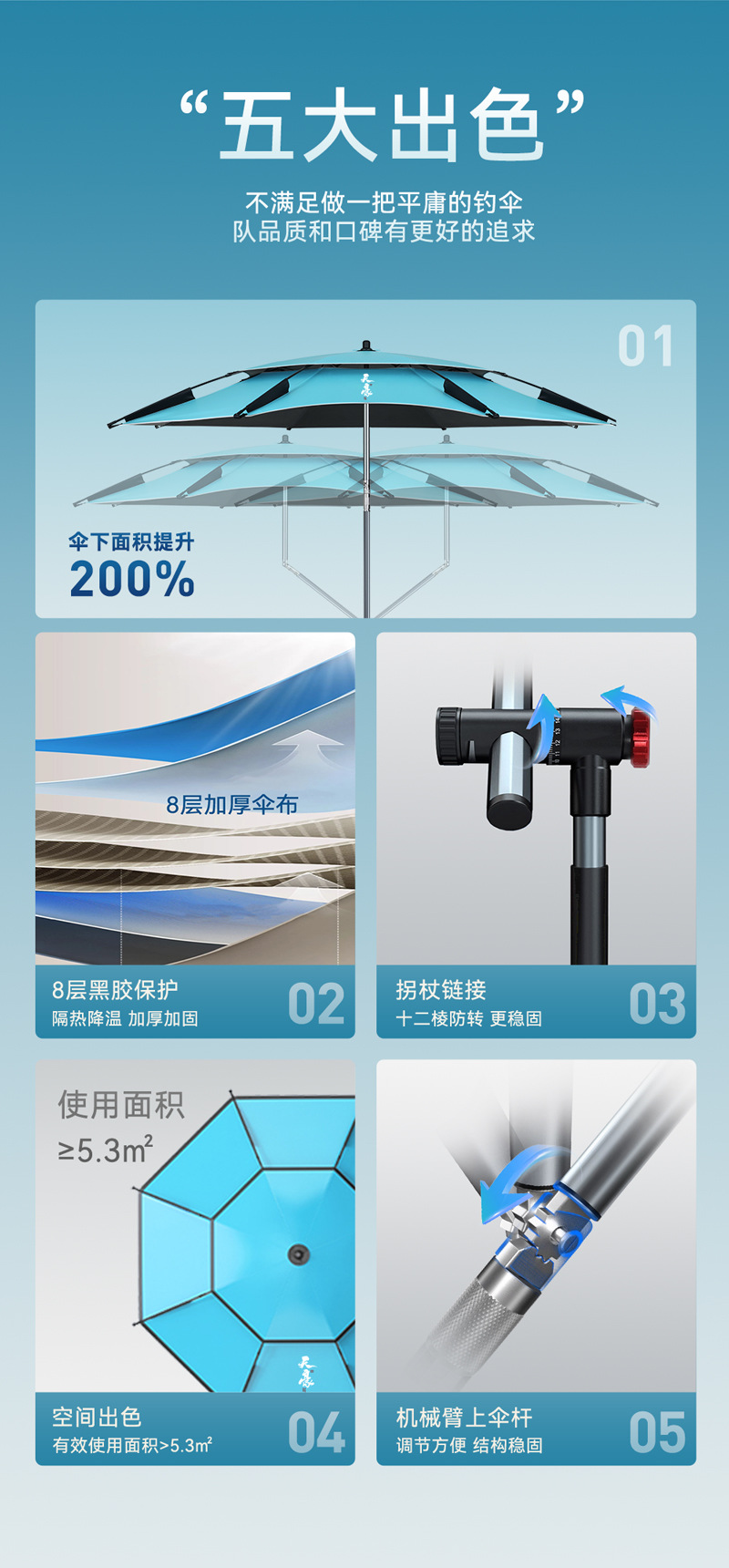 Tianhao 낚시 우산, 방풍 및 두꺼운 다기능 접이식 특수 차양 대형 낚시 우산, 범용 방수 및 비오는 낚시 야외