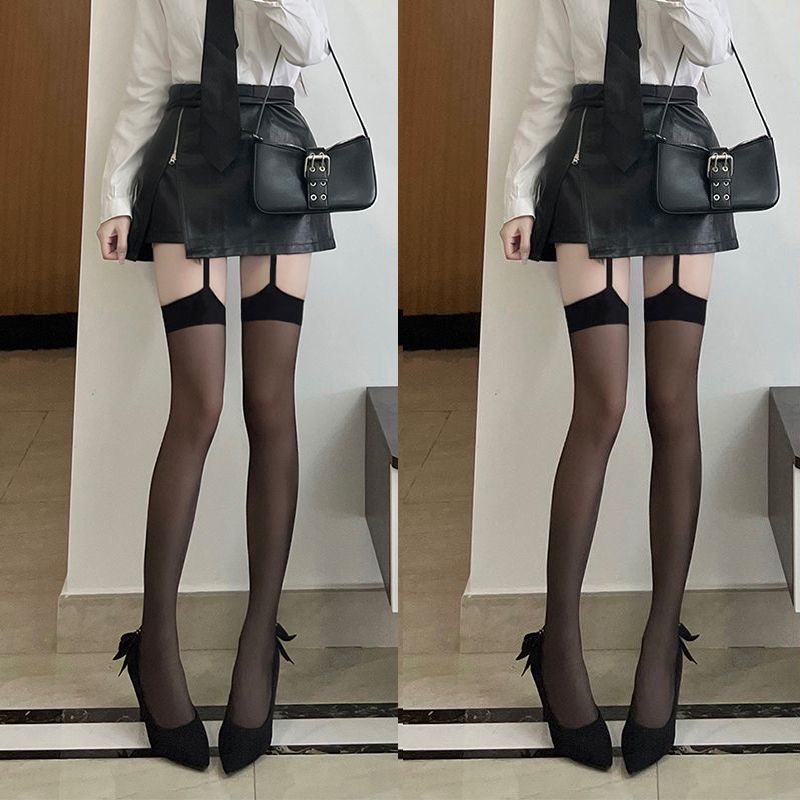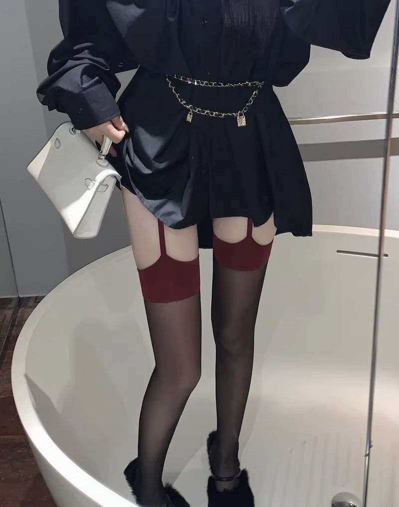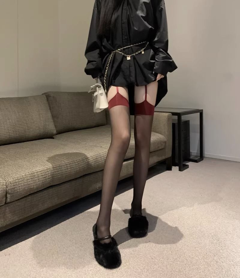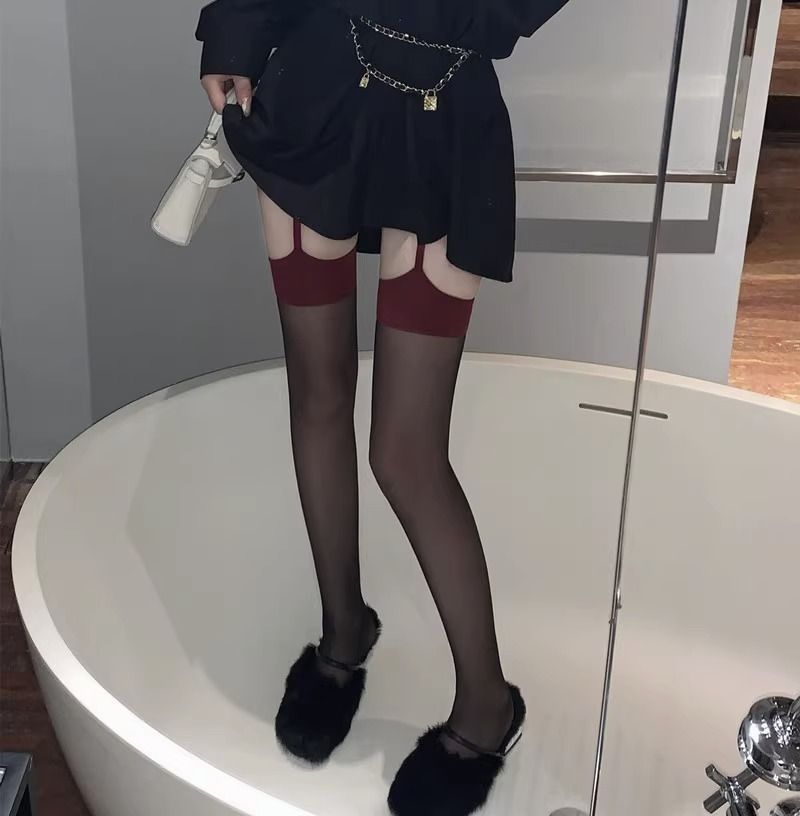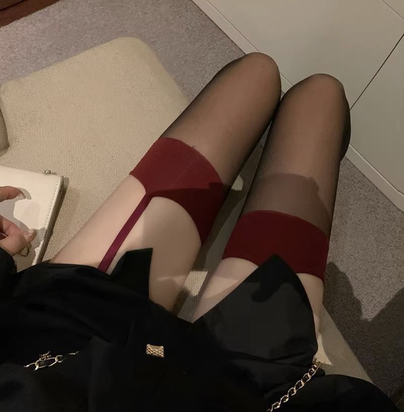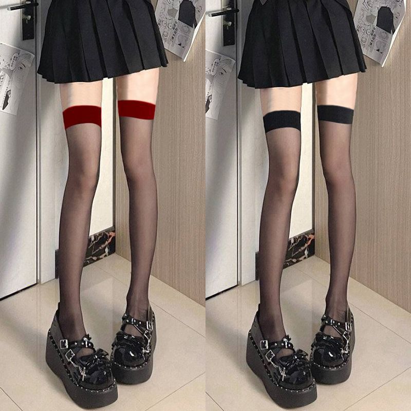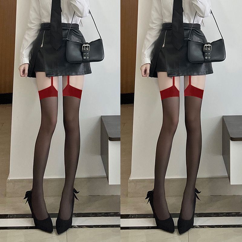 코만캉 레드 엣지 블랙 실크 일체형 스타킹 섹시한 하프 스타킹 여성용 롱 스타킹 무릎 위까지 오는 양말