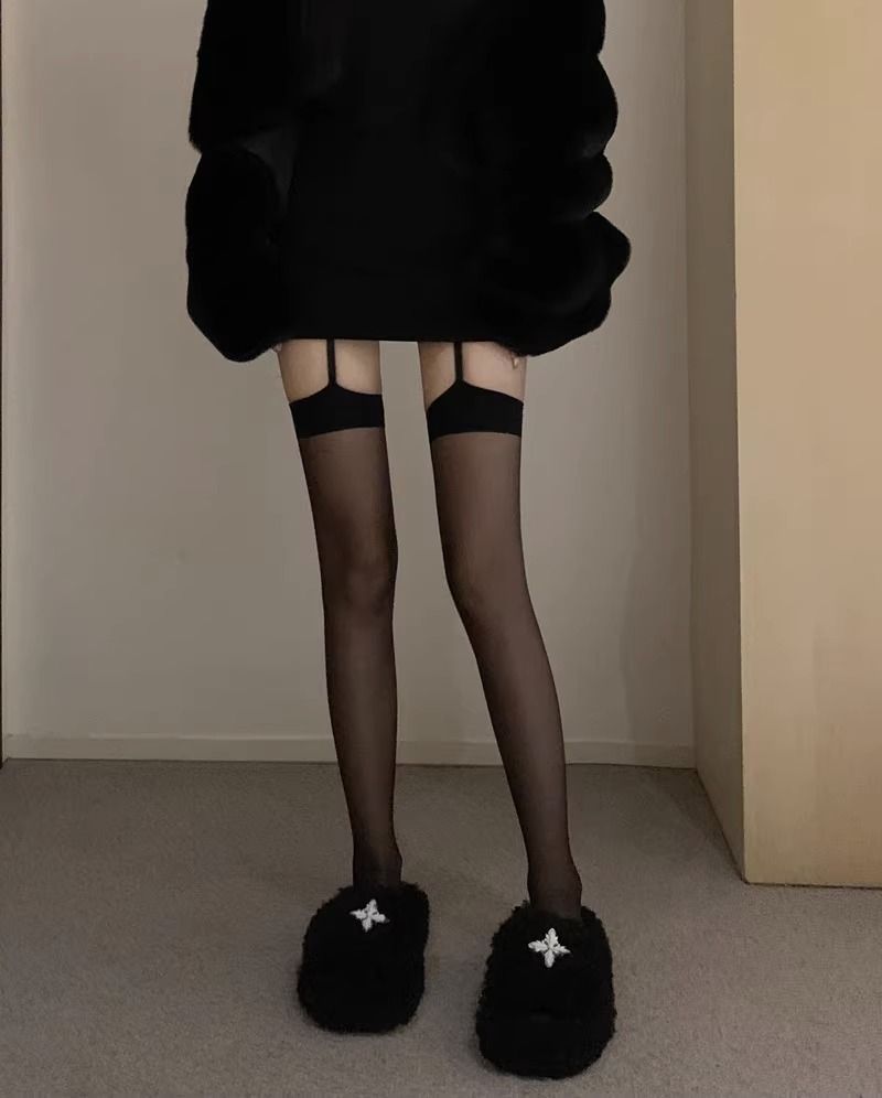 코만캉 레드 엣지 블랙 실크 일체형 스타킹 섹시한 하프 스타킹 여성용 롱 스타킹 무릎 위까지 오는 양말스토어 가기