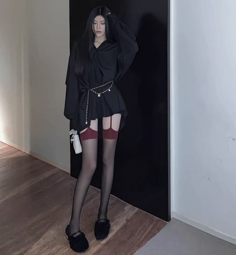 • 핫한 소녀 레드 엣지 블랙 실크 서스펜더 벨트 1개