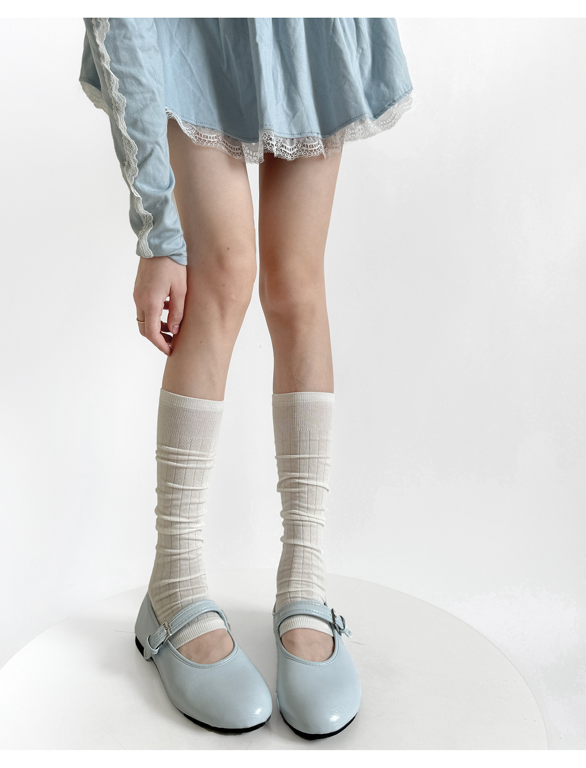 여름 얇은 마이크로 투명 화이트 다리 양말 여성 와이드 미우 스타일 올 매치 수직 스트라이프 발레 스타일 힙 다리 커버