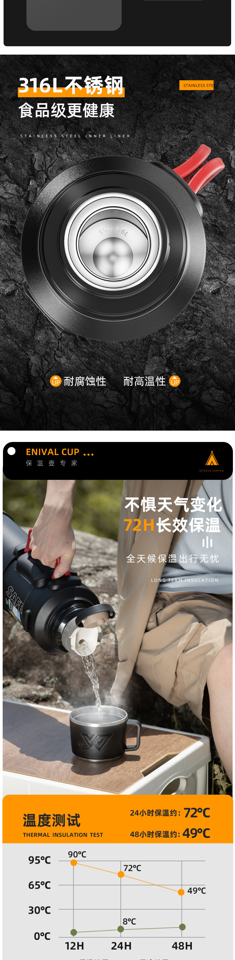 ENIVAL 단열 주전자 스테인레스 스틸 대용량 기숙사 대형 온수 병 가정용 휴대용 자동차 주전자 건설 현장스토어 가기