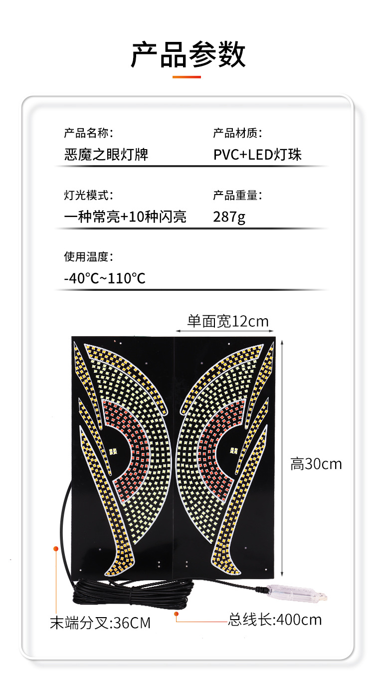 국경 간 동적 악마의 눈 램프 개조 대형 트럭 자동차 스티커 LED 디스플레이 자동차 후면 유리 장식 램프스토어 가기